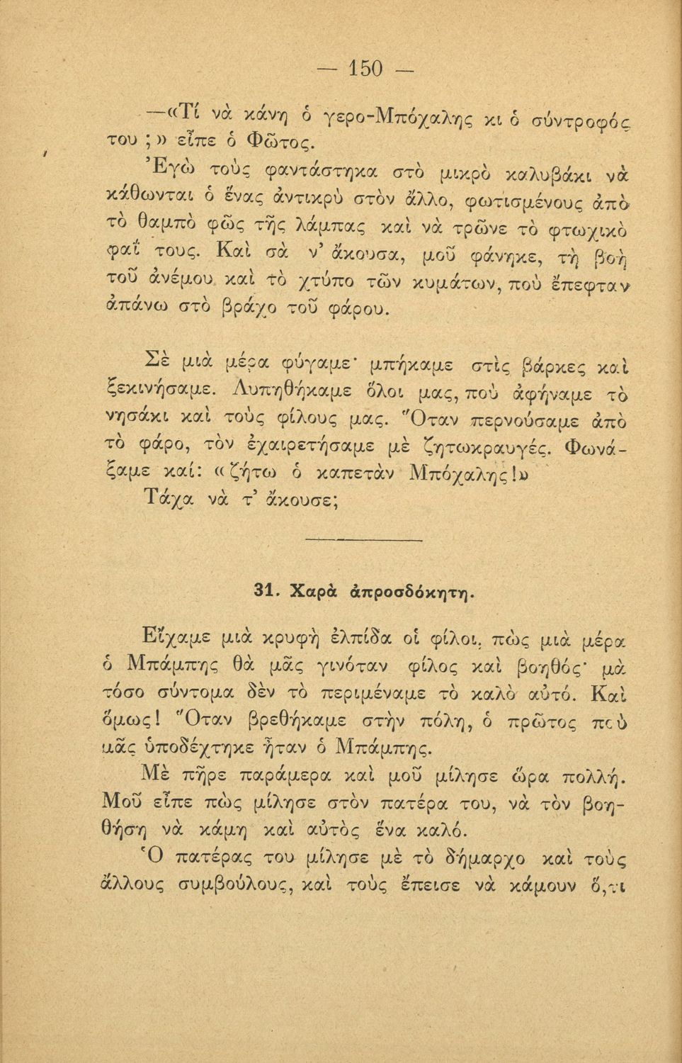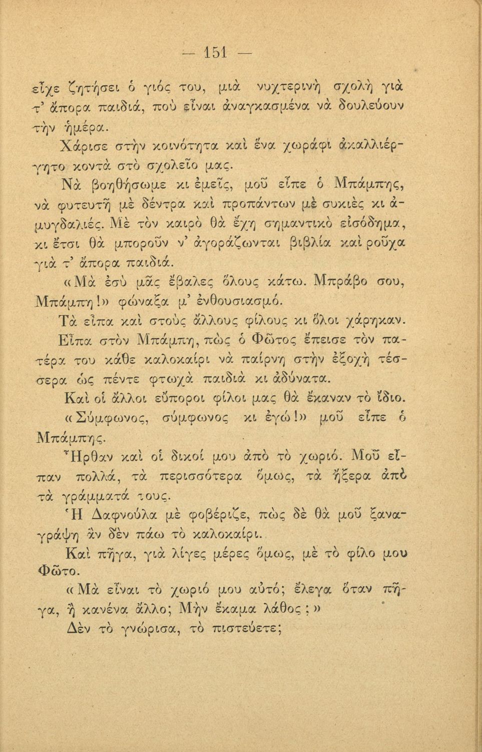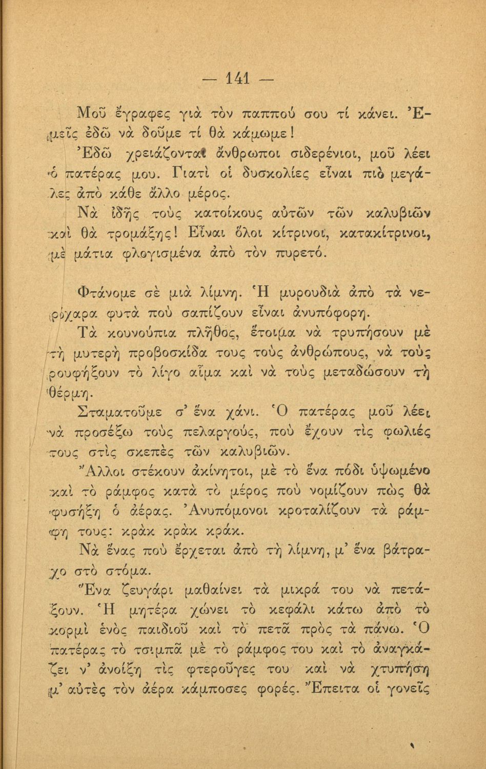 Αναγνωστικό Γ΄ Δημοτικού που περιλαμβάνει διηγήματα εμπνευσμένα από την οικογενειακή ζωή, την ελληνική ύπαιθρο, τις διαπροσωπικές σχέσεις και τα επαγγέλματα και τις ασχολίες των ανθρώπων. Περιέχει και 6 τραγούδια με τις παρτιτούρες τους.