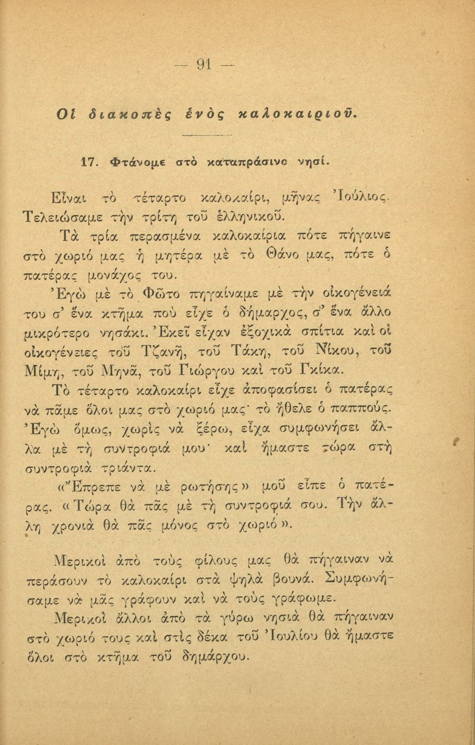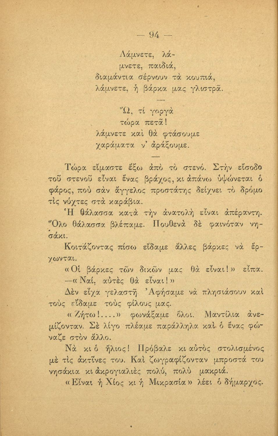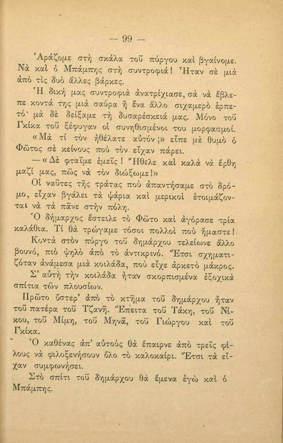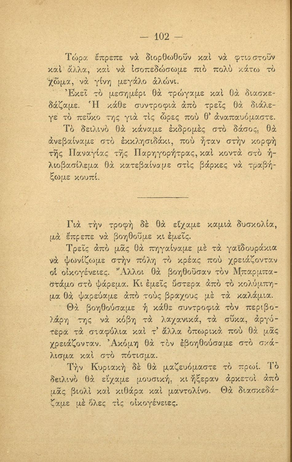 Αναγνωστικό Γ΄ Δημοτικού που περιλαμβάνει διηγήματα εμπνευσμένα από την οικογενειακή ζωή, την ελληνική ύπαιθρο, τις διαπροσωπικές σχέσεις και τα επαγγέλματα και τις ασχολίες των ανθρώπων. Περιέχει και 6 τραγούδια με τις παρτιτούρες τους.