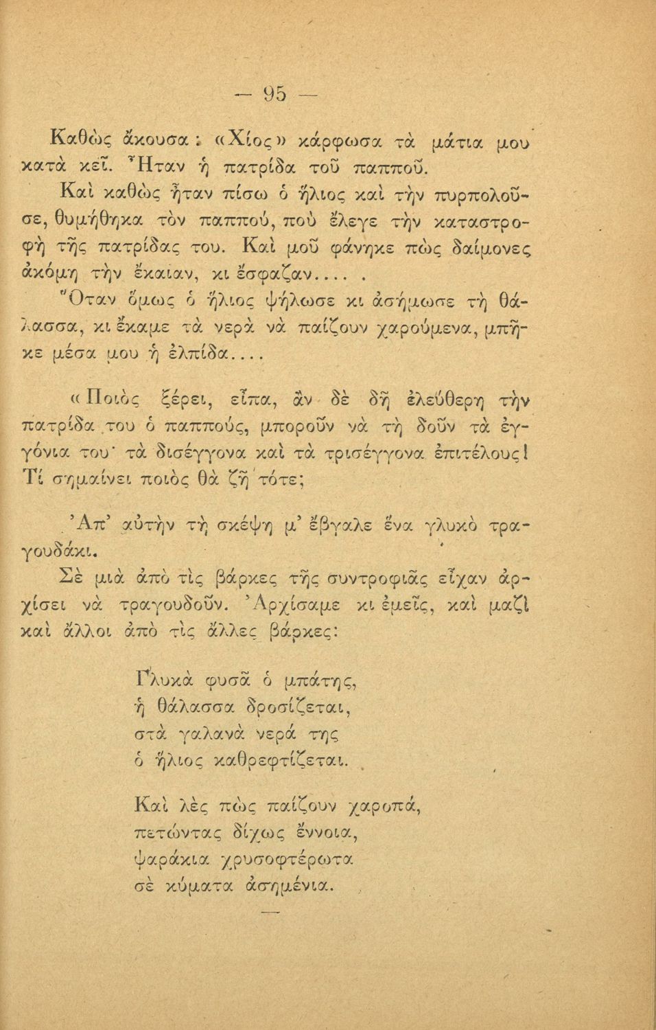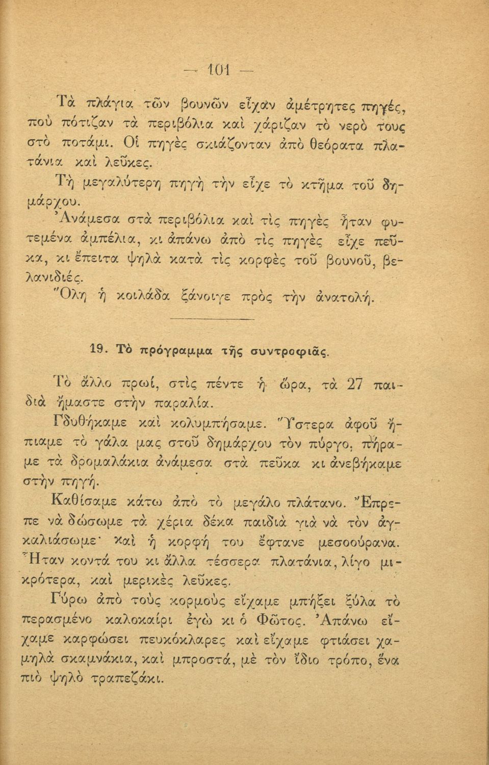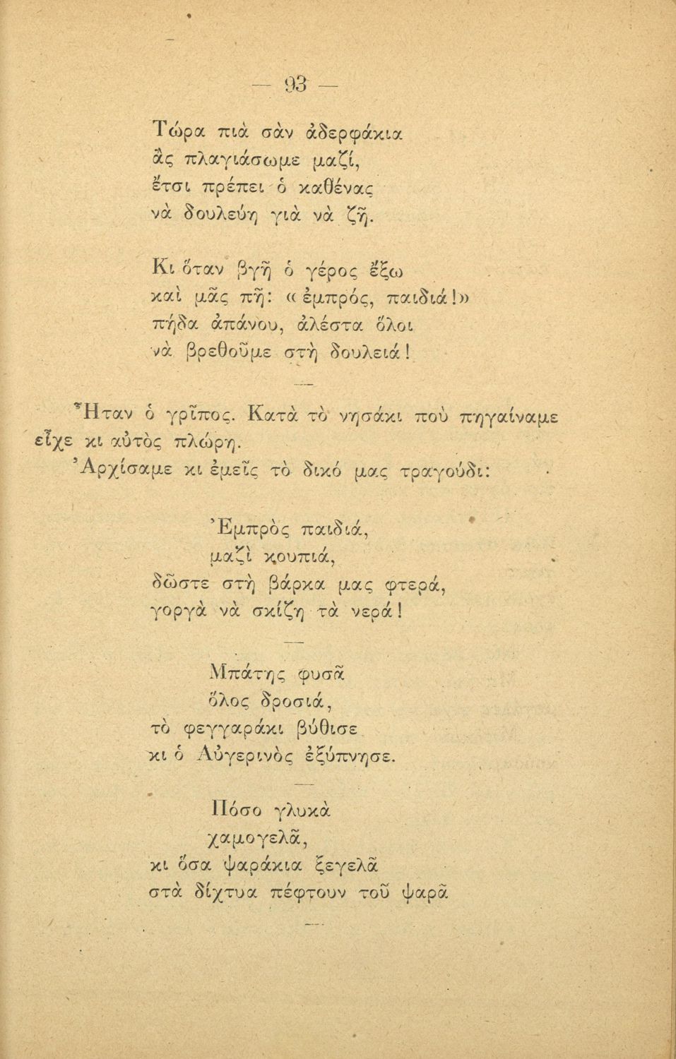 Αναγνωστικό Γ΄ Δημοτικού που περιλαμβάνει διηγήματα εμπνευσμένα από την οικογενειακή ζωή, την ελληνική ύπαιθρο, τις διαπροσωπικές σχέσεις και τα επαγγέλματα και τις ασχολίες των ανθρώπων. Περιέχει και 6 τραγούδια με τις παρτιτούρες τους.