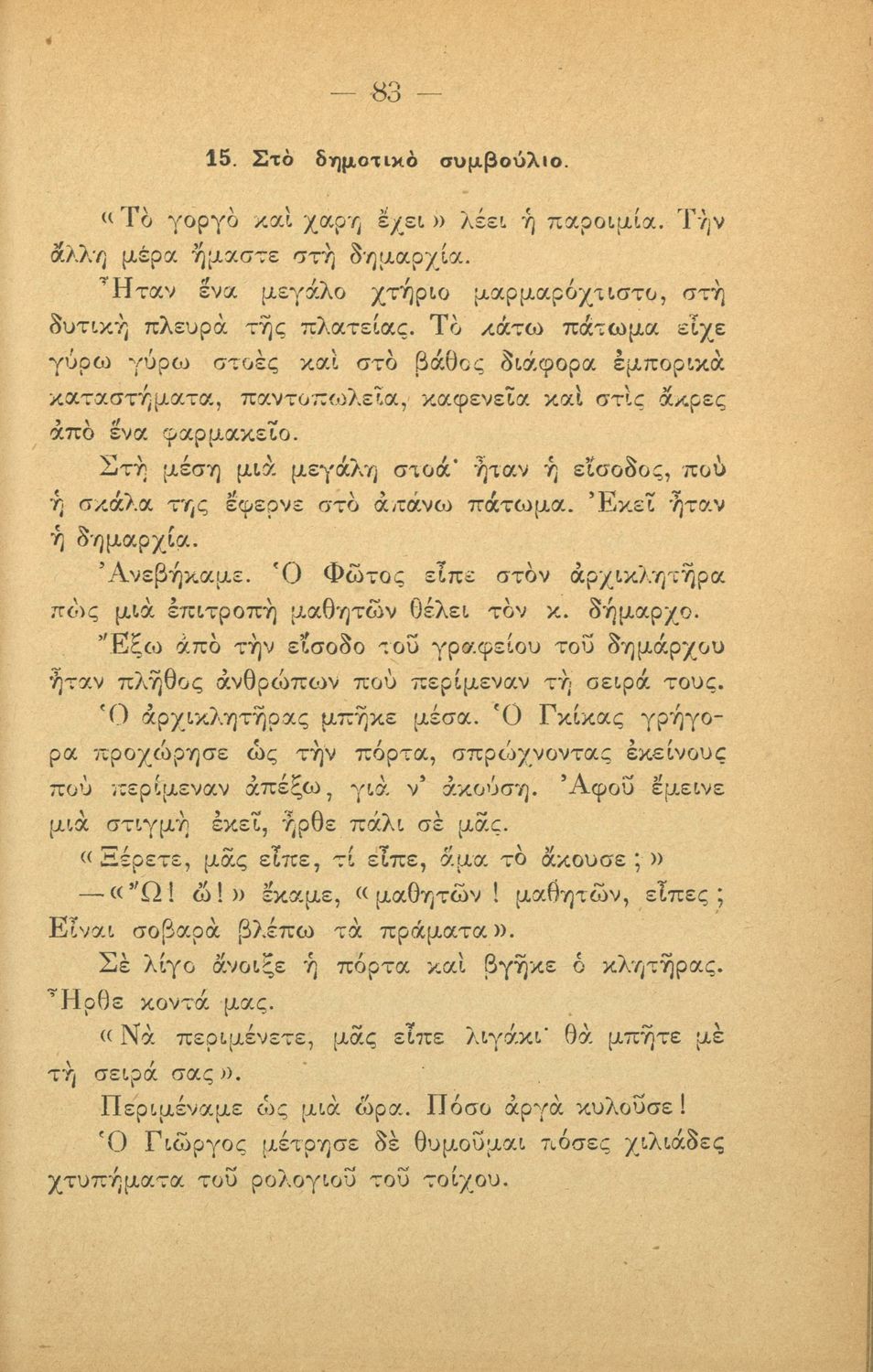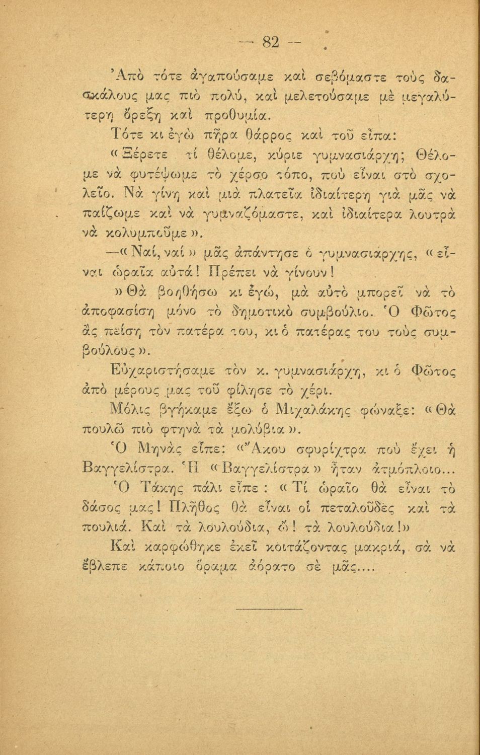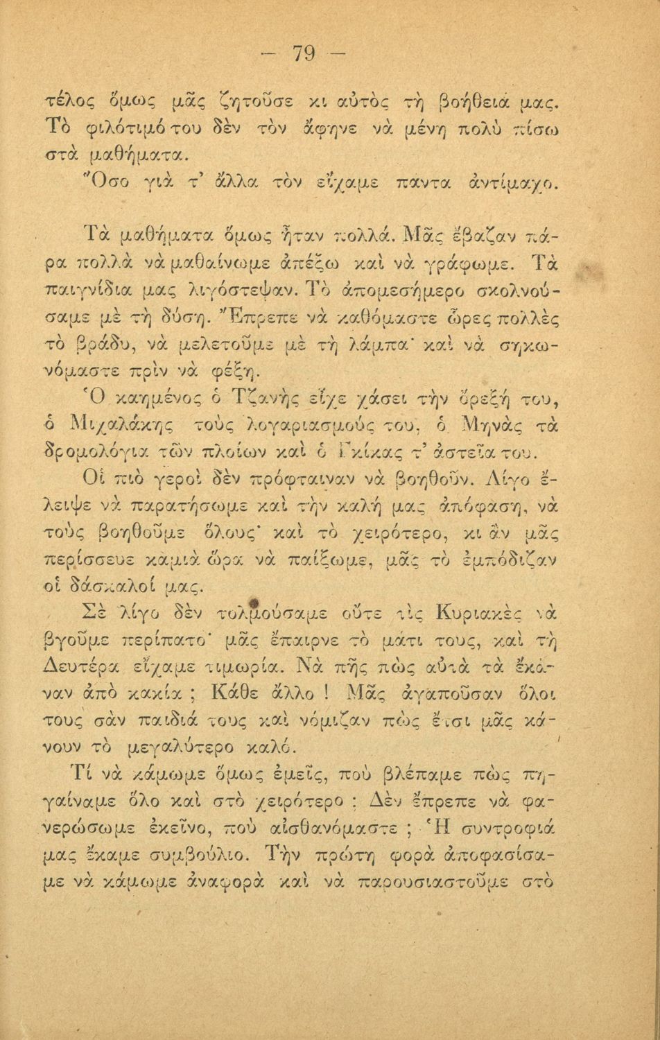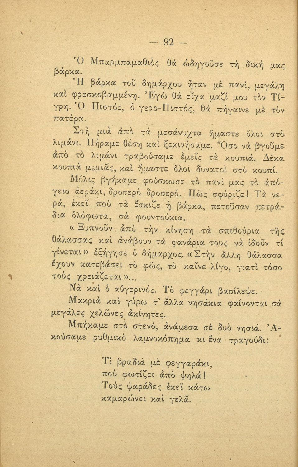 Αναγνωστικό Γ΄ Δημοτικού που περιλαμβάνει διηγήματα εμπνευσμένα από την οικογενειακή ζωή, την ελληνική ύπαιθρο, τις διαπροσωπικές σχέσεις και τα επαγγέλματα και τις ασχολίες των ανθρώπων. Περιέχει και 6 τραγούδια με τις παρτιτούρες τους.