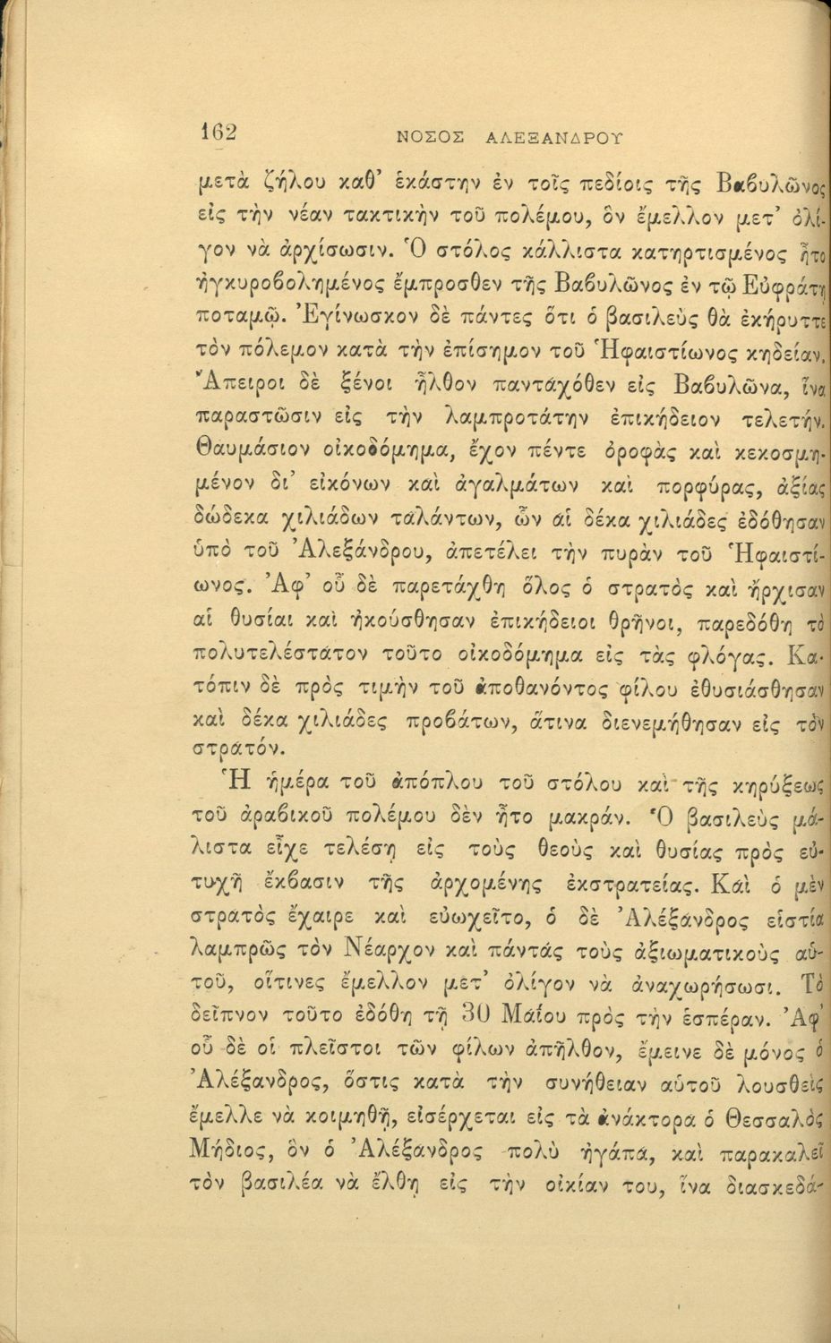 Αναγνωστικό Ε' Δημοτικού που εξιστορεί τη ζωή και το έργο του Μ. Αλεξάνδρου. Προοριζόταν, όπως αναφέρει η έκθεση των κριτών, να εμπνεύσει "φρονήματα υψηλά και γενναία και να υποθάλψη το συναίσθημα της φιλοπατρίας" στους μαθητές. Περιέχει και ποιήματα πατριωτικού και θρησκευτικού περιεχομένου.