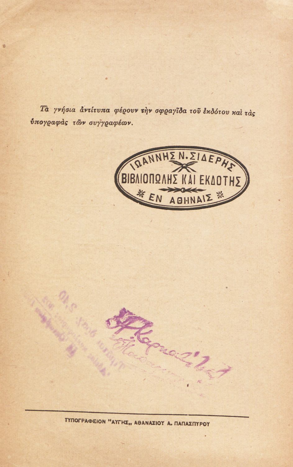 Εκδότης: Ιωάννης Ν. Σιδέρης