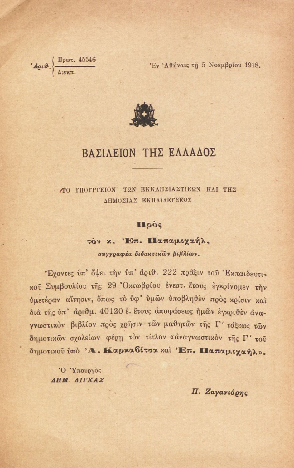 Συγγραφέας: Α. Καρκαβίτσας, Επ. Γ. Παπαμιχαήλ