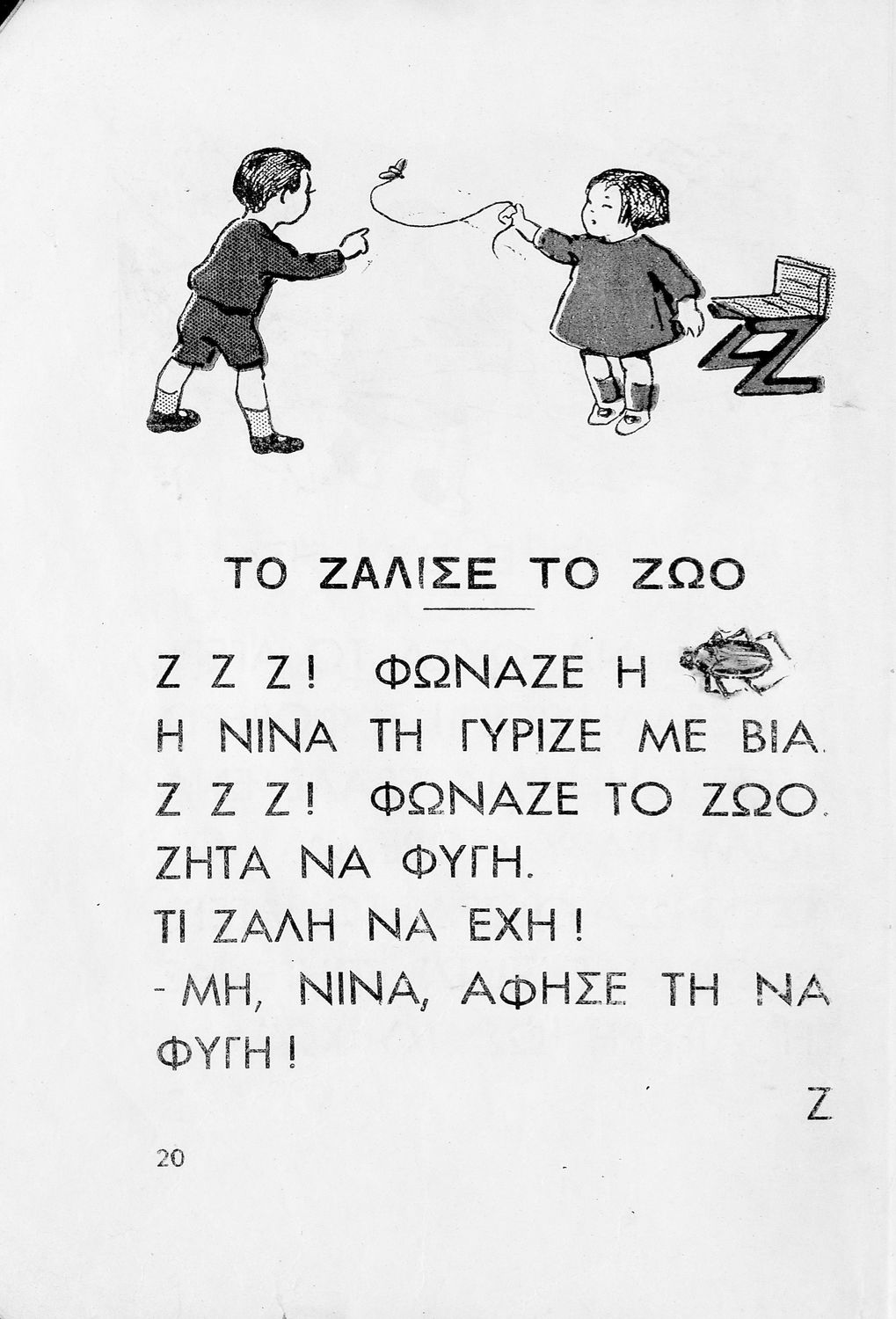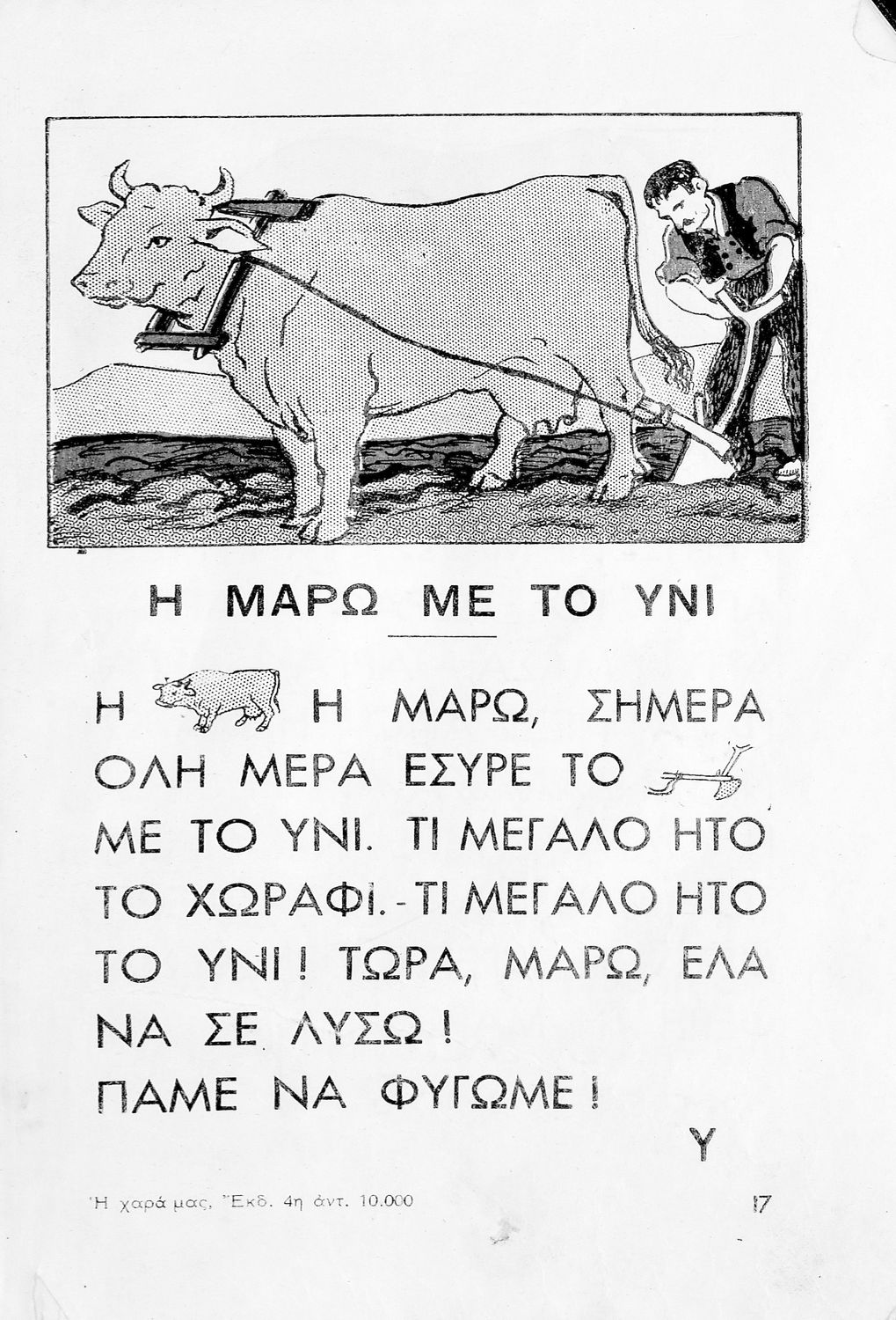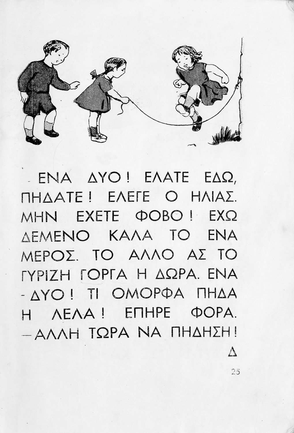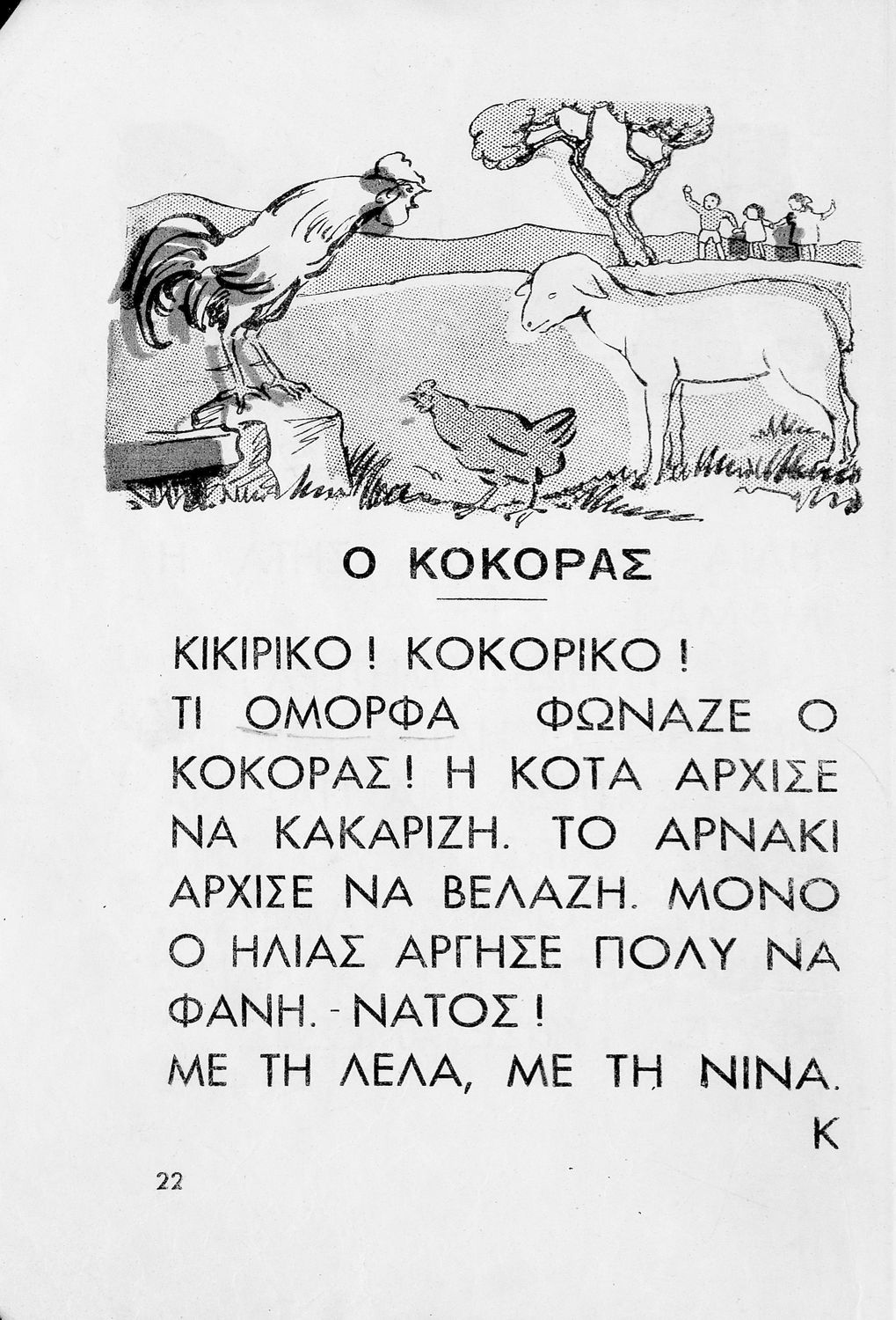 Αναγνωστικό [Α΄ Δημοτικού] που περιλαμβάνει ποιηματάκια και ιστοριούλες και αντλεί τη θεματολογία του από καθημερινά περιστατικά, την ελληνική ύπαιθρο και την ελληνική οικογένεια.