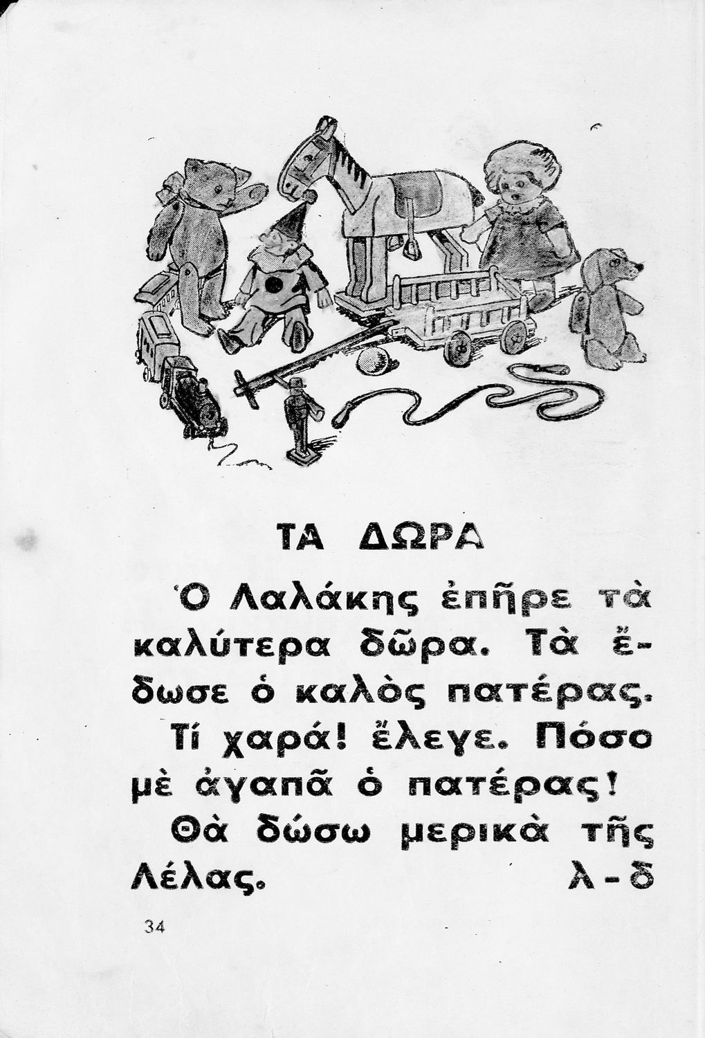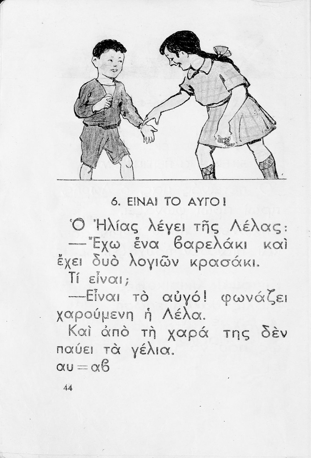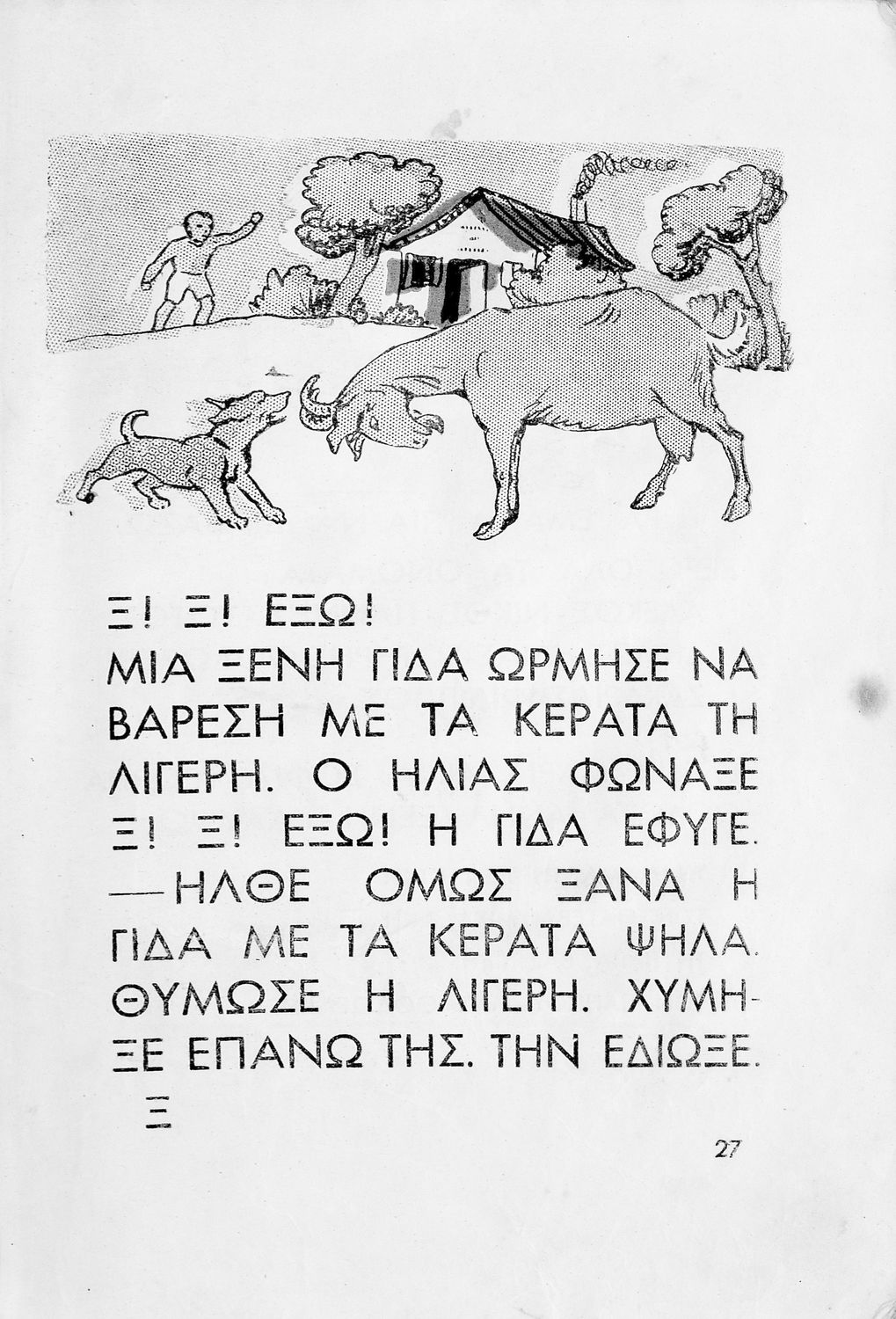 Αναγνωστικό [Α΄ Δημοτικού] που περιλαμβάνει ποιηματάκια και ιστοριούλες και αντλεί τη θεματολογία του από καθημερινά περιστατικά, την ελληνική ύπαιθρο και την ελληνική οικογένεια.