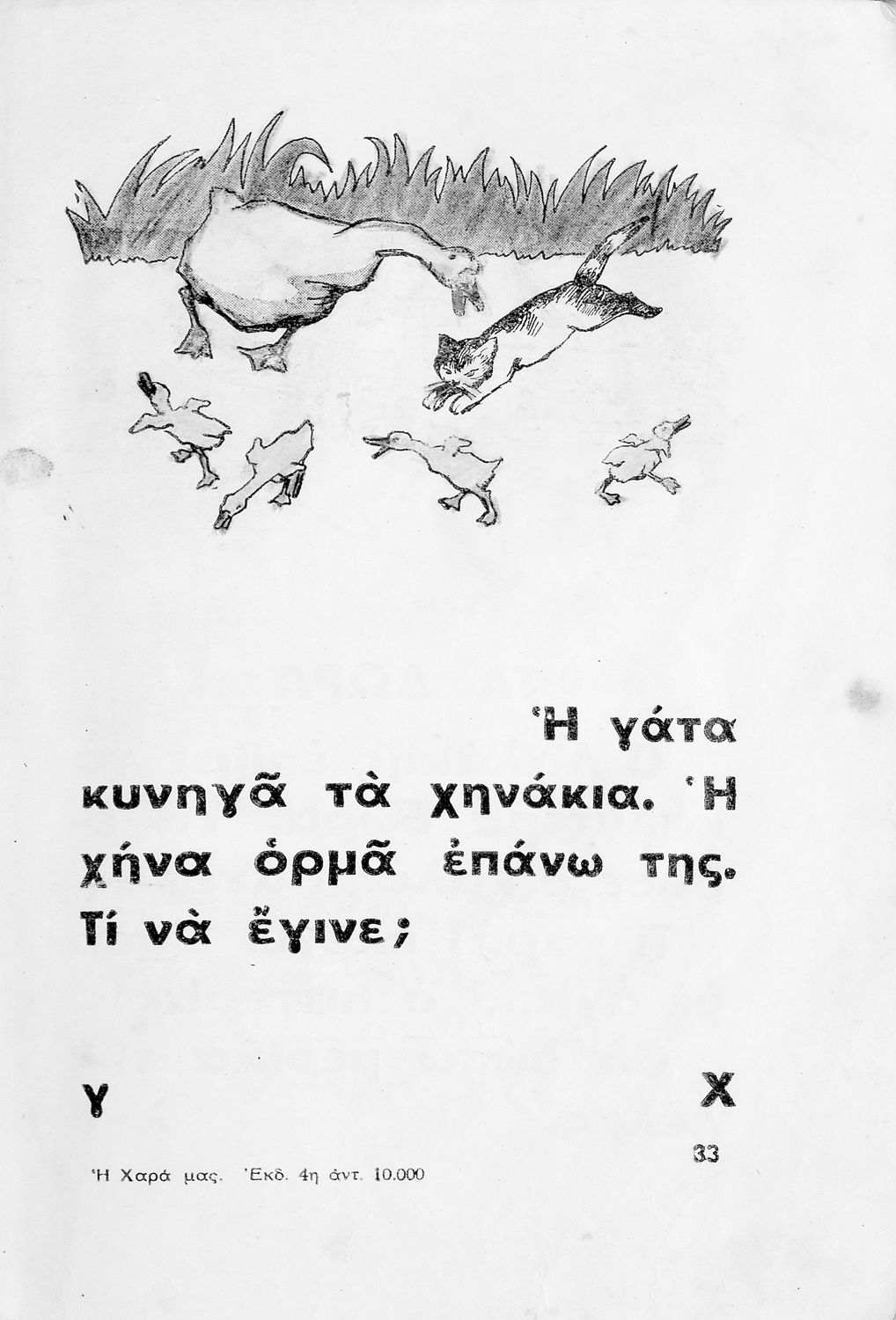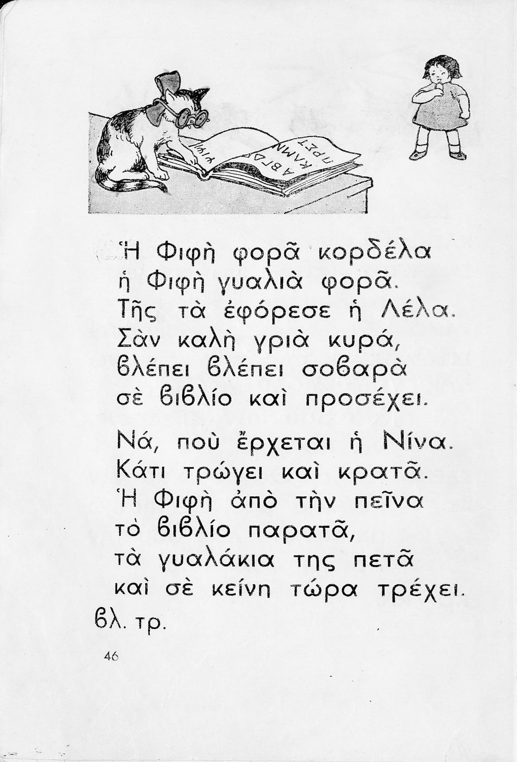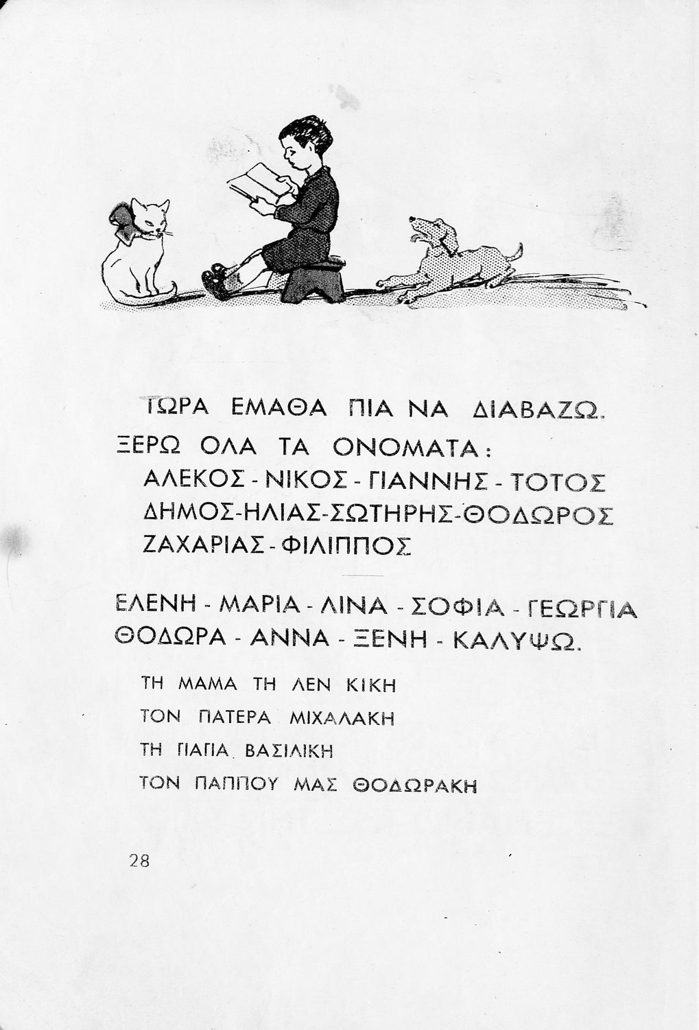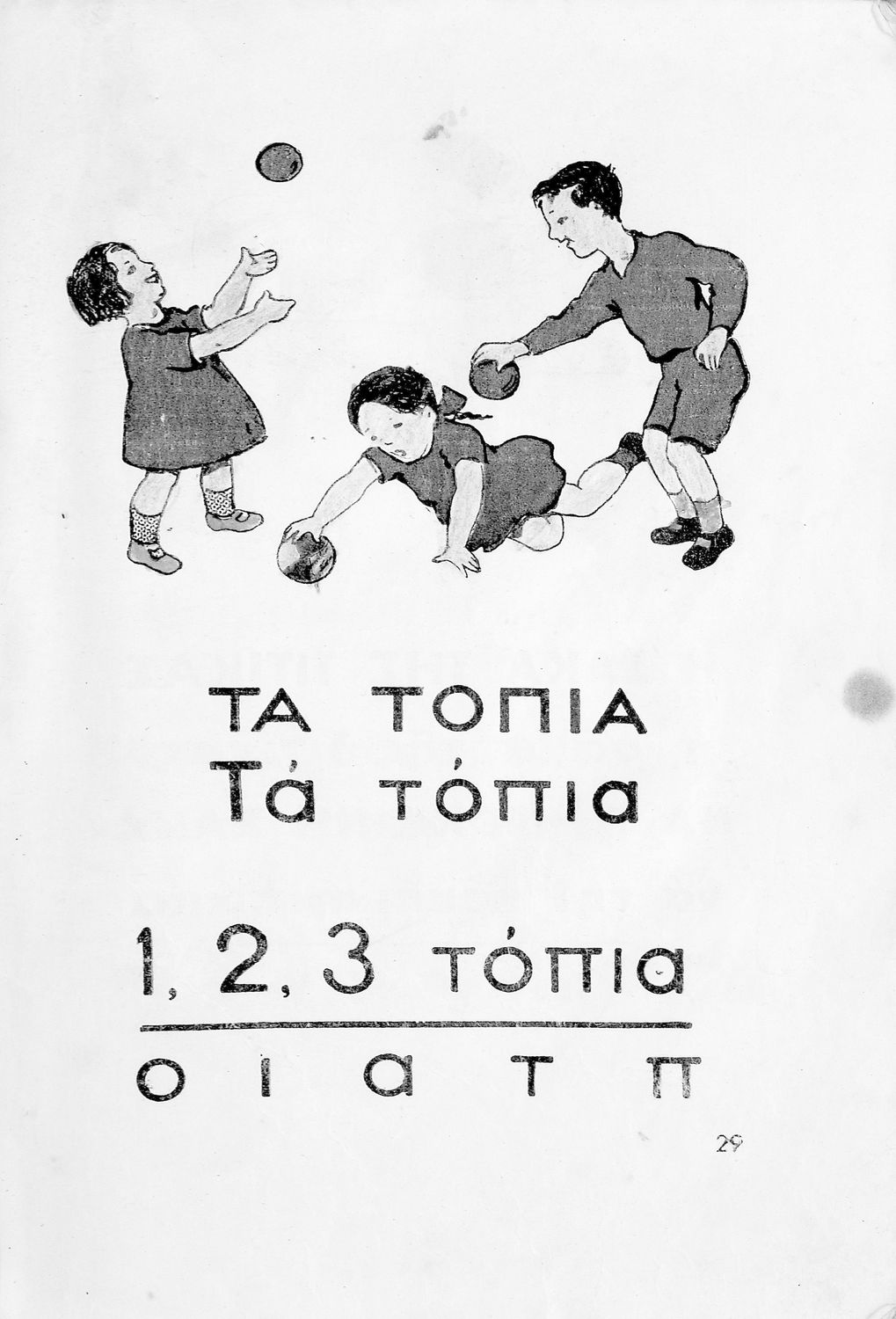 Αναγνωστικό [Α΄ Δημοτικού] που περιλαμβάνει ποιηματάκια και ιστοριούλες και αντλεί τη θεματολογία του από καθημερινά περιστατικά, την ελληνική ύπαιθρο και την ελληνική οικογένεια.