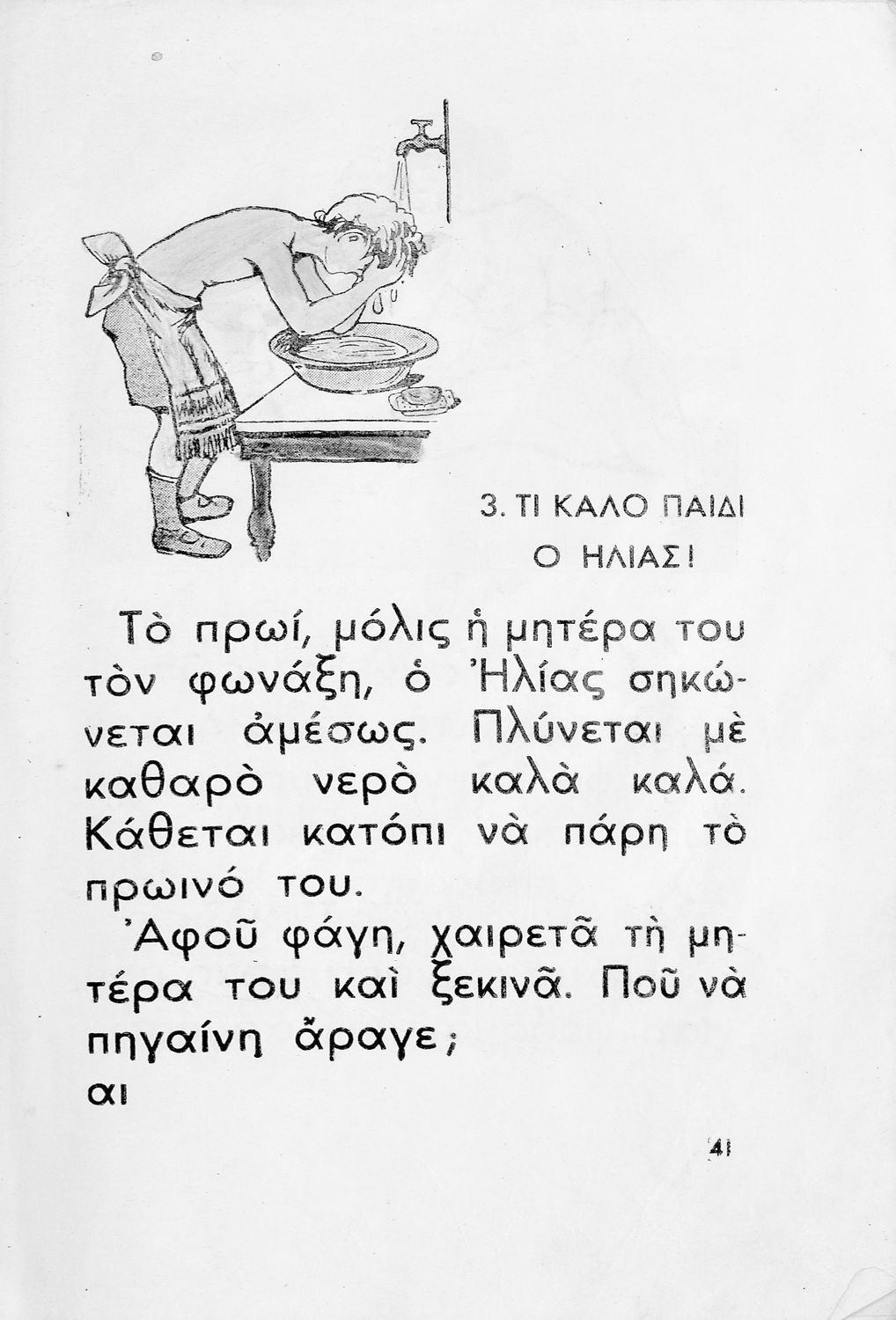 Αναγνωστικό Α΄ Δημοτικού που περιέχει μικρές αφηγηματικές ιστορίες και ποιήματα του Πάλλη και του Πολέμη με ηθικοπλαστικό περιεχόμενο.
