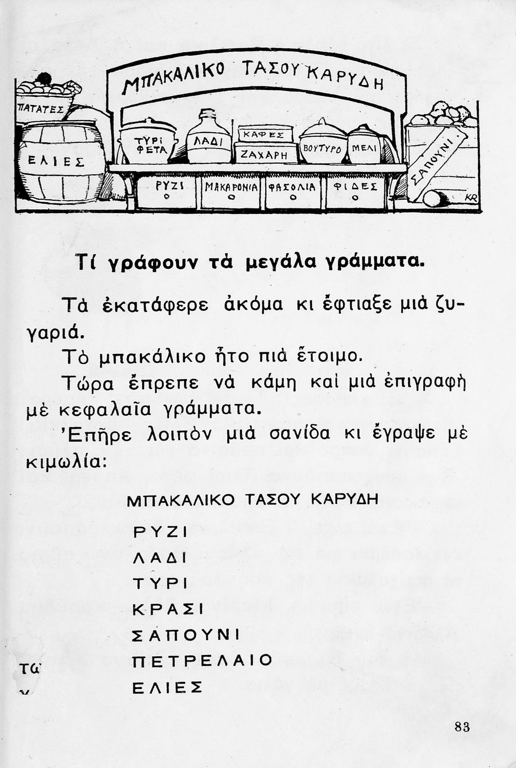 Βαθμίδα εκπαίδευσης: Πρωτοβάθμια Τάξη: Α' Δημοτικού Μάθημα: Νέα Ελληνικά Γλώσσα: Δημοτική Παρουσίαση περιεχομένου: Αναγνωστικό Α΄ Δημοτικού που περιλαμβάνει τα γράμματα του ελληνικού αλφαβήτου, εικόνες, τις πρώτες συλλαβές και λέξεις και μικρά ποιήματα και διηγήματα με ιστορίες από την φύση, την οικογένεια και την ελληνική ύπαιθρο. |