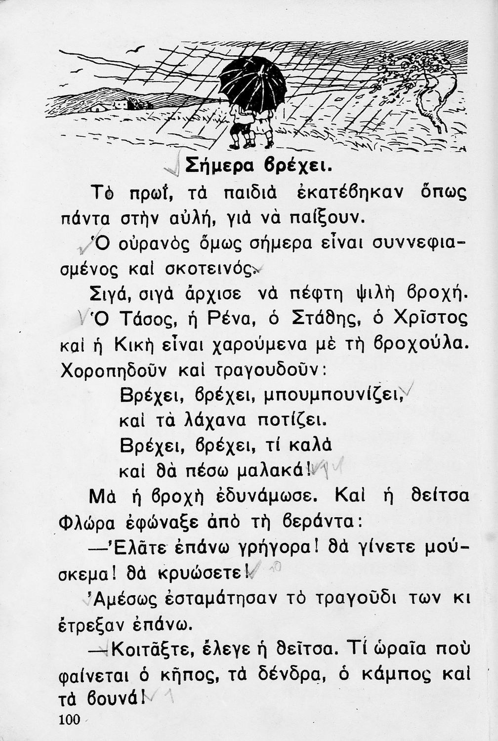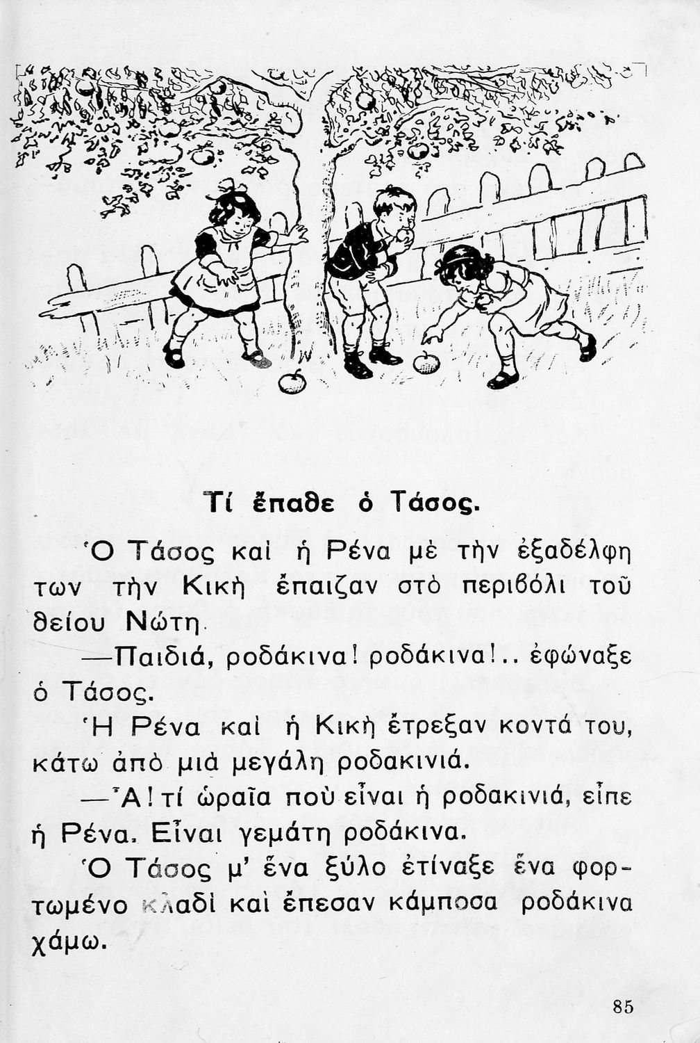 Αναγνωστικό Α΄ Δημοτικού που περιλαμβάνει τα γράμματα του ελληνικού αλφαβήτου, εικόνες, τις πρώτες συλλαβές και λέξεις και μικρά ποιήματα και διηγήματα με ιστορίες από την φύση, την οικογένεια και την ελληνική ύπαιθρο.