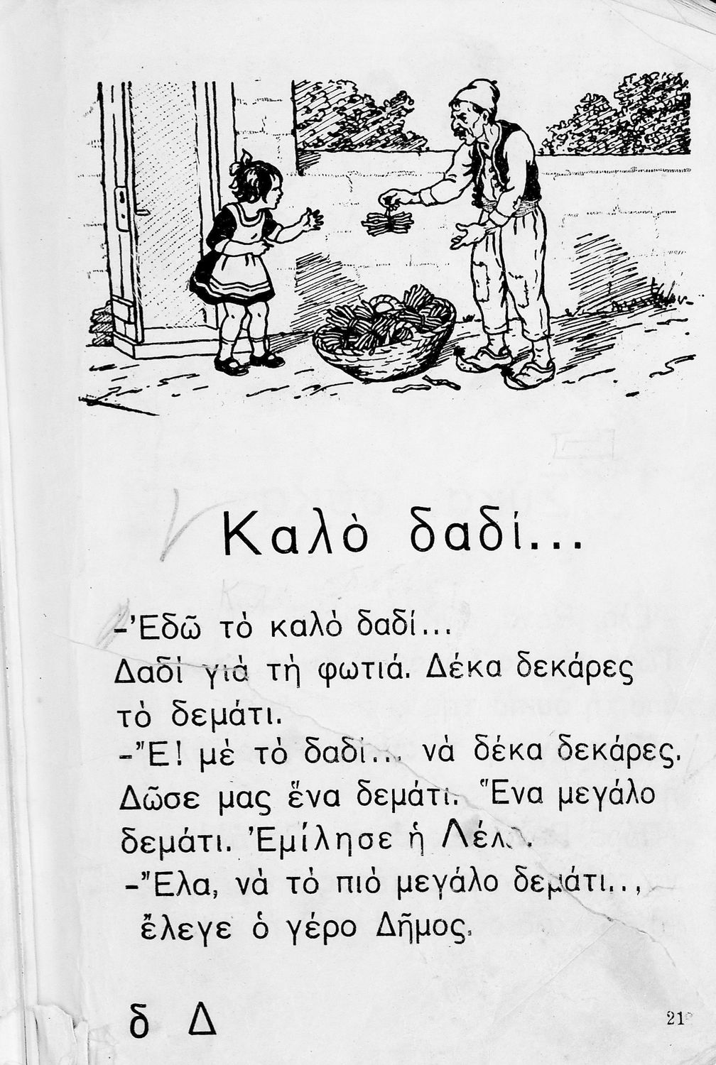 Βαθμίδα εκπαίδευσης: Πρωτοβάθμια Τάξη: Α' Δημοτικού Μάθημα: Νέα Ελληνικά Γλώσσα: Δημοτική Παρουσίαση περιεχομένου: Αναγνωστικό Α΄ Δημοτικού που περιλαμβάνει τα γράμματα του ελληνικού αλφαβήτου, εικόνες, τις πρώτες συλλαβές και λέξεις και μικρά ποιήματα και διηγήματα με ιστορίες από την φύση, την οικογένεια και την ελληνική ύπαιθρο. |