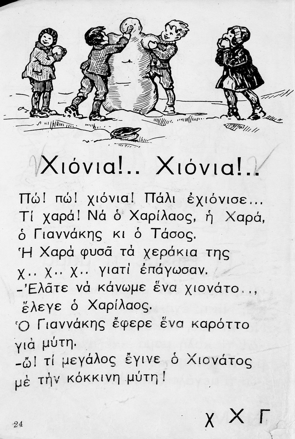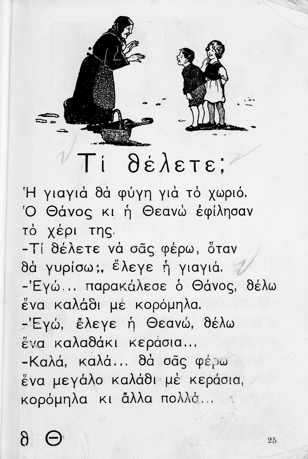 Αναγνωστικό Α΄ Δημοτικού που περιλαμβάνει τα γράμματα του ελληνικού αλφαβήτου, εικόνες, τις πρώτες συλλαβές και λέξεις και μικρά ποιήματα και διηγήματα με ιστορίες από την φύση, την οικογένεια και την ελληνική ύπαιθρο.