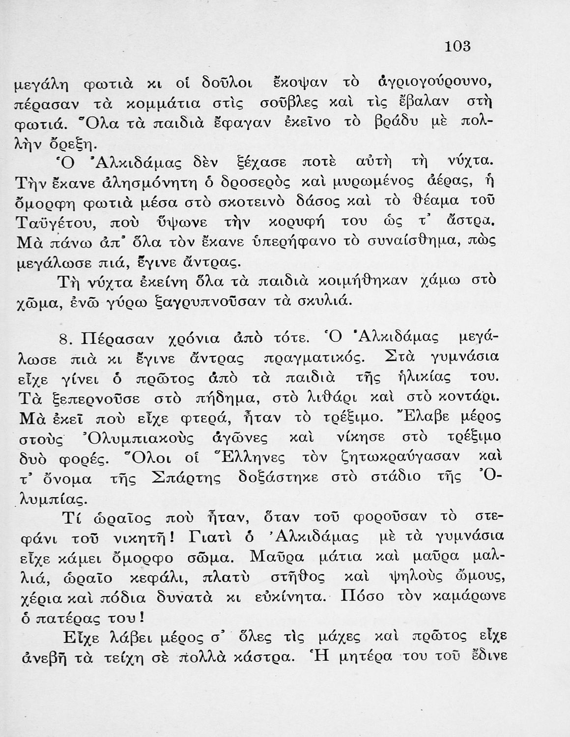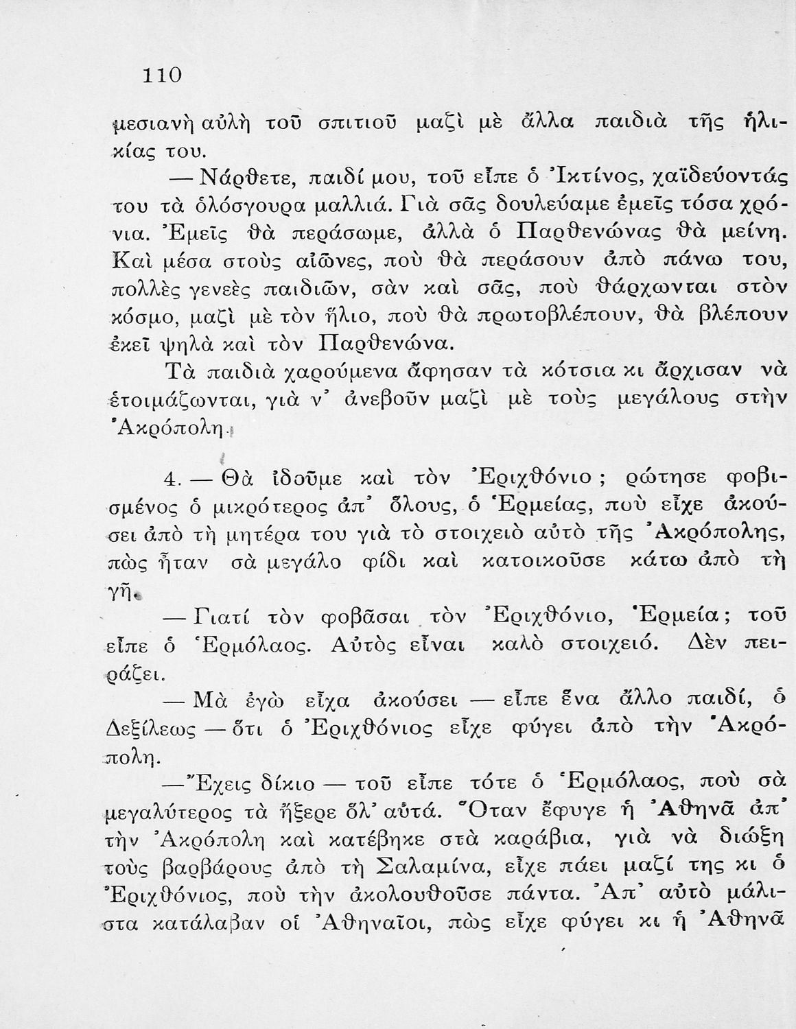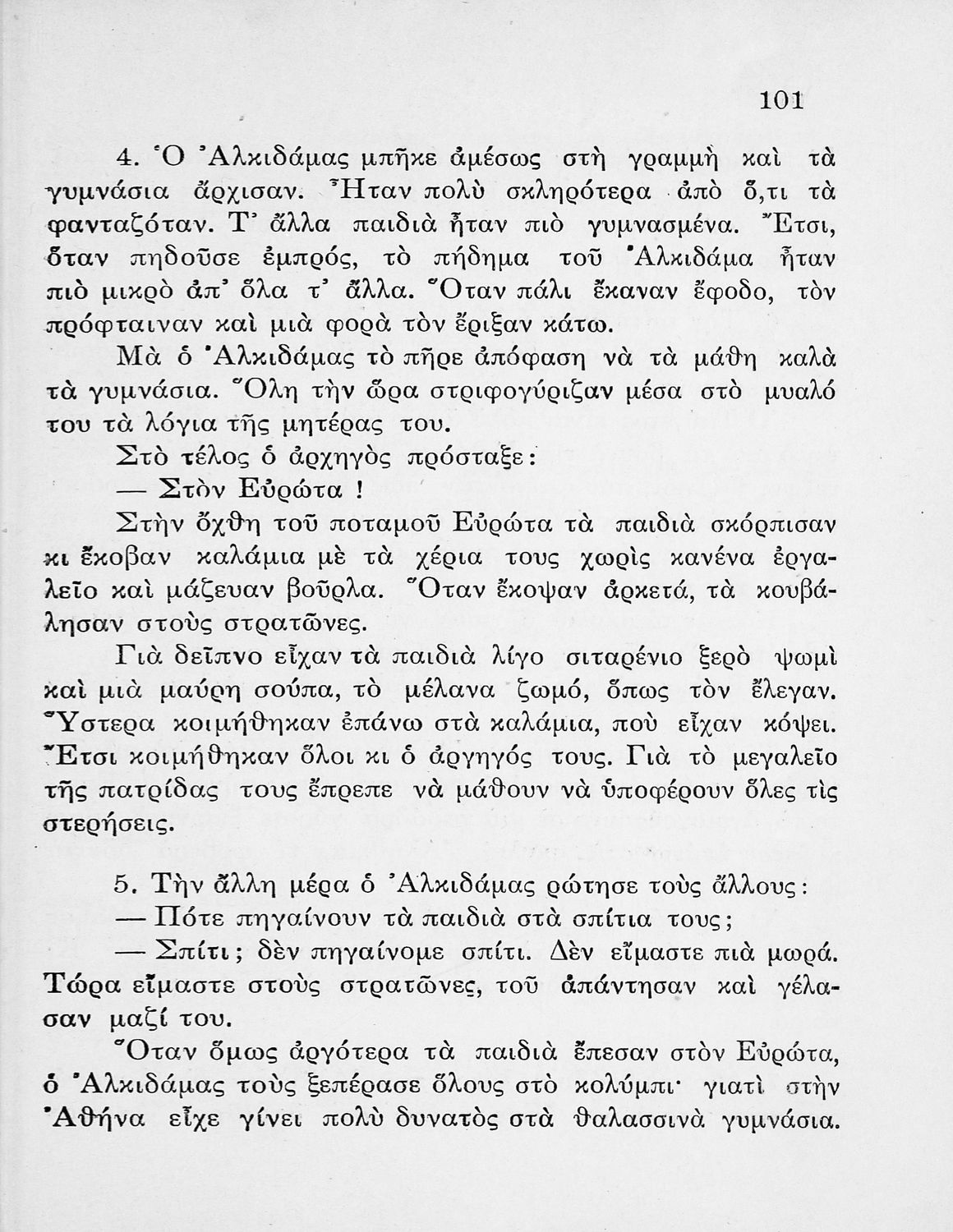 Αναγνωστικό Δ΄ Δημοτικού που περιλαμβάνει θέματα από την θρησκευτική, οικογενειακή και σχολική ζωή του παιδιού, την ελληνική μυθολογία και ιστορία και τη ζωή των ζώων.