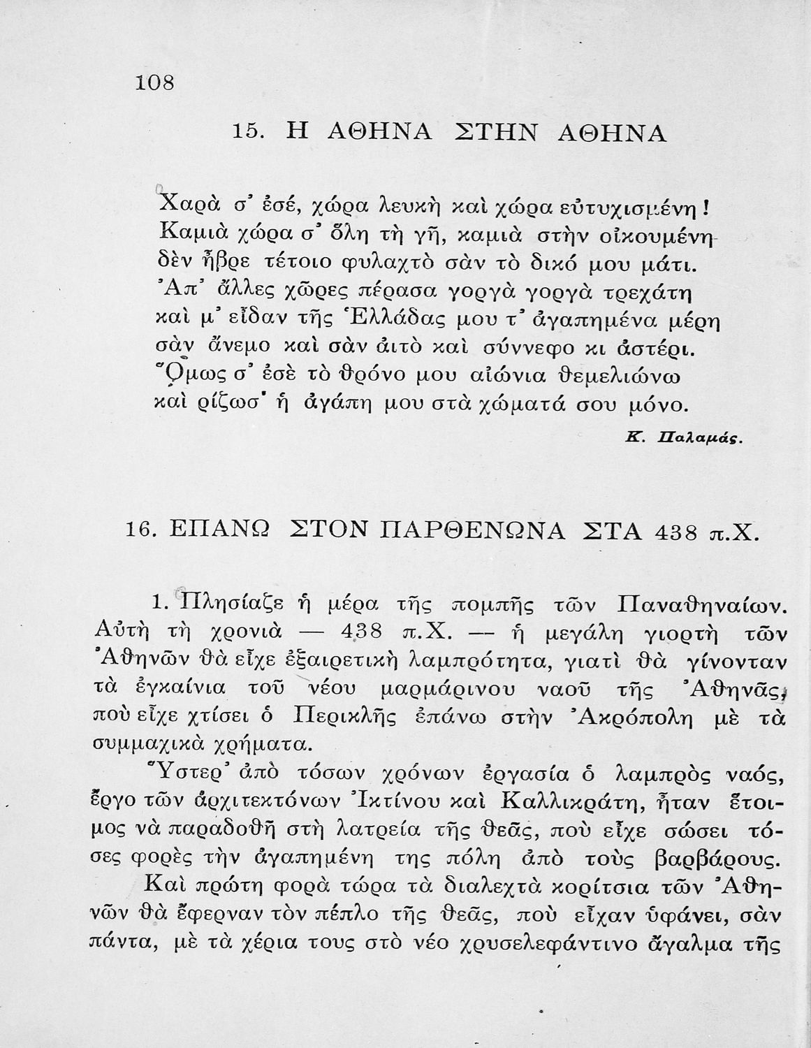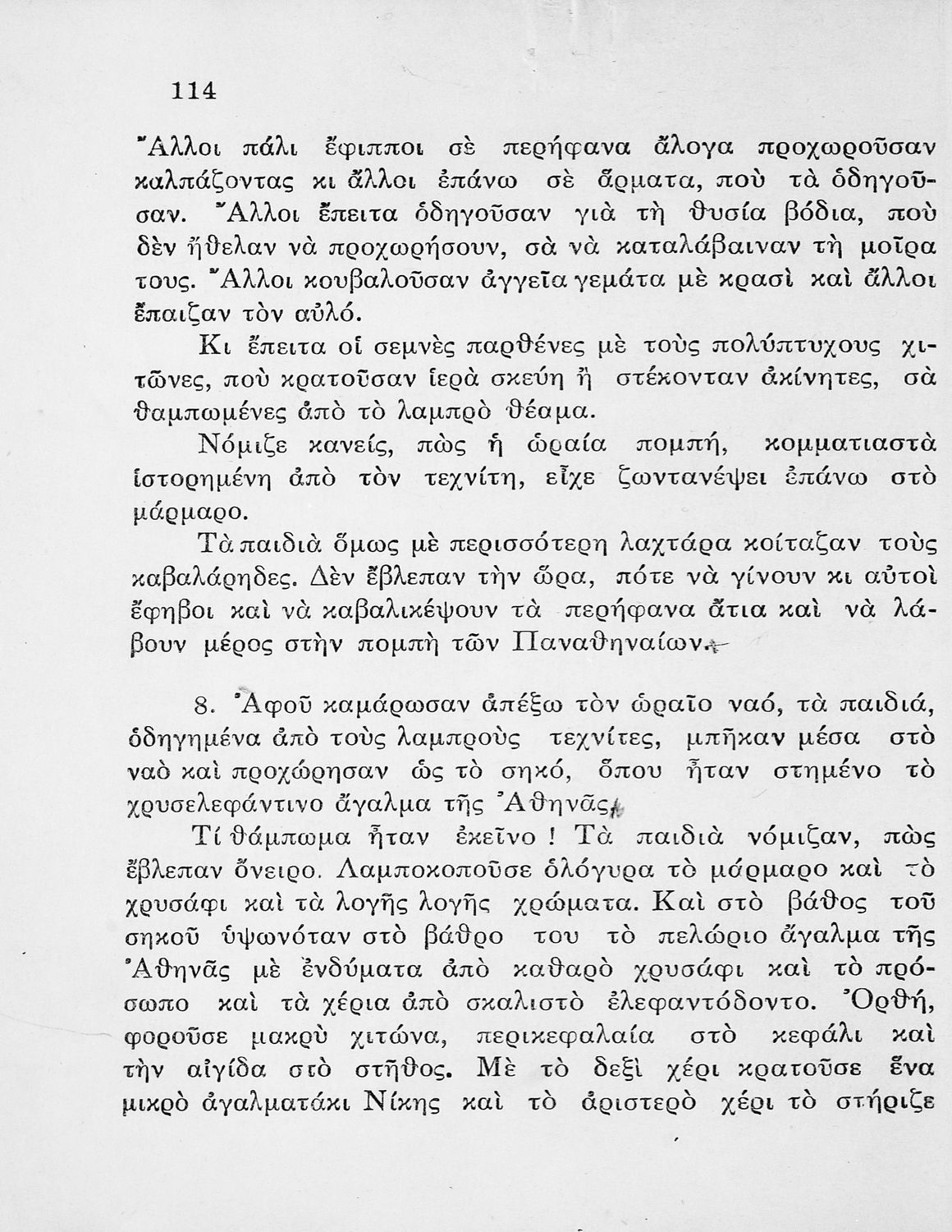 Αναγνωστικό Δ΄ Δημοτικού που περιέχει κείμενα εμπνευσμένα από την ζωή στην ύπαιθρο, την οικογενειακή ζωή, την αγάπη για τα ζώα, τη θρησκευτική παράδοση, την κοινωνική ζωή, την εθνική ζωή και προσήλωση στα εθνικά σύμβολα. 'Όντας σχολικό βιβλίο του μεταξικού καθεστώτος περιέχει χαρακτηριστικά δείγματα της μεταξικής προπαγάνδας και λογικής που παρουσιάζουν τον Ι. Μεταξά, ως μάγο, αρχηγό και κυβερνήτη της Ελλάδας. Όπως όλα τα βιβλία του καθεστώτος φέρει τη ρήση του Μεταξά "Είστε Ελληνόπουλα και είναι μεγάλο πράγμα να είναι κανείς Έλλην".