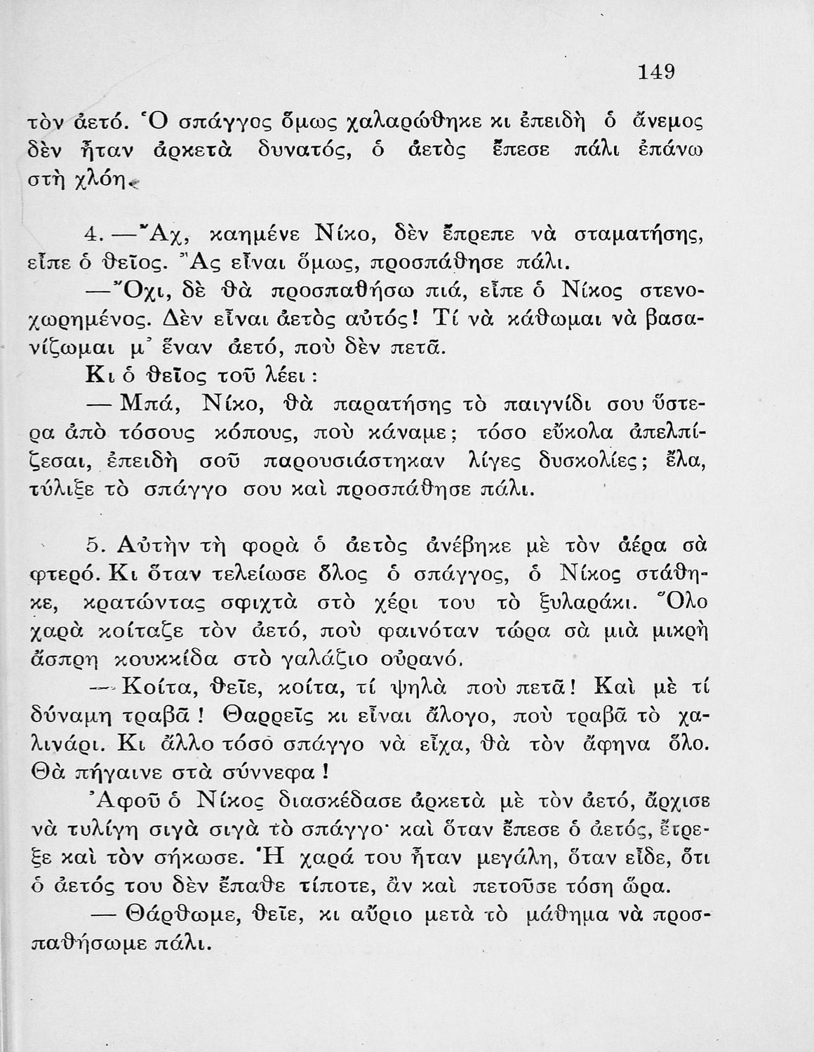 Αναγνωστικό Δ΄ Δημοτικού που περιλαμβάνει θέματα από την θρησκευτική, οικογενειακή και σχολική ζωή του παιδιού, την ελληνική μυθολογία και ιστορία και τη ζωή των ζώων.