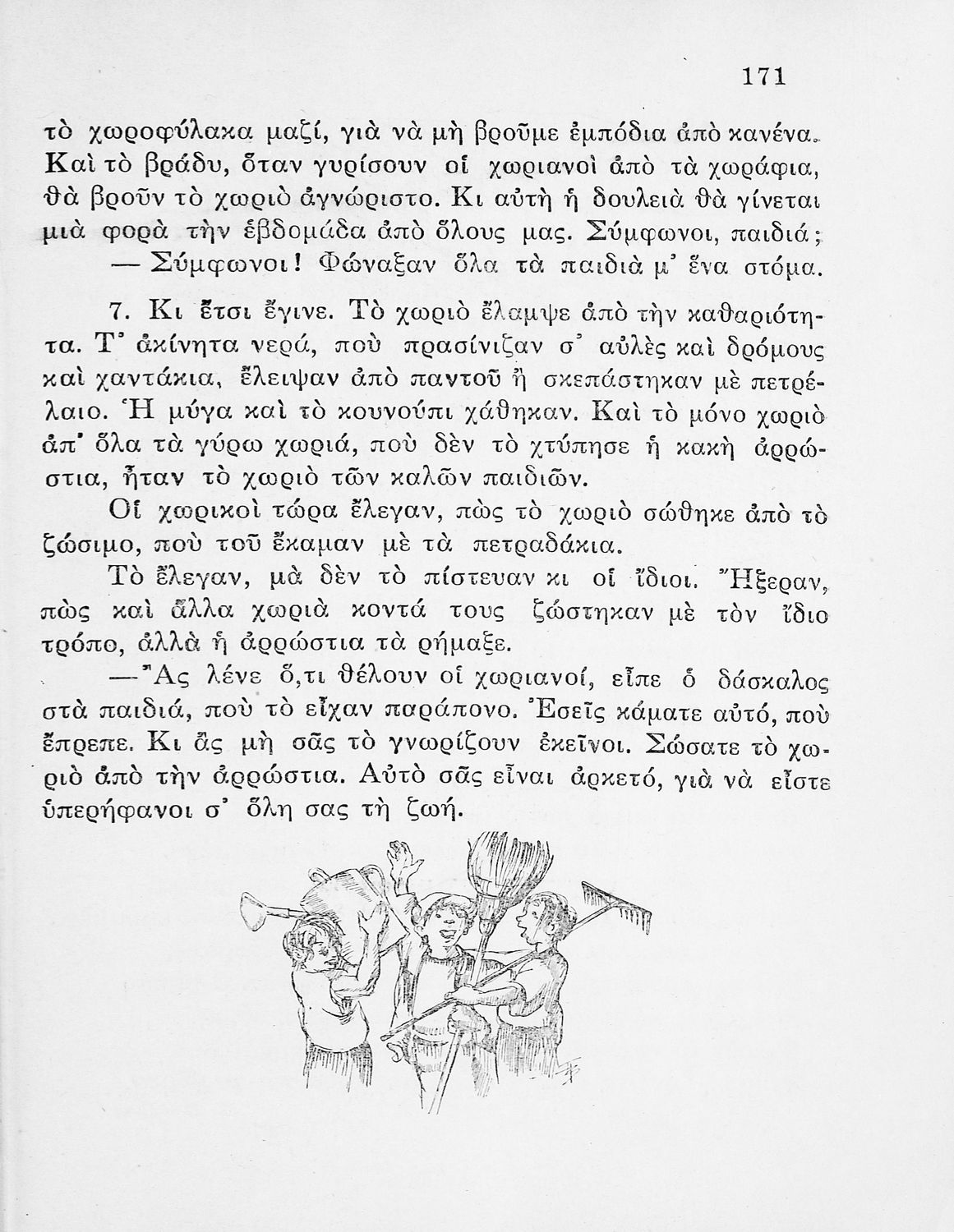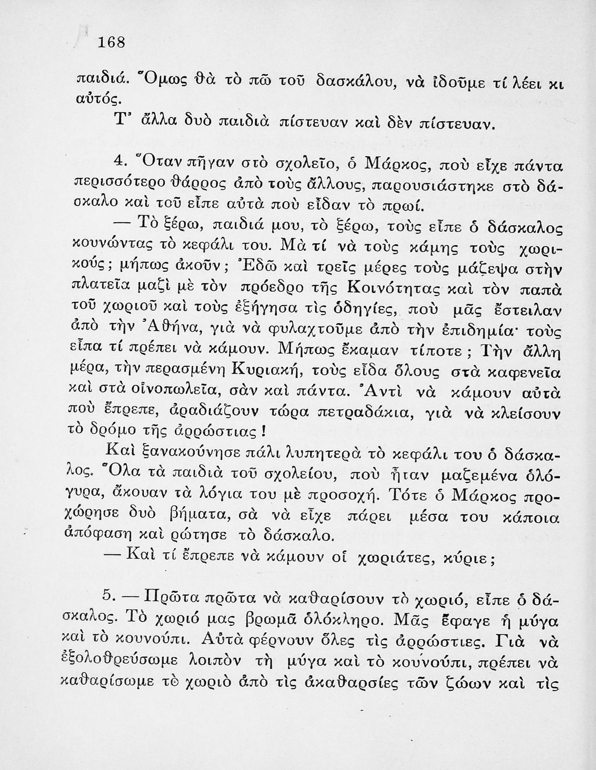 Αναγνωστικό Δ΄ Δημοτικού που περιλαμβάνει θέματα από την θρησκευτική, οικογενειακή και σχολική ζωή του παιδιού, την ελληνική μυθολογία και ιστορία και τη ζωή των ζώων.