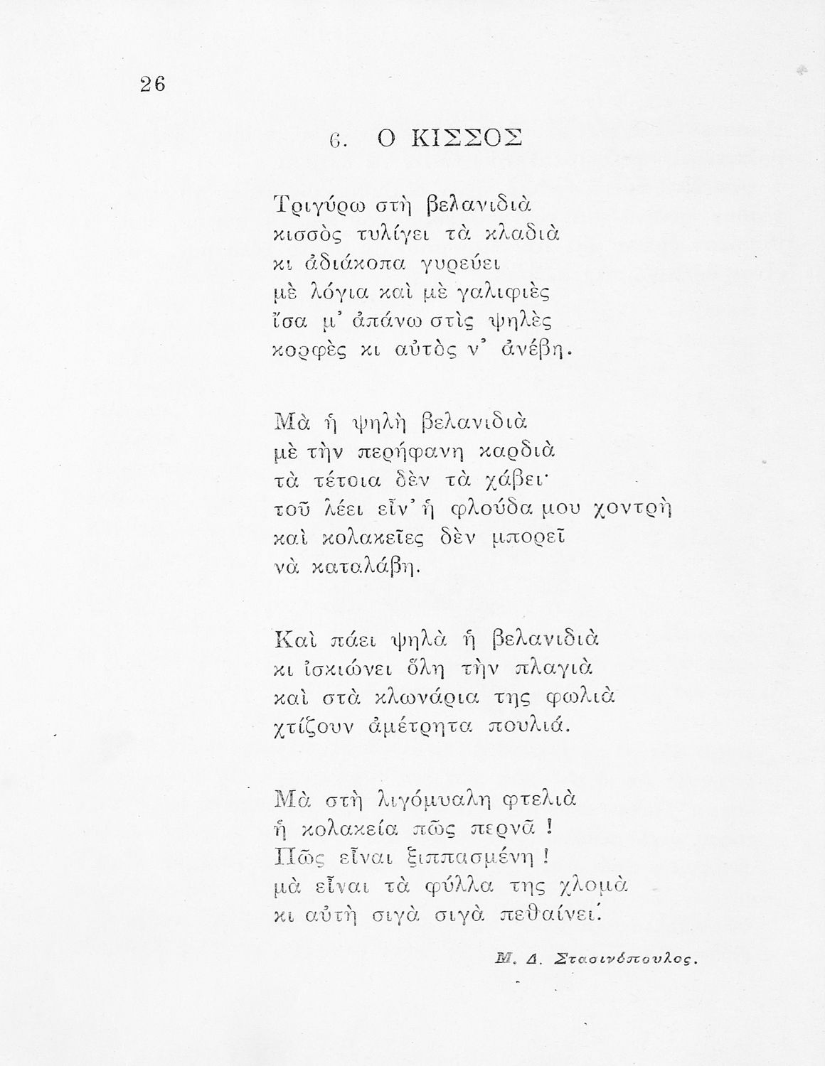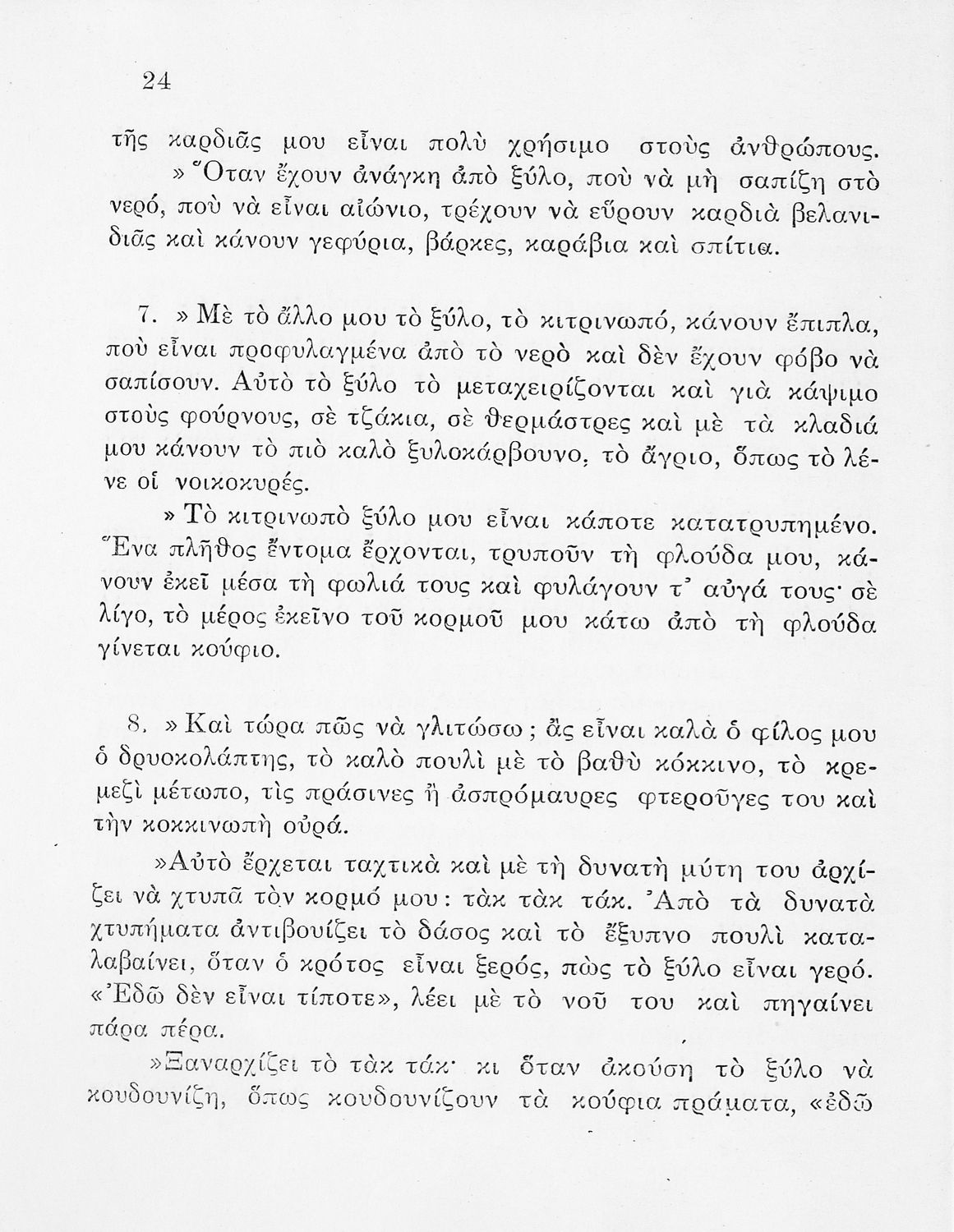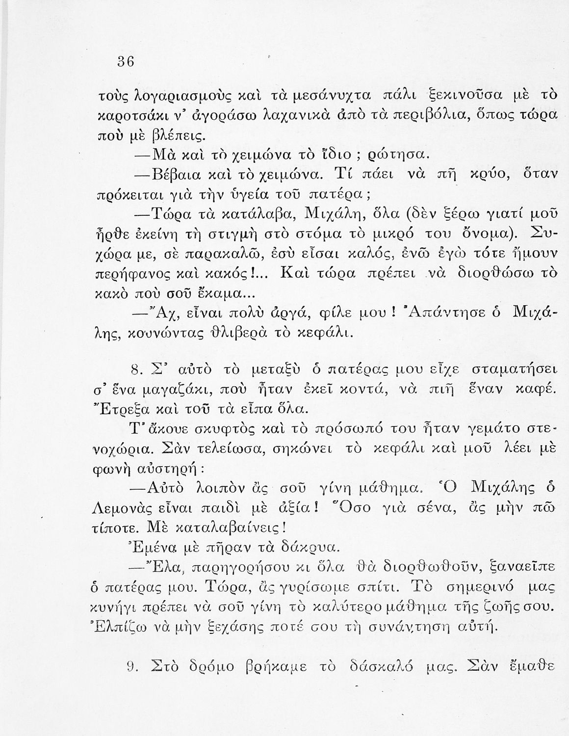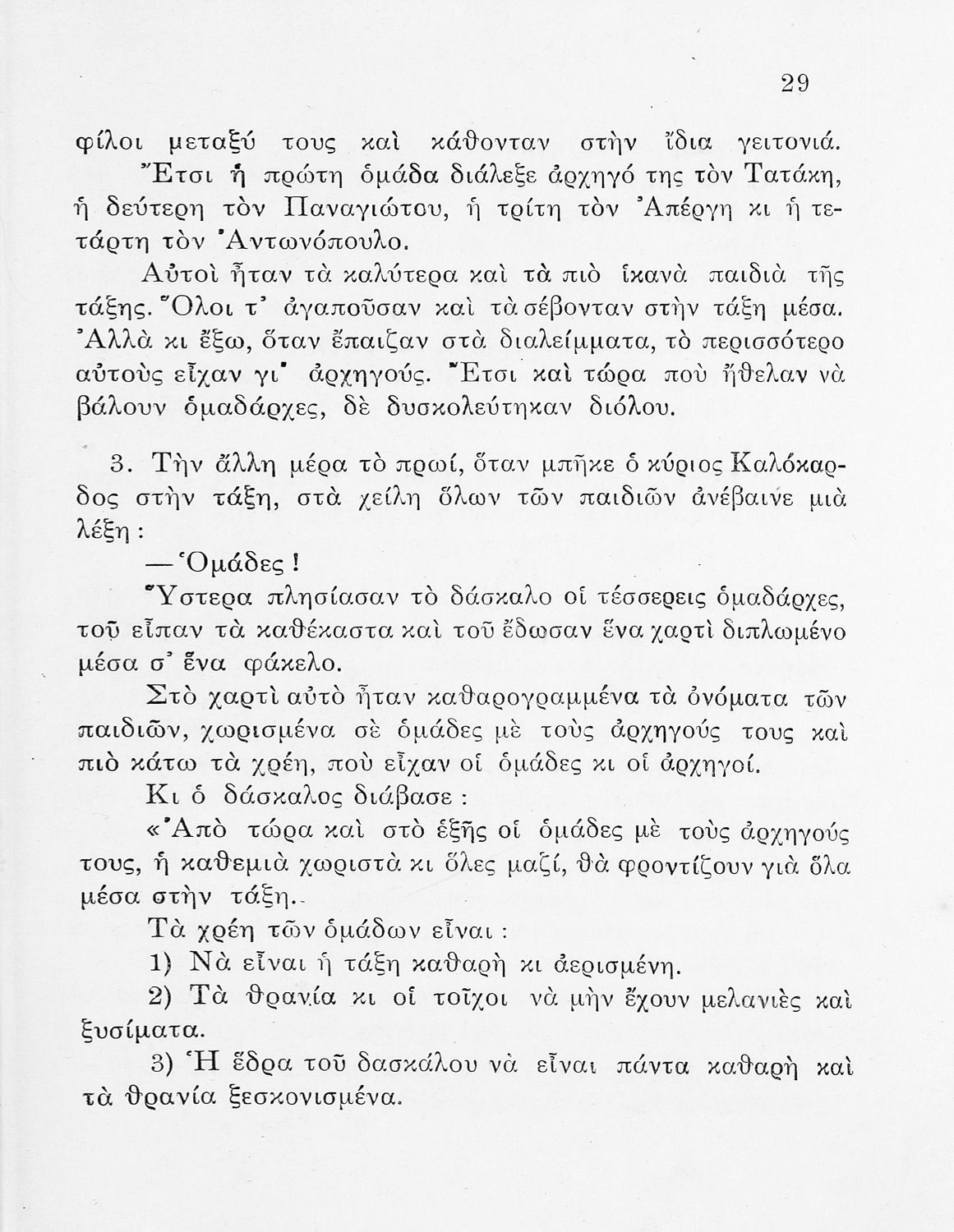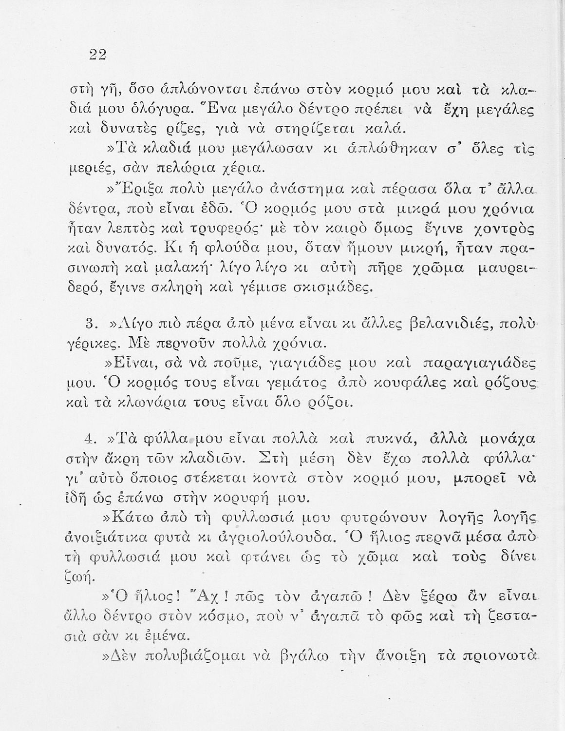 Αναγνωστικό Δ΄ Δημοτικού που περιέχει κείμενα εμπνευσμένα από την ζωή στην ύπαιθρο, την οικογενειακή ζωή, την αγάπη για τα ζώα, τη θρησκευτική παράδοση, την κοινωνική ζωή, την εθνική ζωή και προσήλωση στα εθνικά σύμβολα. 'Όντας σχολικό βιβλίο του μεταξικού καθεστώτος περιέχει χαρακτηριστικά δείγματα της μεταξικής προπαγάνδας και λογικής που παρουσιάζουν τον Ι. Μεταξά, ως μάγο, αρχηγό και κυβερνήτη της Ελλάδας. Όπως όλα τα βιβλία του καθεστώτος φέρει τη ρήση του Μεταξά "Είστε Ελληνόπουλα και είναι μεγάλο πράγμα να είναι κανείς Έλλην".