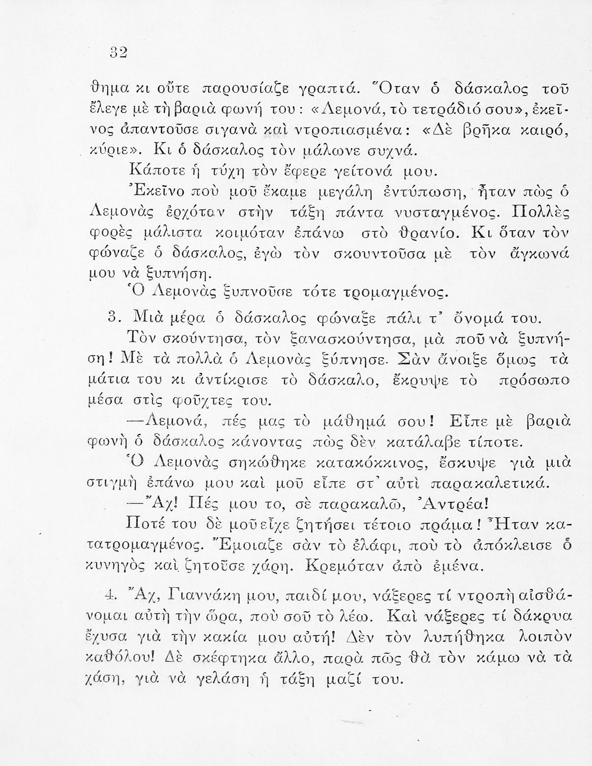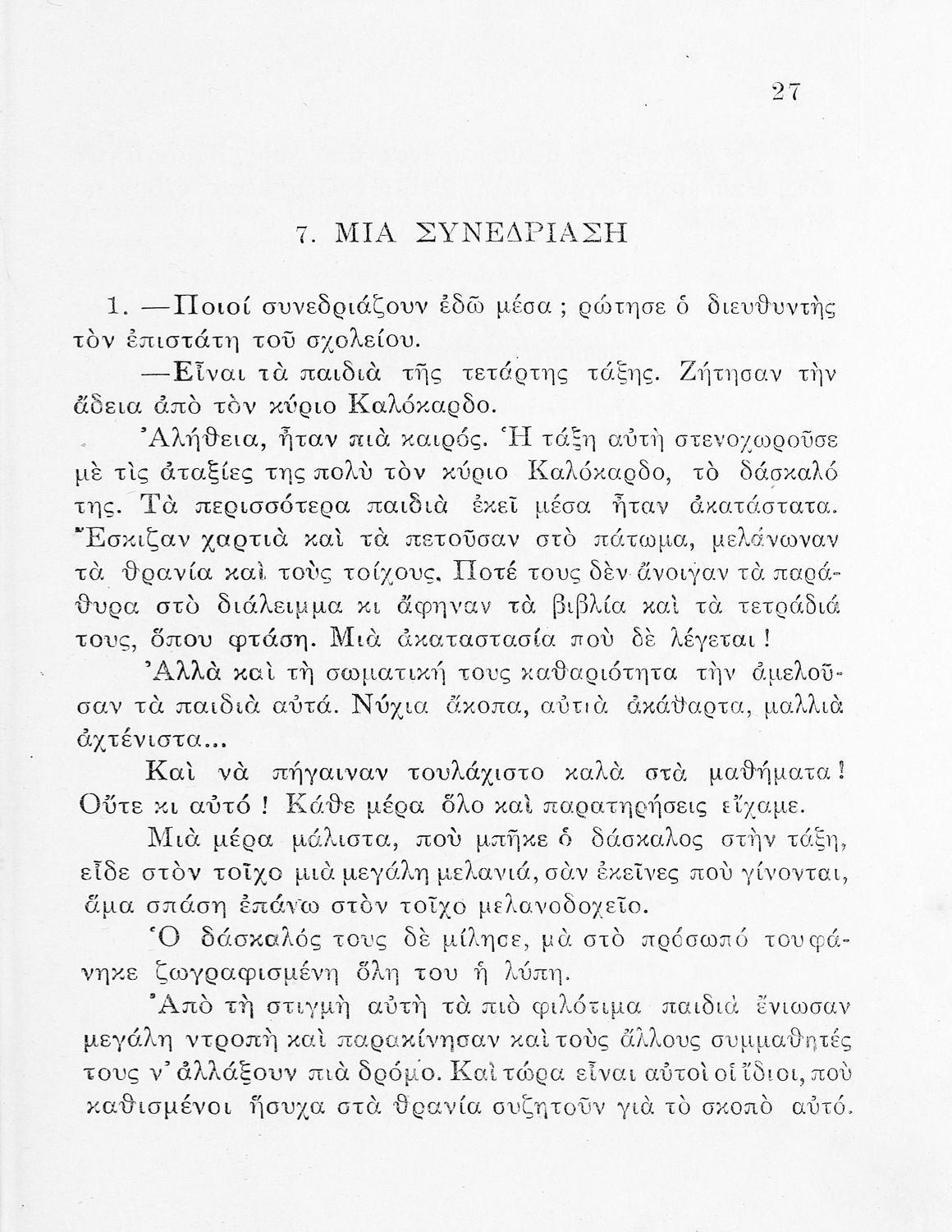 Αναγνωστικό Δ΄ Δημοτικού που περιλαμβάνει θέματα από την θρησκευτική, οικογενειακή και σχολική ζωή του παιδιού, την ελληνική μυθολογία και ιστορία και τη ζωή των ζώων.