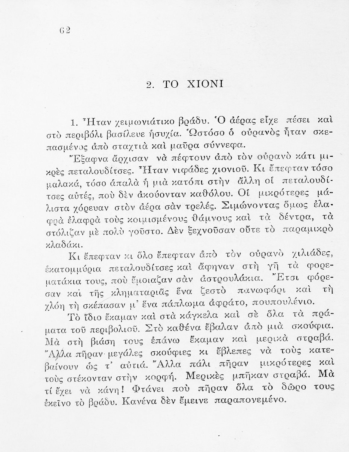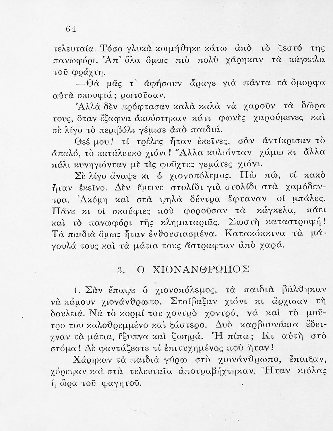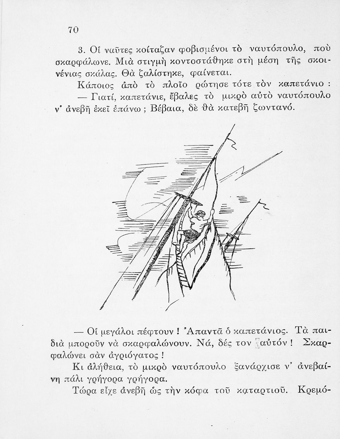 Αναγνωστικό Δ΄ Δημοτικού που περιλαμβάνει θέματα από την θρησκευτική, οικογενειακή και σχολική ζωή του παιδιού, την ελληνική μυθολογία και ιστορία και τη ζωή των ζώων.