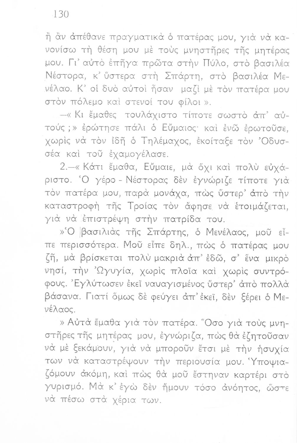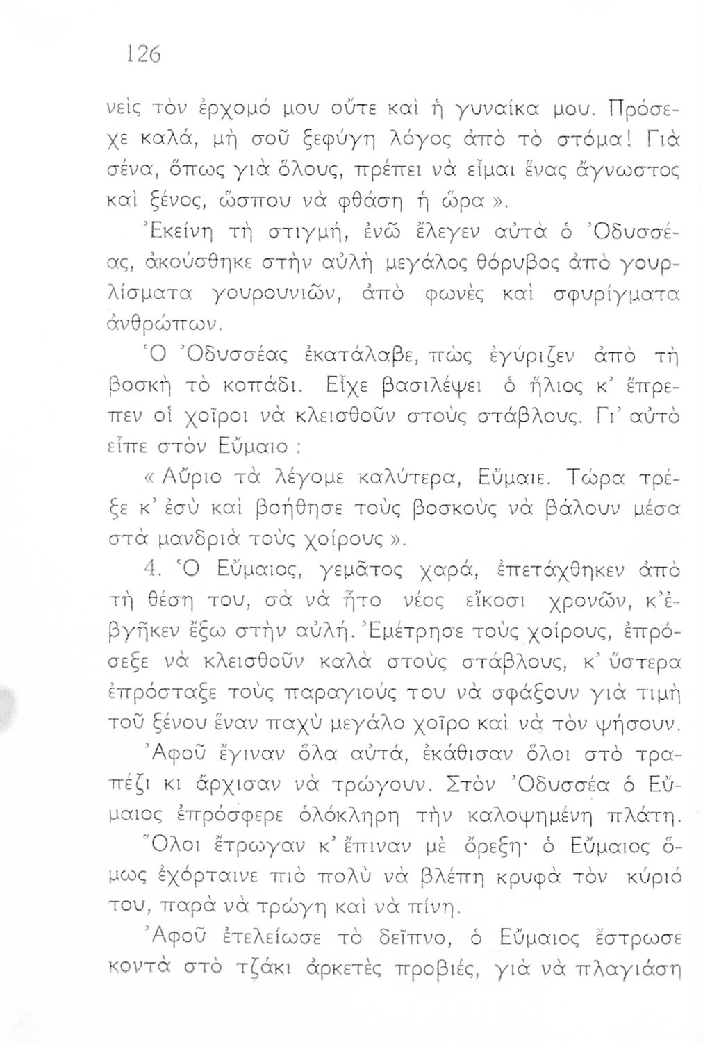 Σχολικό εγχειρίδιο για την Γ' Τάξη Δημοτικού για το μάθημα των Αρχαίων Ελληνικών. Περιλαμβάνει ραψωδίες της Οδύσσειας σε απόδοση των συγγραφέων.