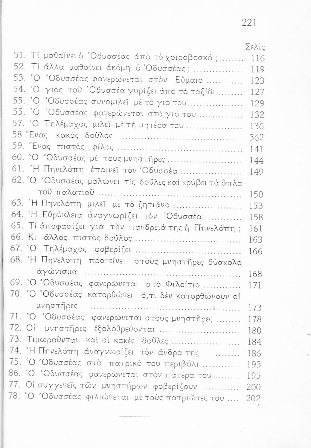 Σχολικό εγχειρίδιο για την Γ' Τάξη Δημοτικού για το μάθημα των Αρχαίων Ελληνικών. Περιλαμβάνει ραψωδίες της Οδύσσειας σε απόδοση των συγγραφέων.