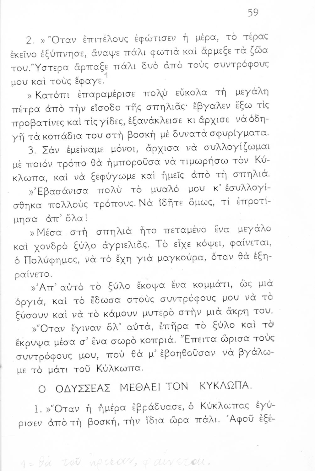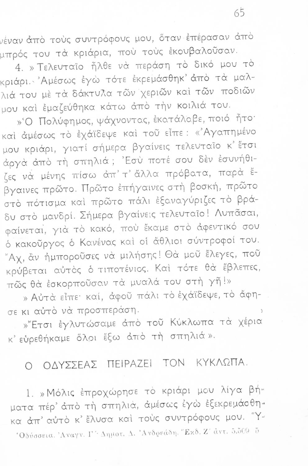 Οδύσσεια (διασκευή) Αναγνωστικόν Γ΄ Δημοτικού