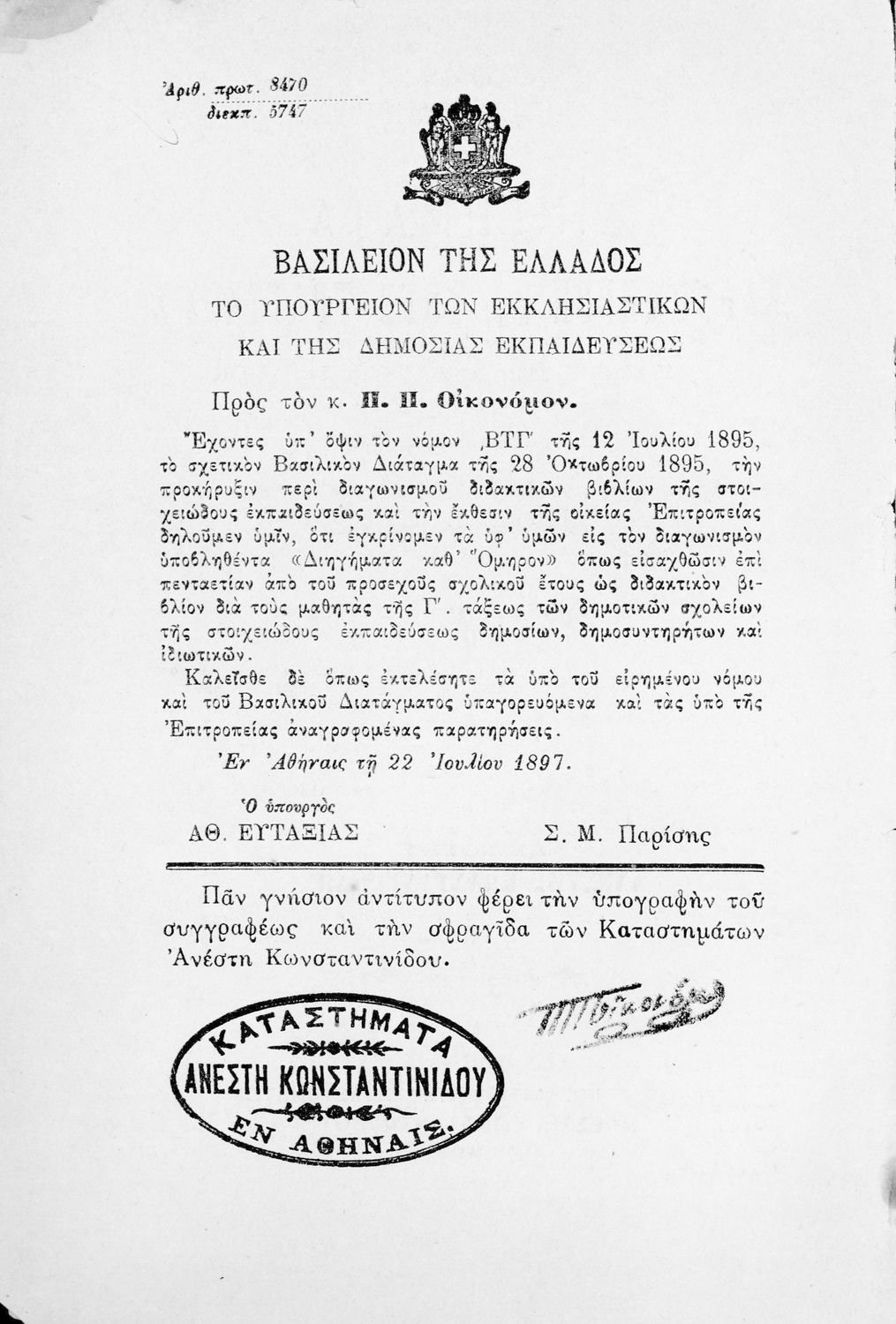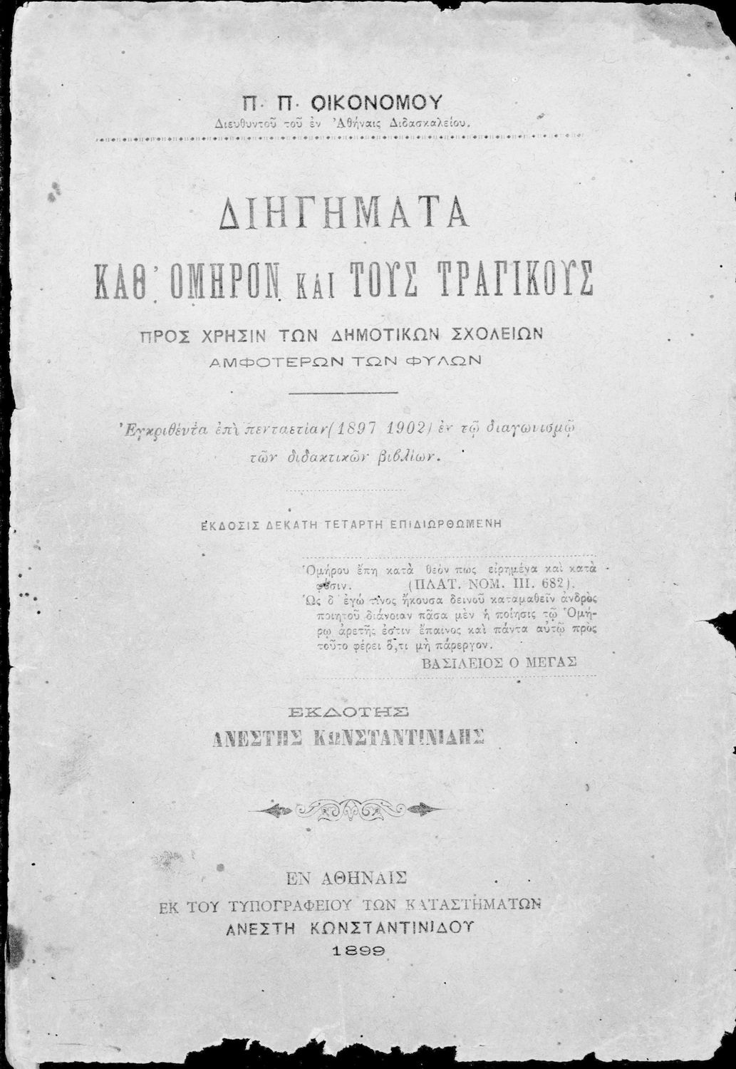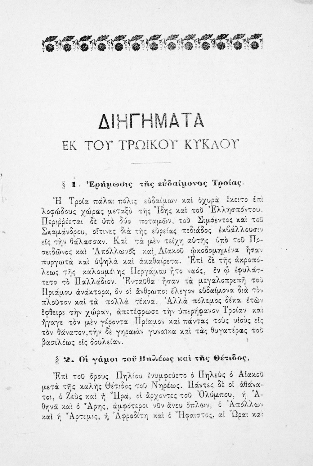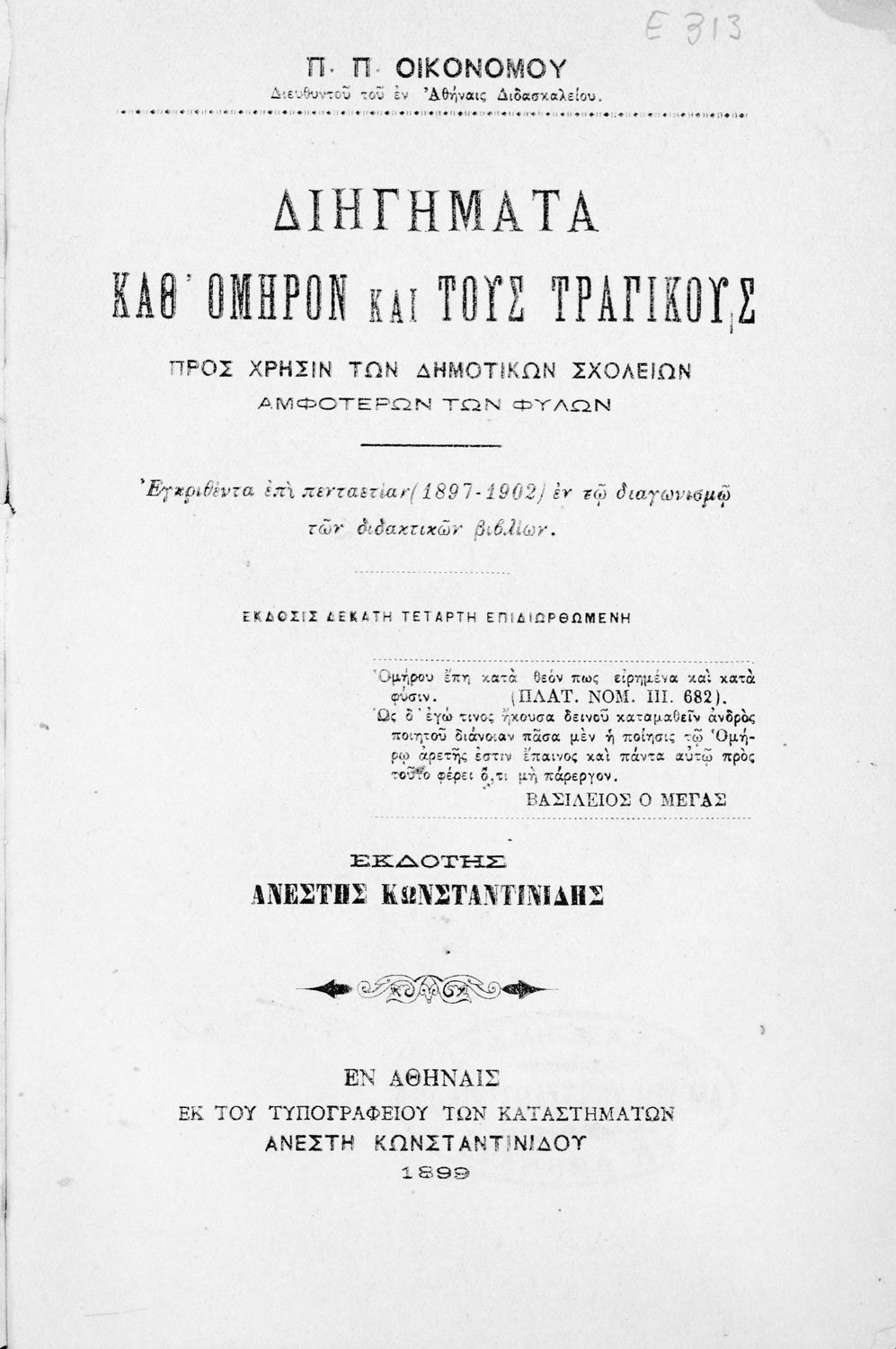 Τίτλος: Διηγήματα καθ' Όμηρον και τους τραγικούς προς χρήσιν των Δημοτικών Σχολείων αμφοτέρων των φύλων