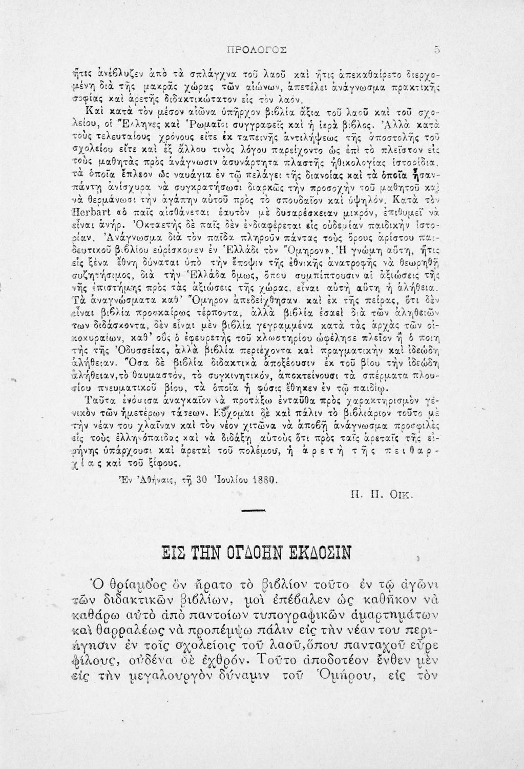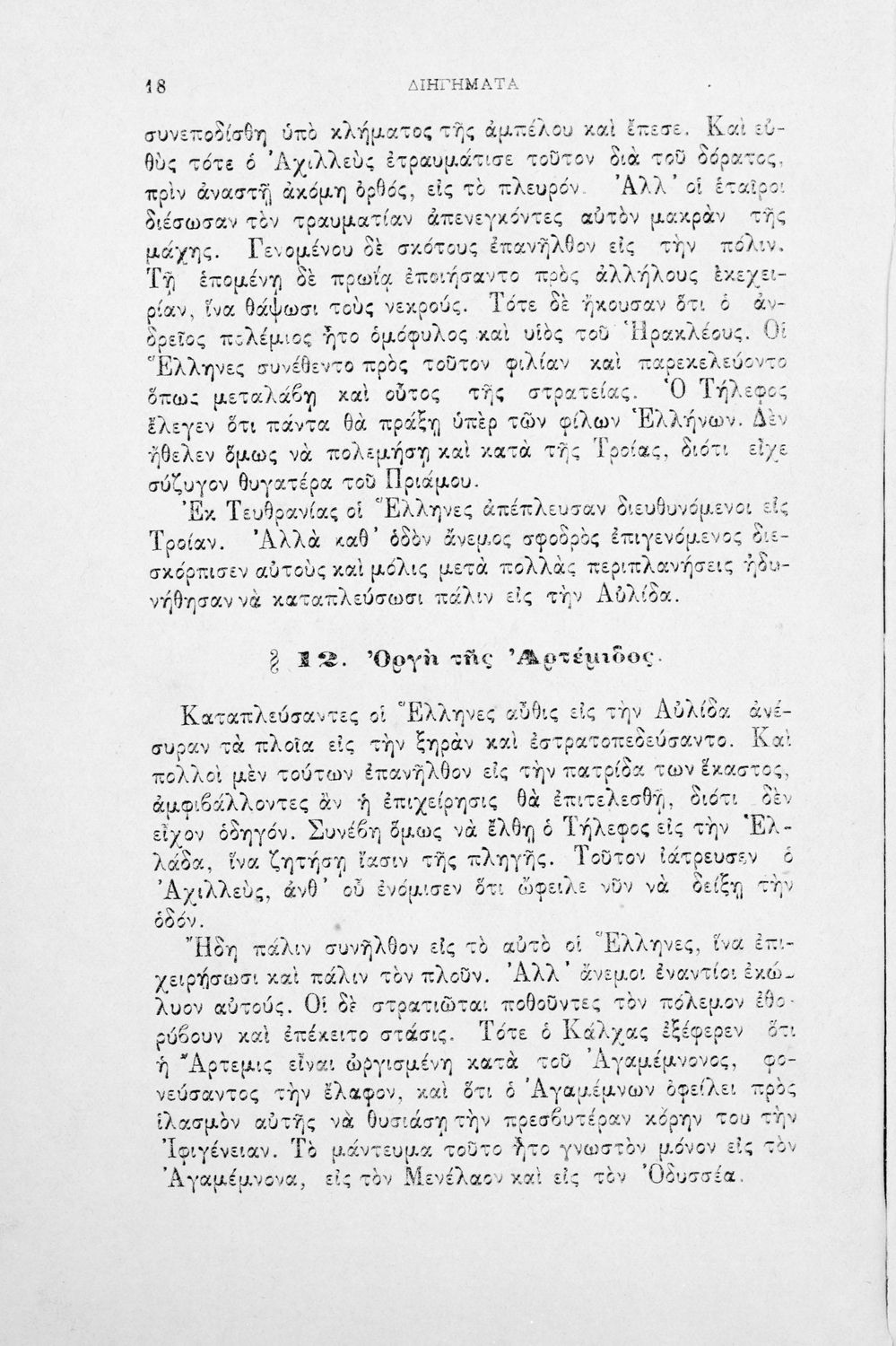 Αναγνωστικό που περιλαμβάνει διηγήματα εμπνευσμένα από τον Τρωικό Πόλεμο και αποσκοπεί να διδάξει στους ελληνόπαιδες "ότι προς ταις αρεταίς της ειρήνης υπάρχουσι και αρεταίς του πολέμου, η αρετή της πειθαρχίας