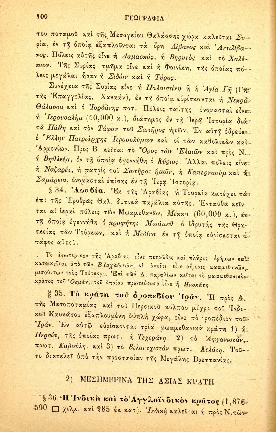 Σχολικό εγχειρίδιο Γεωγραφίας για τα Ελληνικά Σχολεία, τα Γυμνάσια, τα Διδασκαλεία, τα Παρθεναγωγεία και τις Εμπορικές-Στρατιωτικές-Ναυτικές Σχολές που περιέχει εισαγωγή στην κοσμογραφία, τη μαθηματική, ...