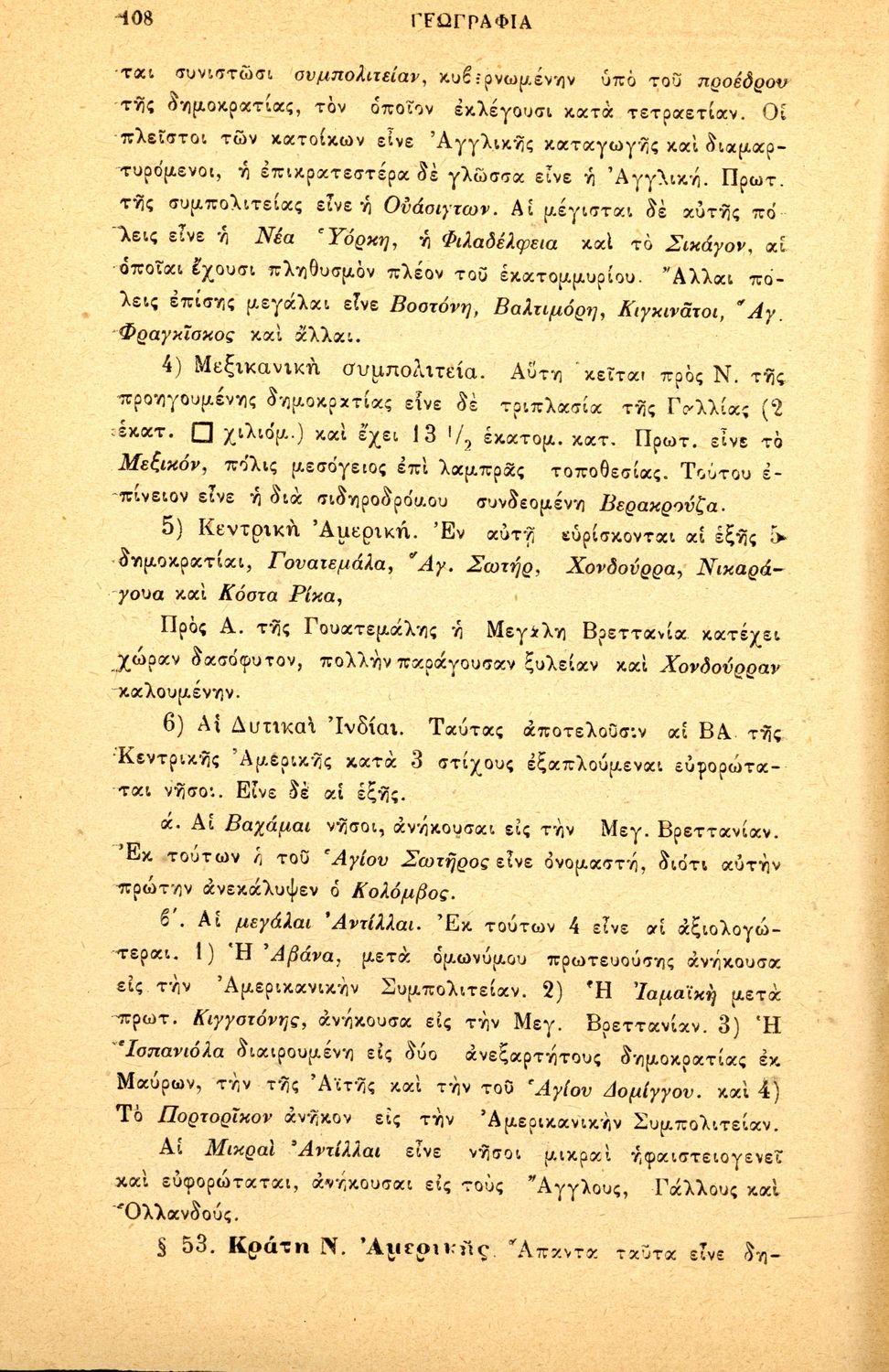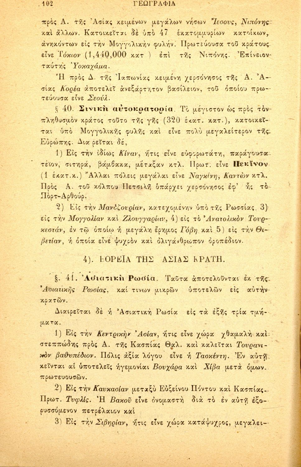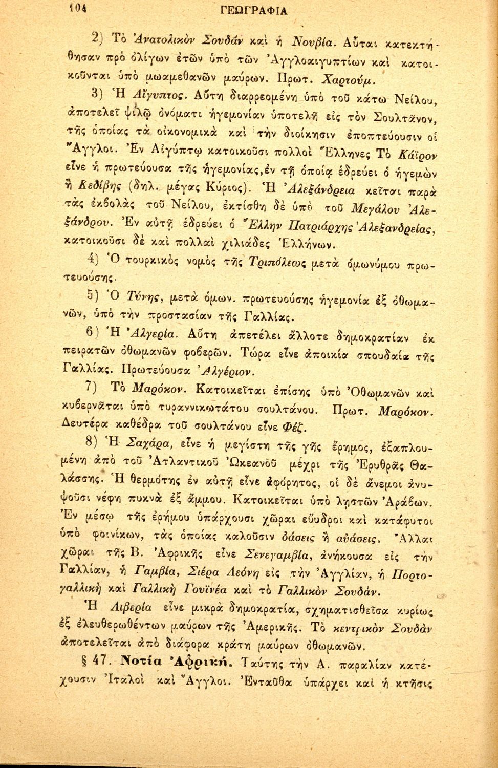 Σχολικό εγχειρίδιο Γεωγραφίας για τα Δημοτικά και τα Παρθεναγωγεία που αναλύει τη γεωμορφολογία της Γης και παρουσιάζει, διεξοδικά, κάποιους από τους νομούς της Ελλάδας και, συνοπτικά, τα γενικά χαρακτηριστικά των 5 ηπείρων.