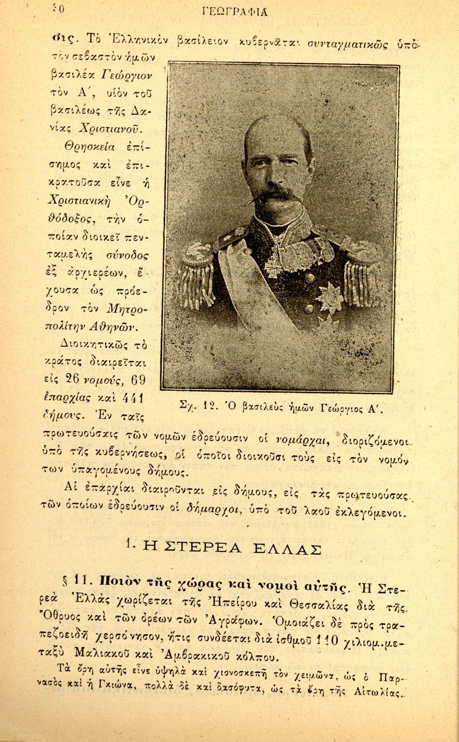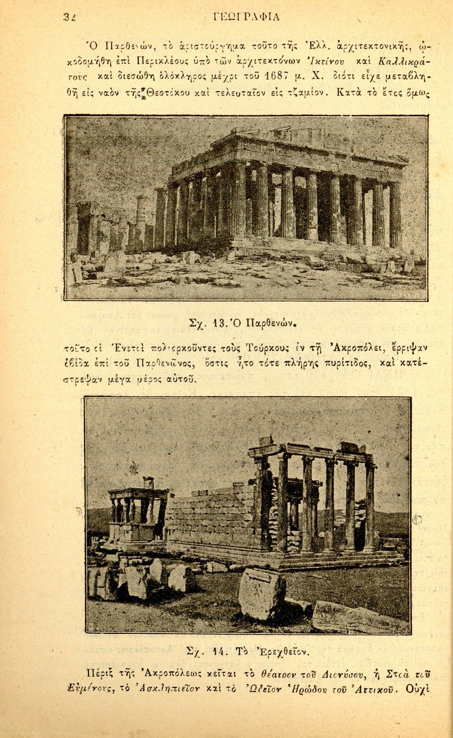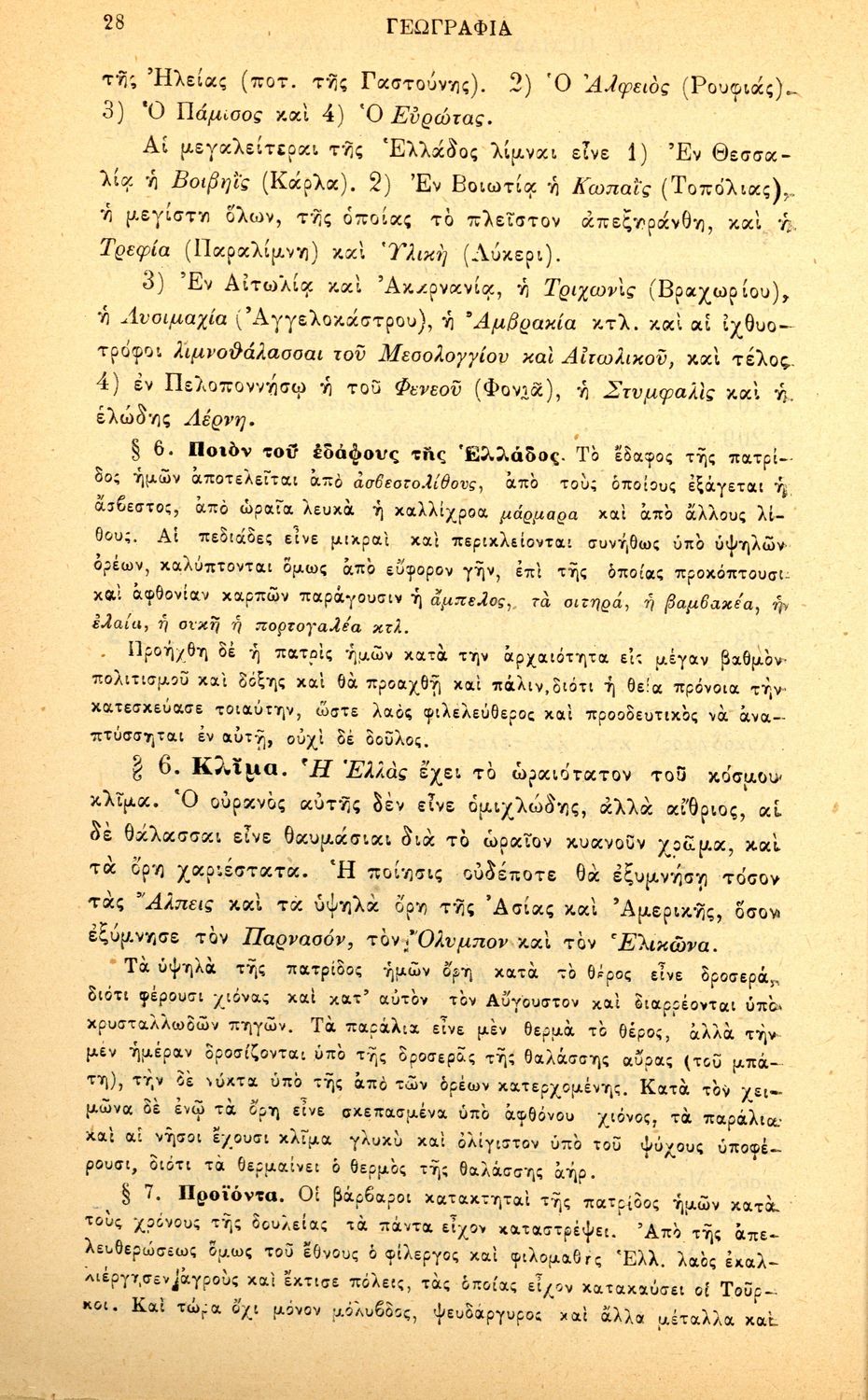 Σχολικό εγχειρίδιο Γεωγραφίας για τα Δημοτικά και τα Παρθεναγωγεία που αναλύει τη γεωμορφολογία της Γης και παρουσιάζει, διεξοδικά, κάποιους από τους νομούς της Ελλάδας και, συνοπτικά, τα γενικά χαρακτηριστικά των 5 ηπείρων.