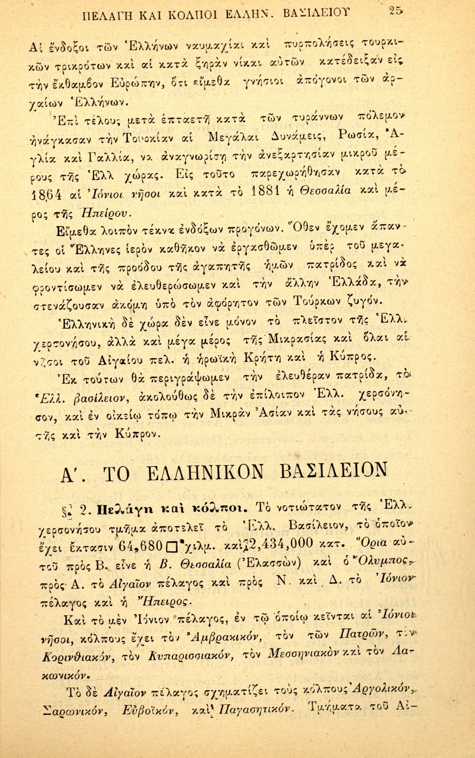 Σχολικό εγχειρίδιο Γεωγραφίας για τα Ελληνικά Σχολεία, τα Γυμνάσια, τα Διδασκαλεία, τα Παρθεναγωγεία και τις Εμπορικές-Στρατιωτικές-Ναυτικές Σχολές που περιέχει εισαγωγή στην κοσμογραφία, τη μαθηματική, ...