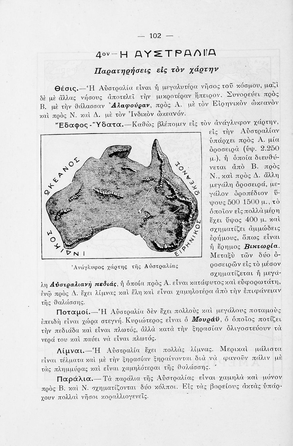 Βαθμίδα εκπαίδευσης: Πρωτοβάθμια Τάξη: Ε' Δημοτικού Μάθημα: Γεωγραφία Γλώσσα: Καθαρεύουσα Παρουσίαση περιεχομένου: Σχολικό εγχειρίδιο Γεωγραφίας Ε΄ Δημοτικού που περιλαμβάνει στοιχεία φυσικής, μαθηματικής και πολιτικής γεωγραφίας και εστιάζει στη γεωμορφολογική και γεωπολιτική κατάσταση της Ασίας, της Αφρικής, της Αμερικής και της Αυστραλίας. |
