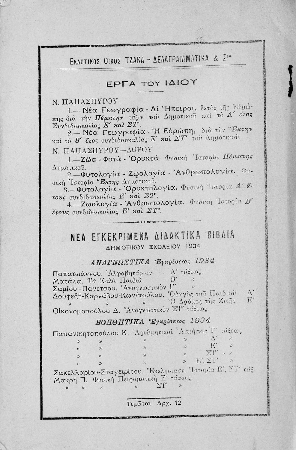 Εκδότης: Δημ. Ν. Τζάκας, Στεφ. Δελαγραμμάτικας Έτος έκδοσης: 1934 Τόπος έκδοσης: Αθήνα |