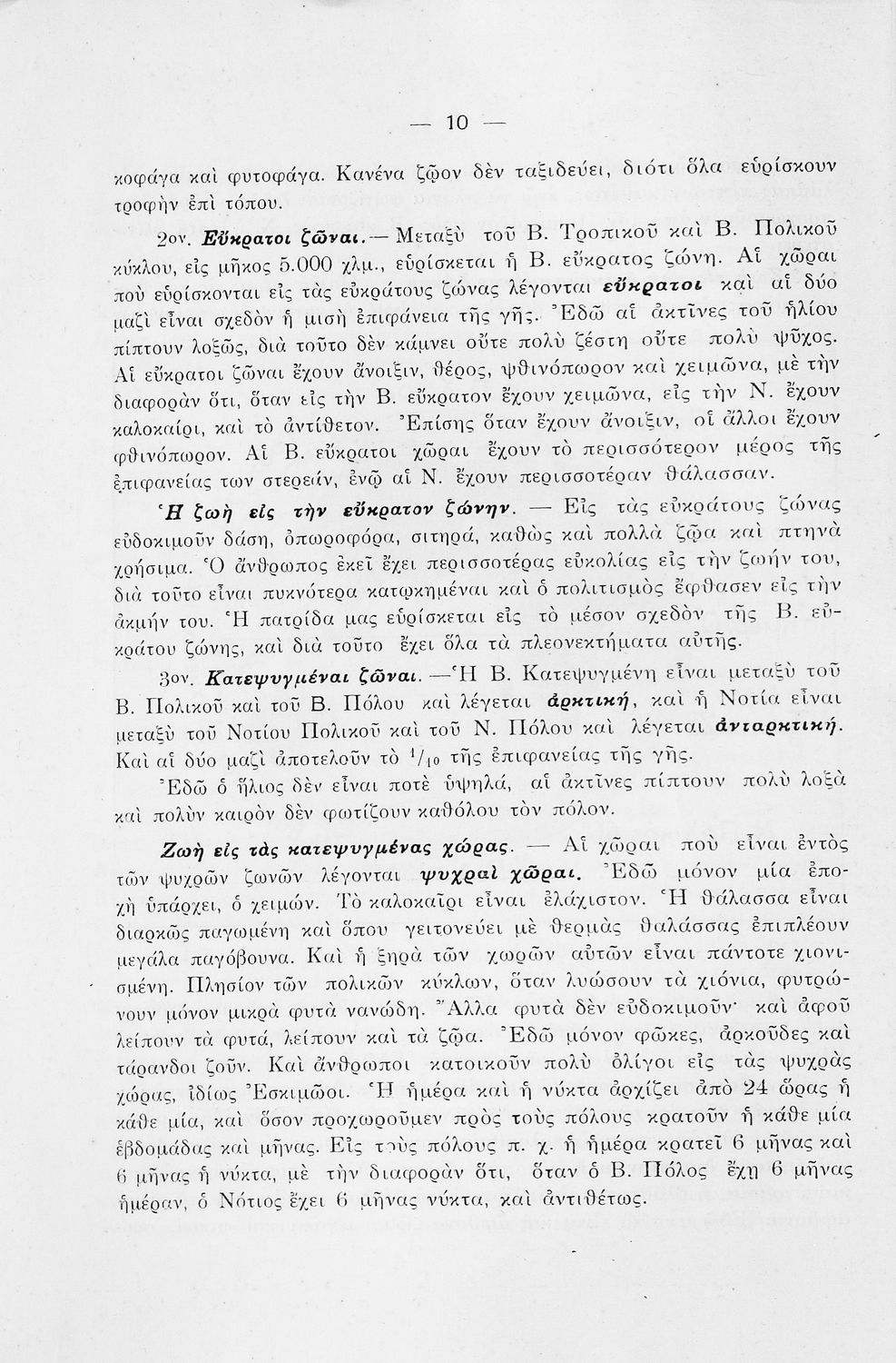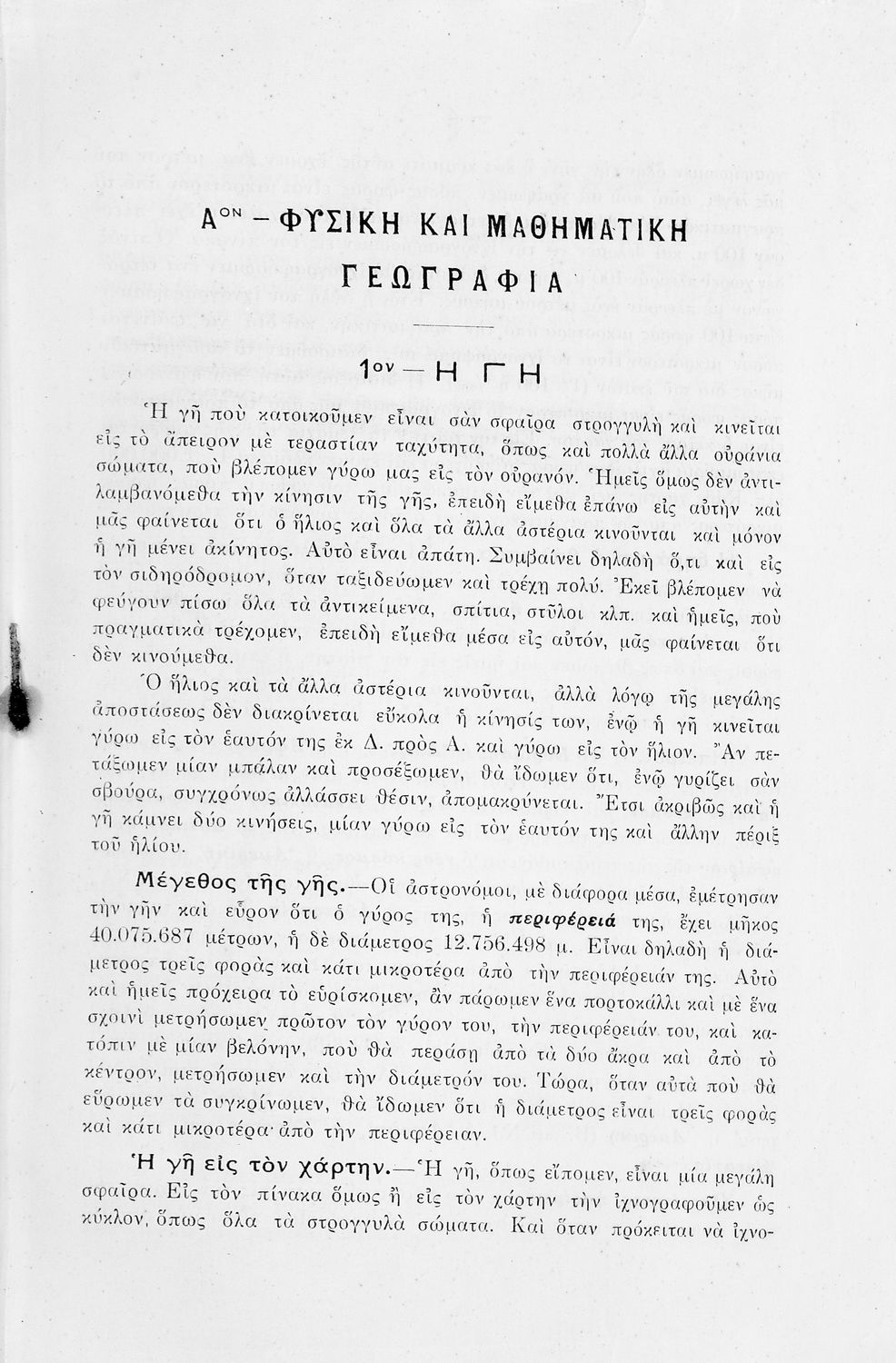 Πρόκειται για σχολικό εγχειρίδιο το οποίο μέσα από πλούσια εικονογράφηση προοριζόταν για τη διδασκαλία του μαθήματος της Γεωγραφίας στην Ε΄ και ΣΤ΄ Δημοτικού. Φέρει την υπογραφή του συγγραφέα και τη σφραγίδα ...