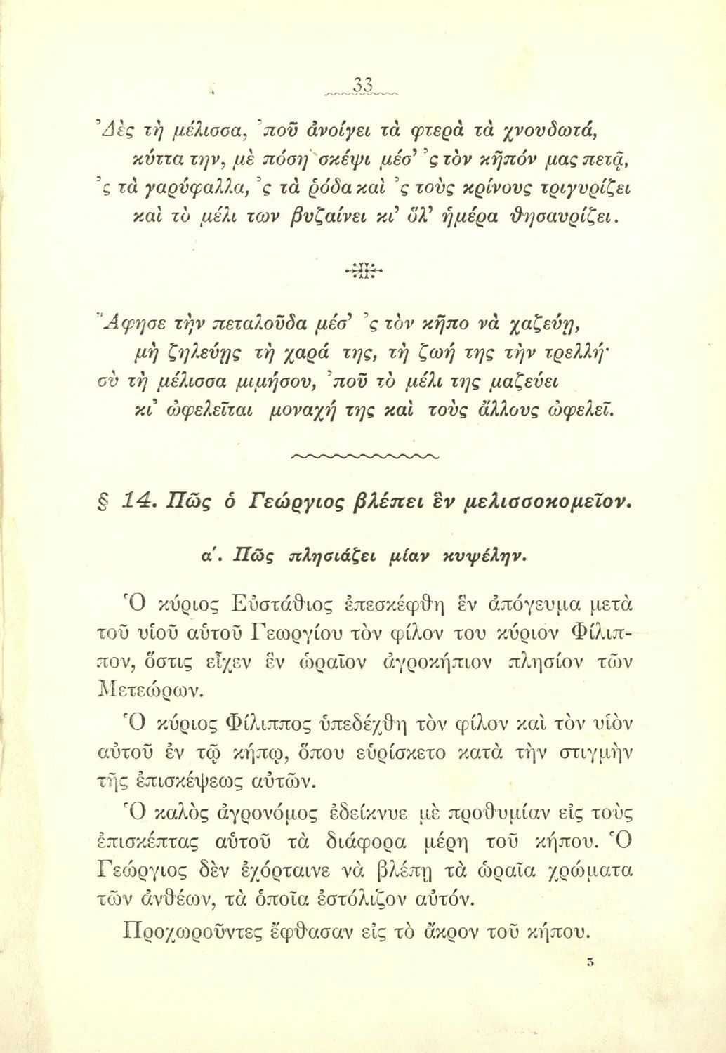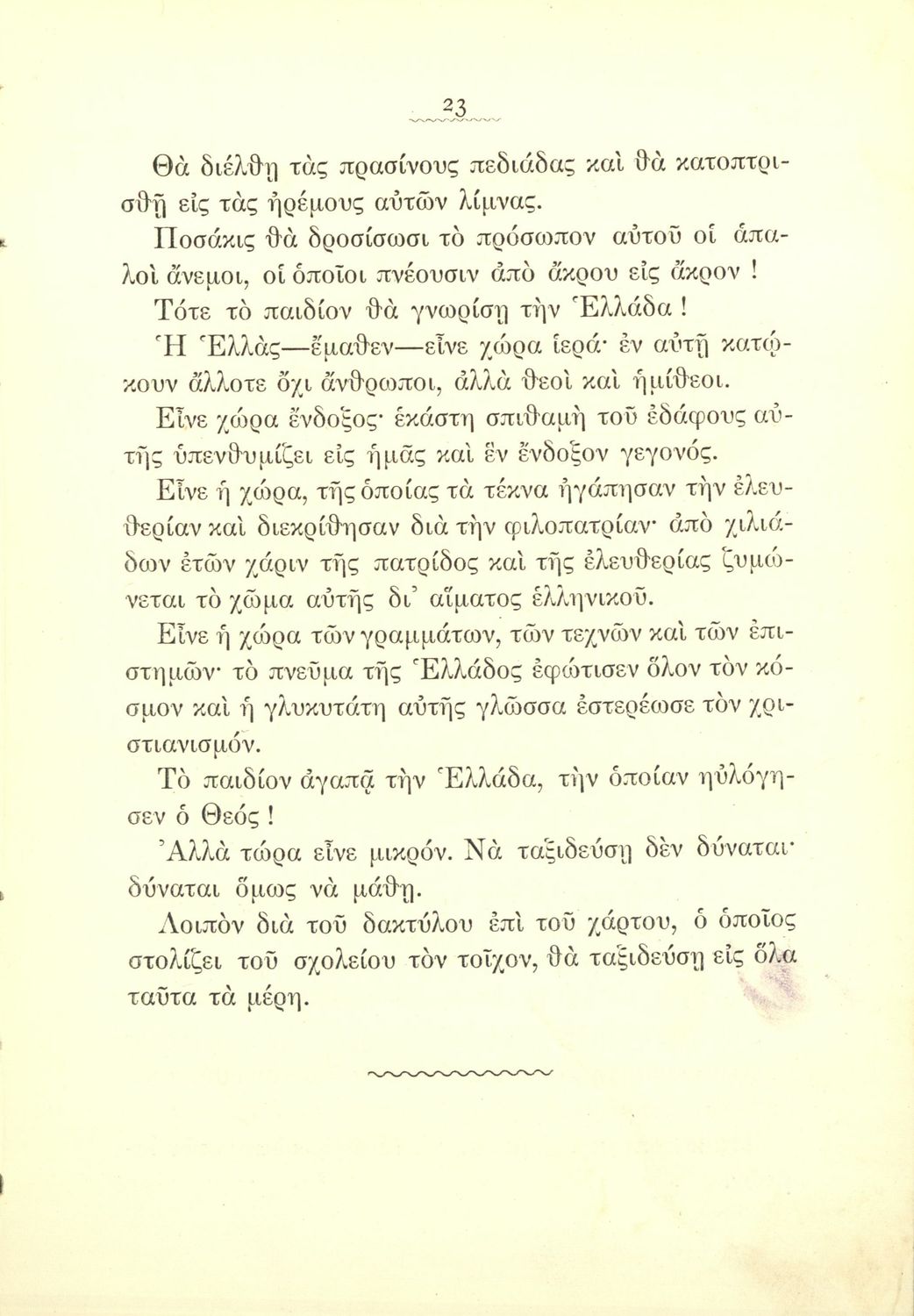 Αναγνωστικό του Δημοτικού. Περιέχει κείμενα της Γαλάτειας Καζαντζάκη. Στο τέλος του βιβλίου υπάρχουν καλλιγραφικά υποδείγματα από το Αναγνωσματάριο του Δημοσθένη Ανδρεάδη.