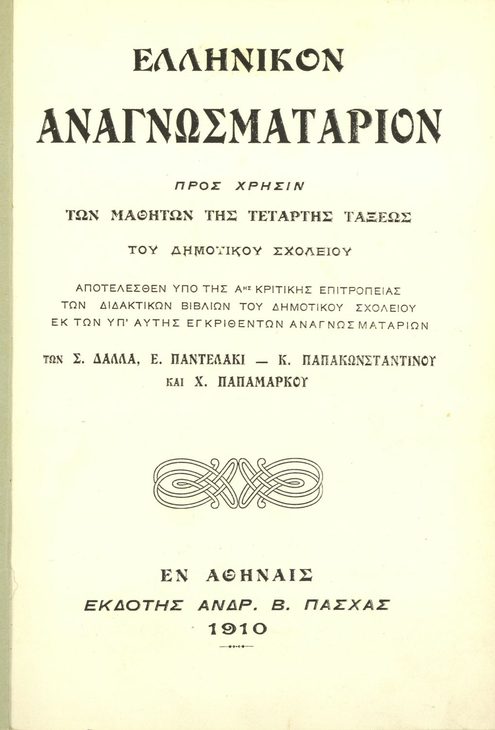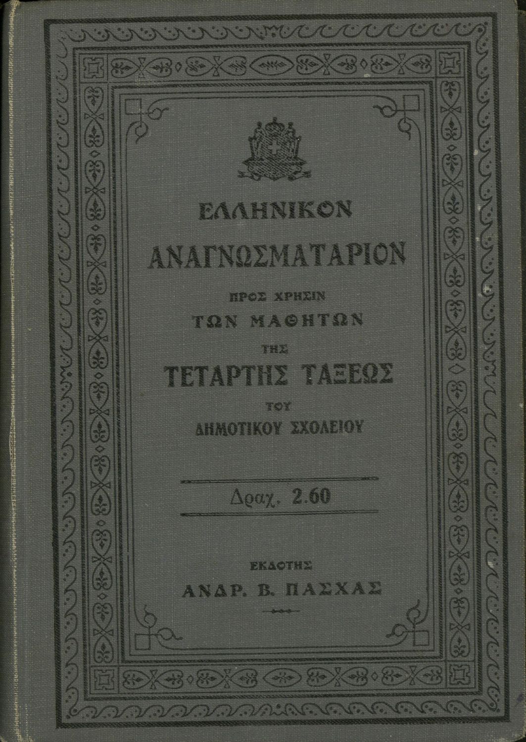 Τίτλος: Ελληνικόν αναγνωσματάριον προς χρήσιν των μαθητών της Δ΄ τάξεως του Δημοτικού Σχολείου