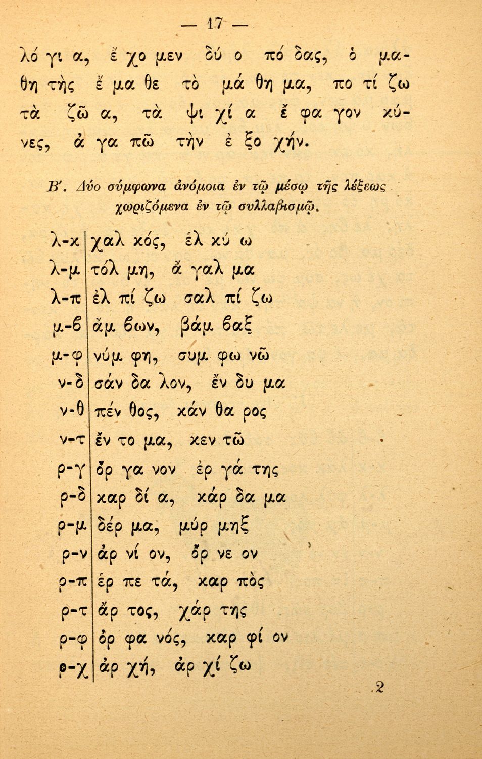 Σχολικό εγχειρίδιο Αρχαίων Ελληνικών Γυμνασίου που περιέχει τους κανόνες γραμματικής και είναι χωρισμένο σε φθογγολογικό, τυπολογικό και ετυμολογικό μέρος. Περιέχει και κατάλογο ανωμάλων ρημάτων.