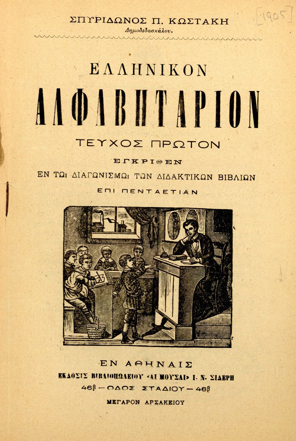 Τίτλος: Ελληνικόν αλφαβητάριον τεύχος πρώτον εγκριθέν εν τω διαγωνισμόν των διδακτικών βιβλίων επί πενταετίαν