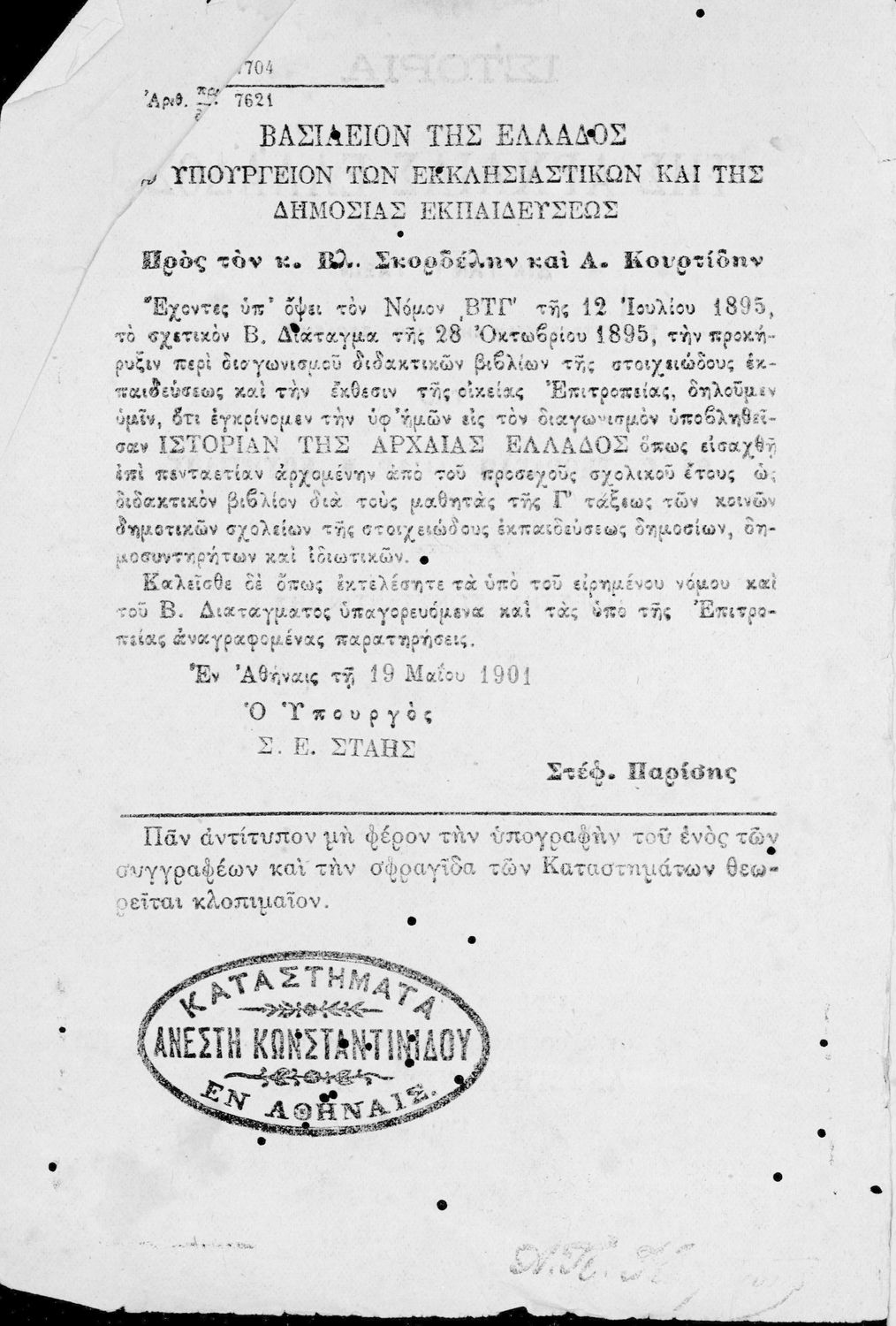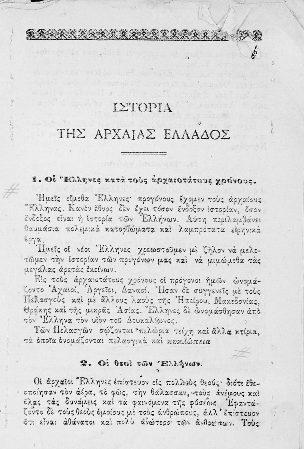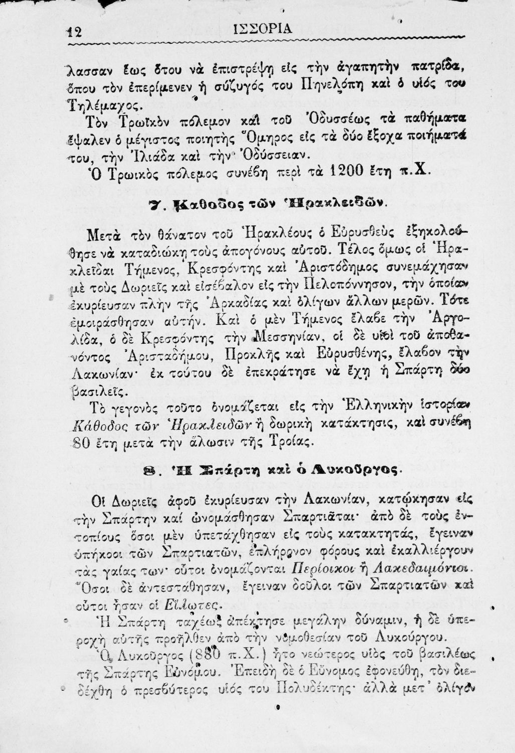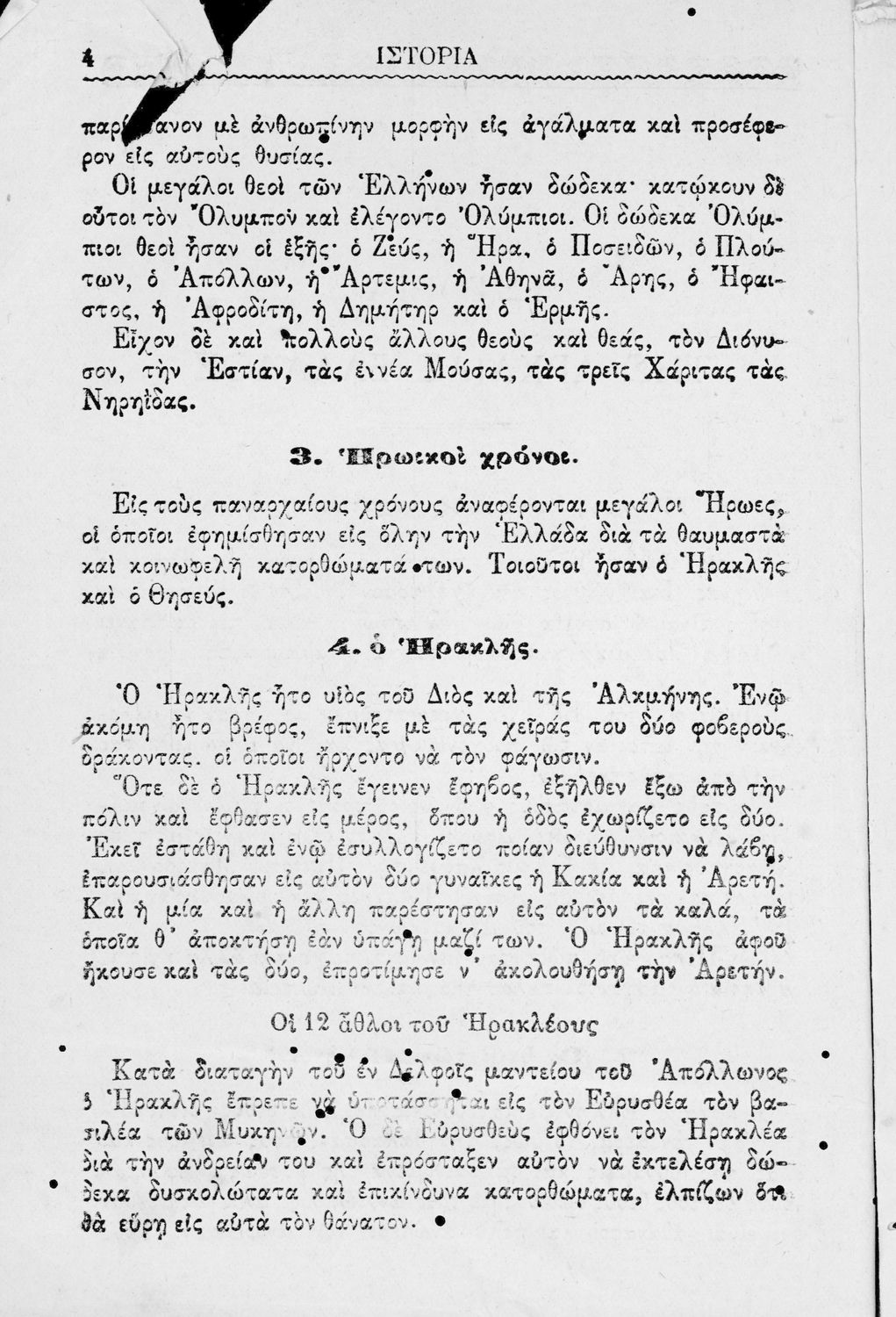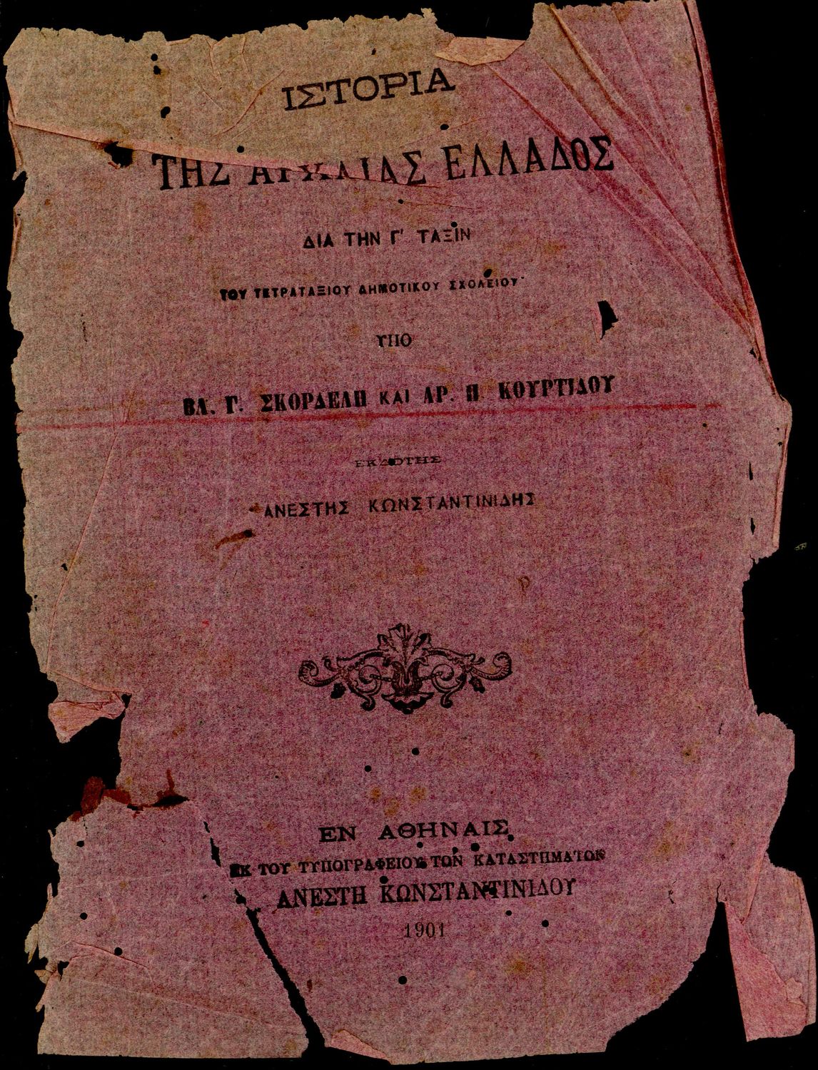 Σχολικό Εγχειρίδιο Ιστορίας Γ' και Δ΄ Δημοτικού Σχολείου που περιλαμβάνει την περίοδο από τους ηρωικούς και μυθικούς χρόνους μέχρι τη βασιλεία του Όθωνα και του Γεωργίου Α΄. Περιλαμβάνει ρητή αναφορά στο σχήμα