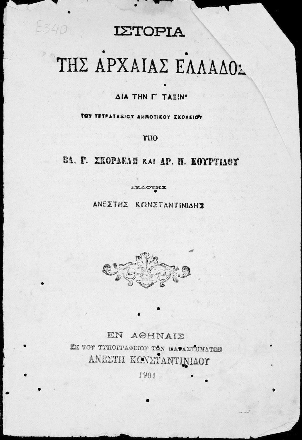 Τίτλος: Ιστορία της αρχαίας Ελλάδας διά την Γ΄ τάξιν του Τετραταξίου Δημοτικού Σχολείου