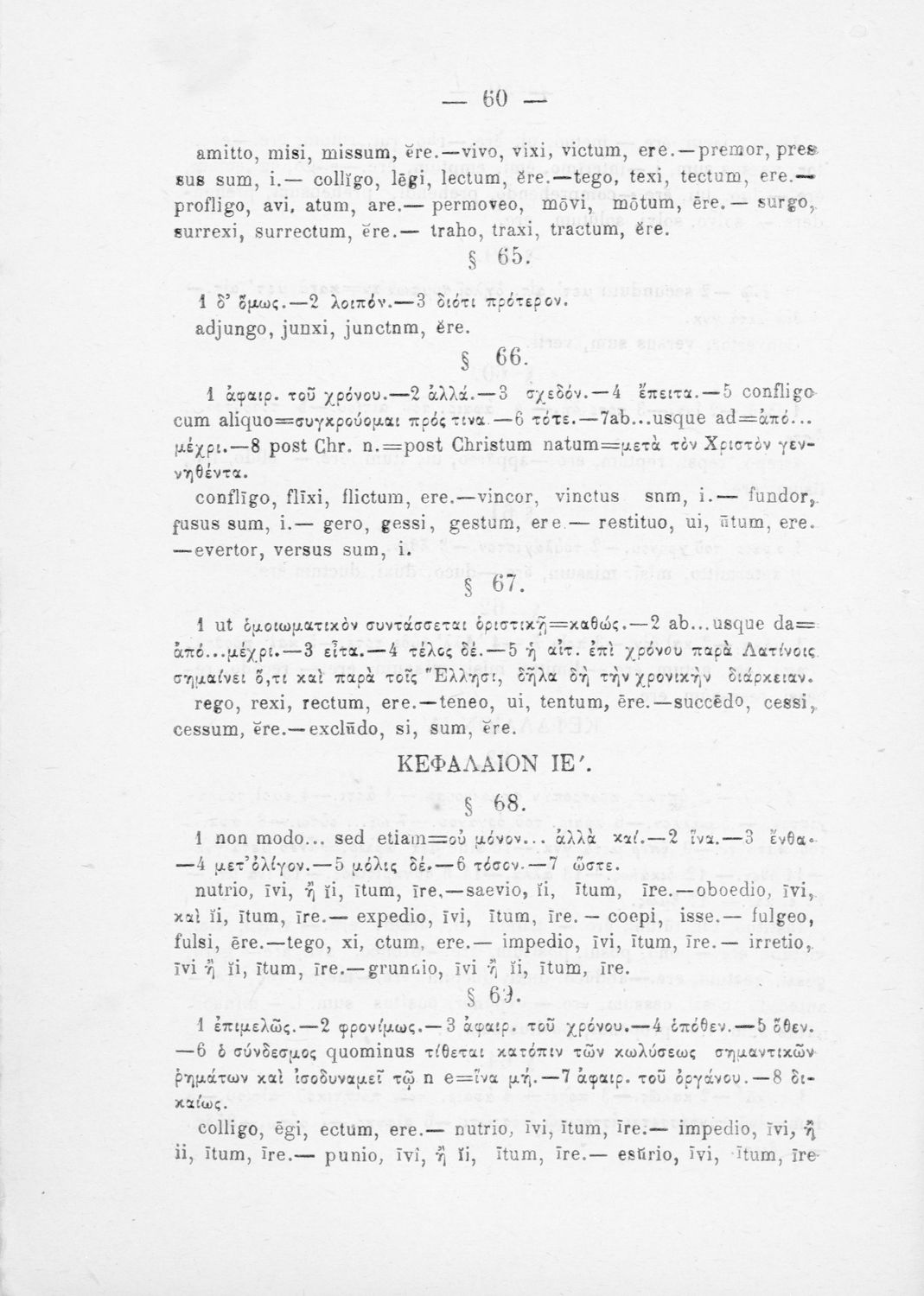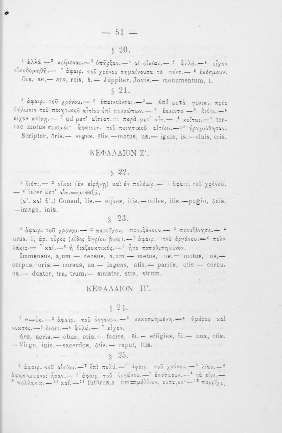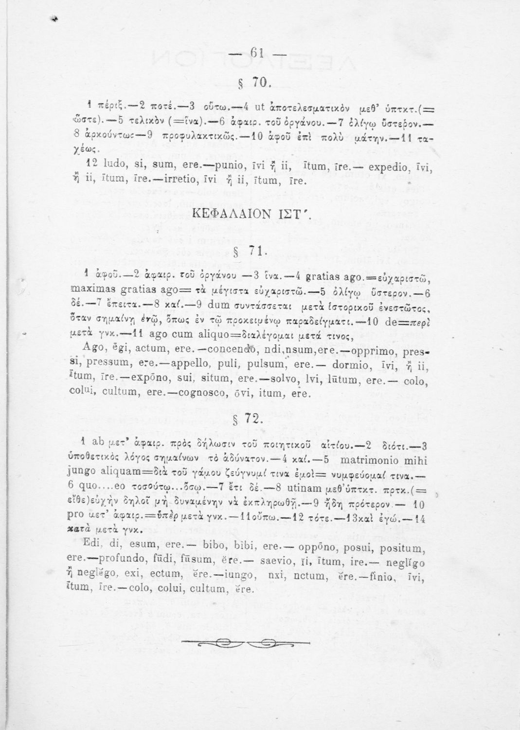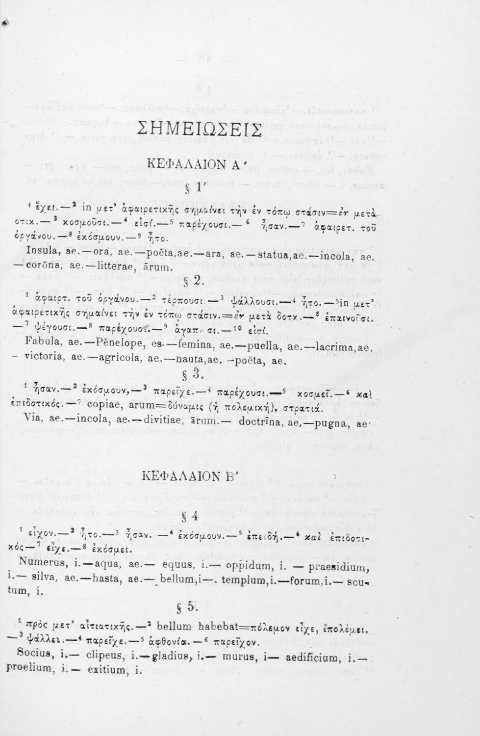 Σχολικό εγχειρίδιο Λατινικών Γ' Ελληνικού Σχολείου που περιλαμβάνει κείμενα για τη διδασκαλία των γραμματικών και συντακτικών φαινομένων, ερμηνευτικά και πραγματολογικά σχόλια και λεξιλόγιο.