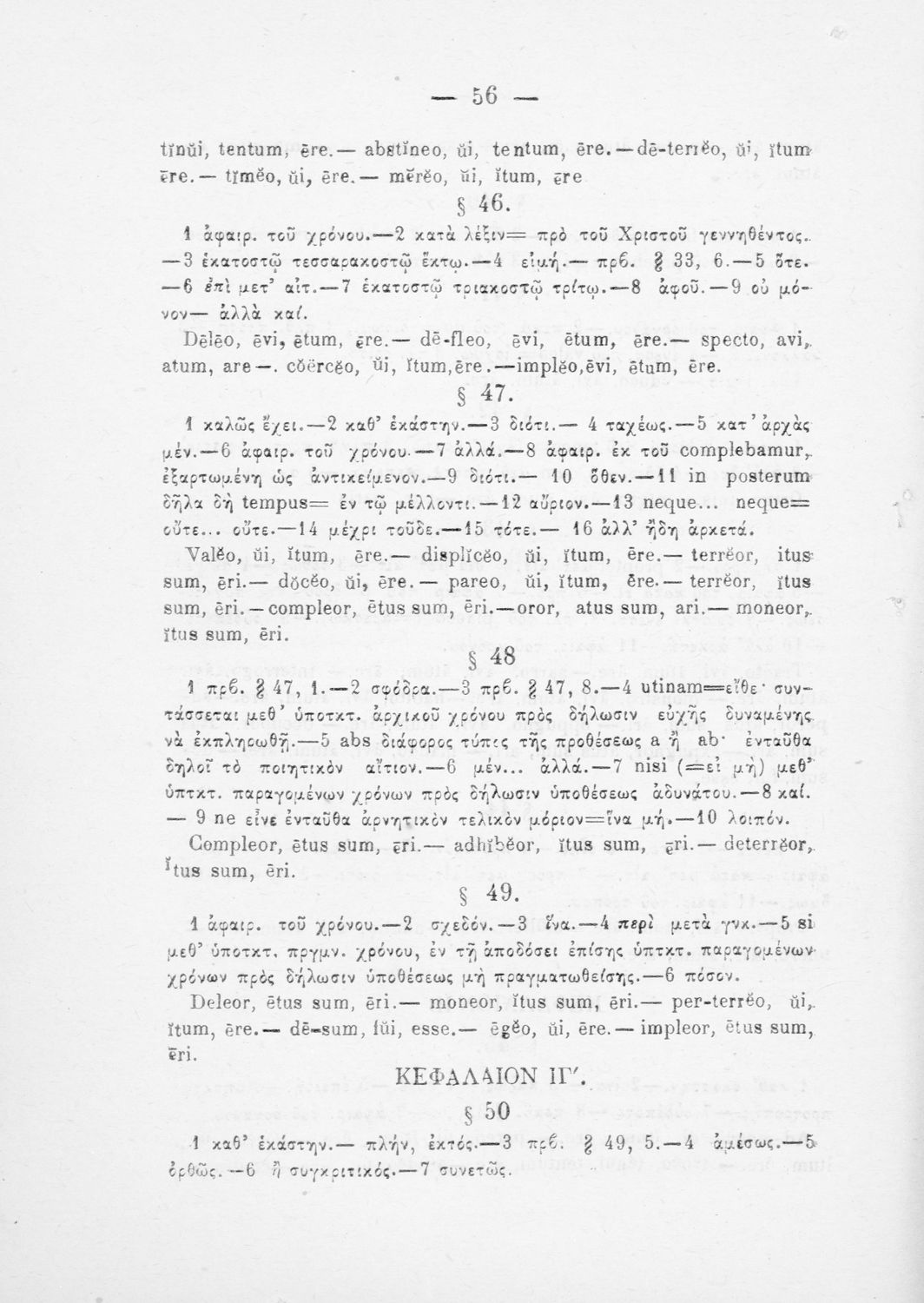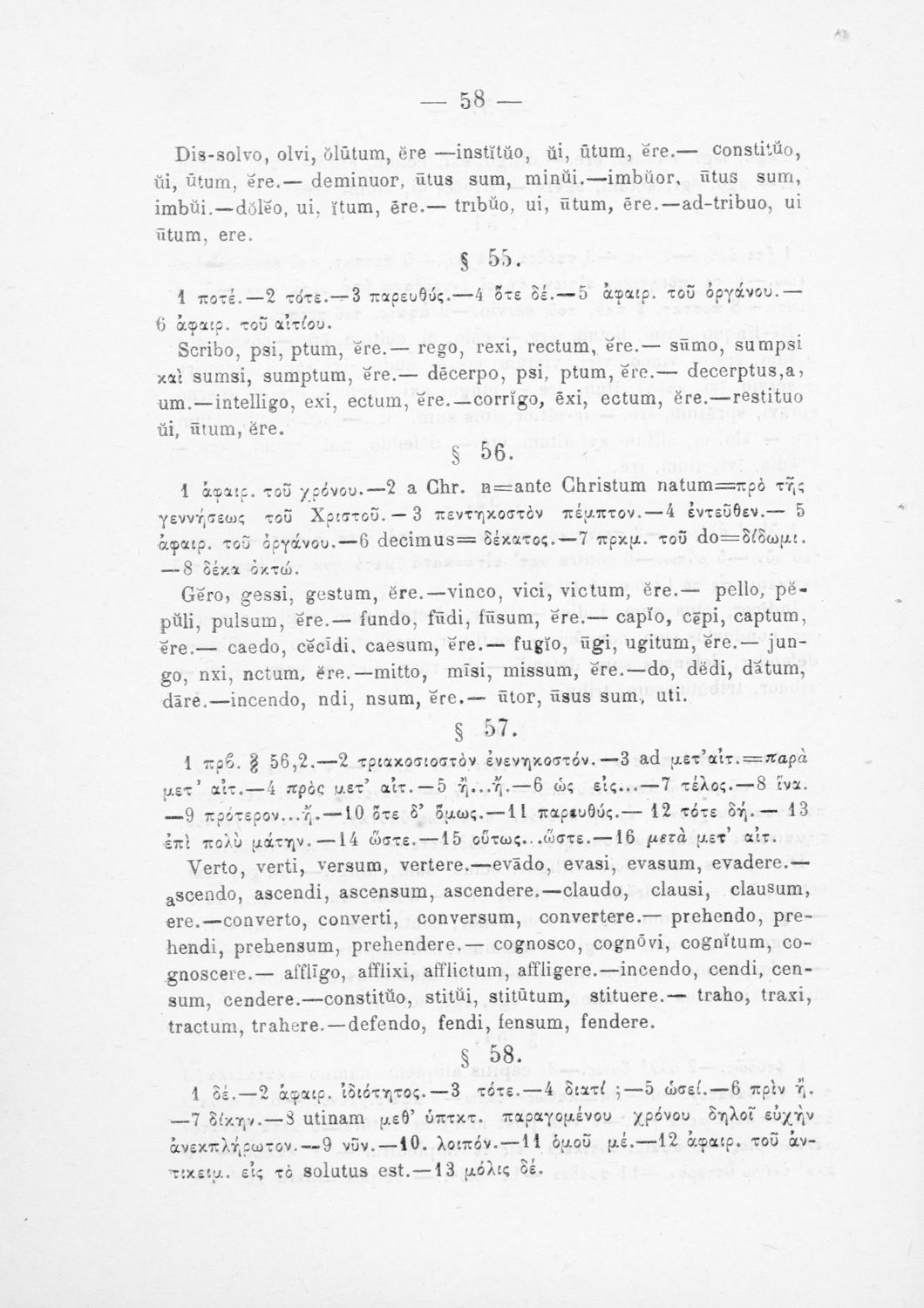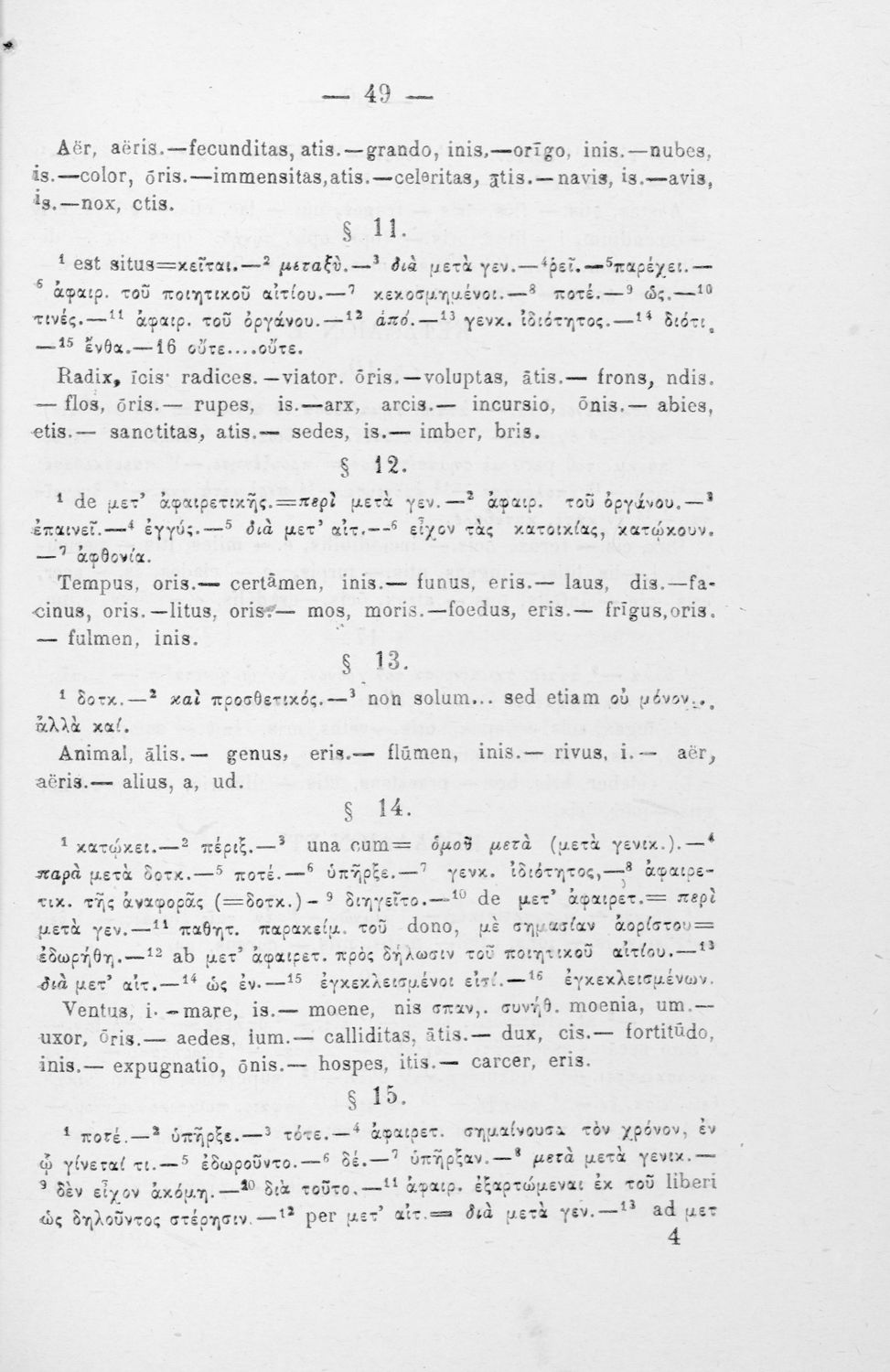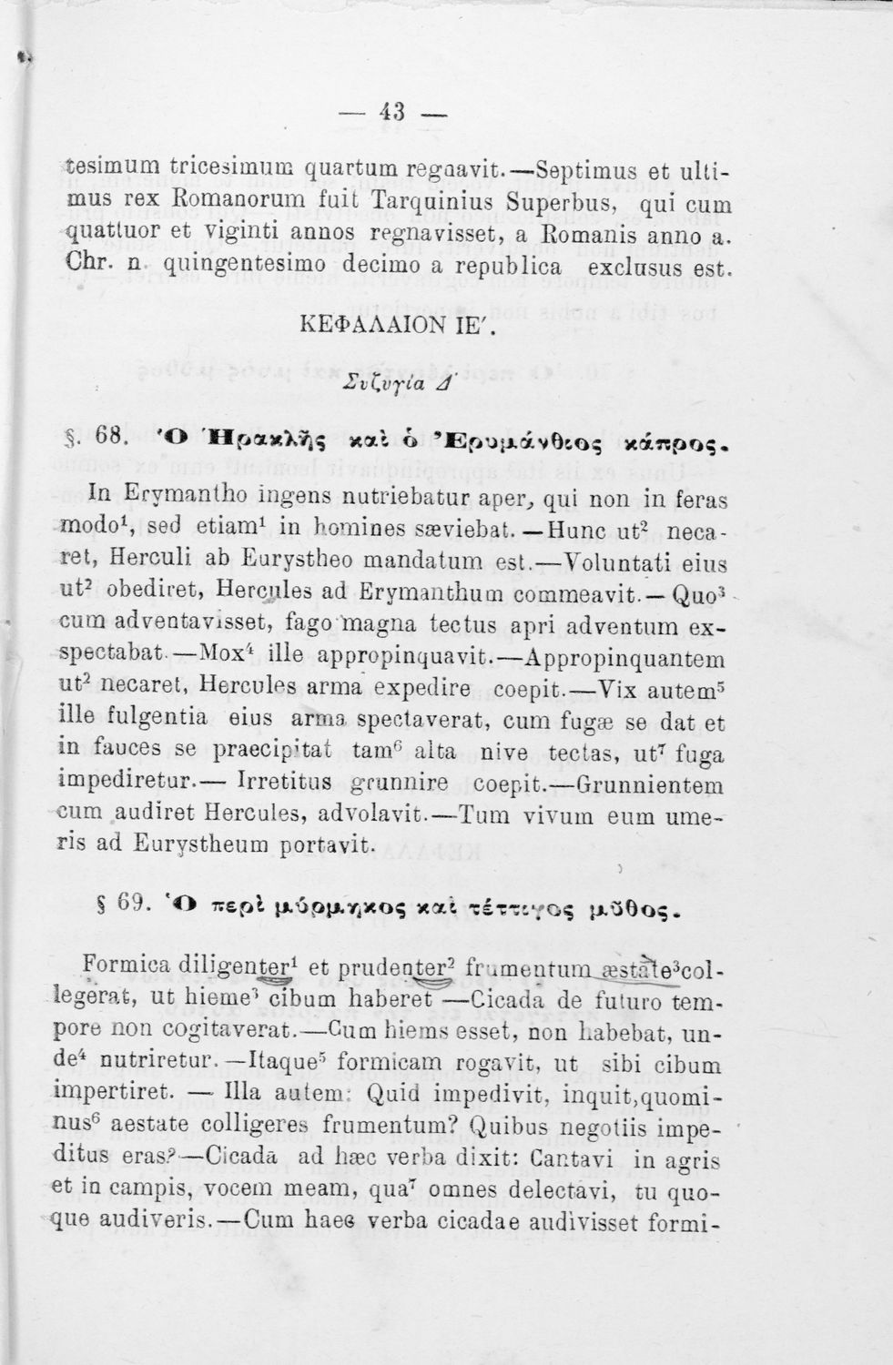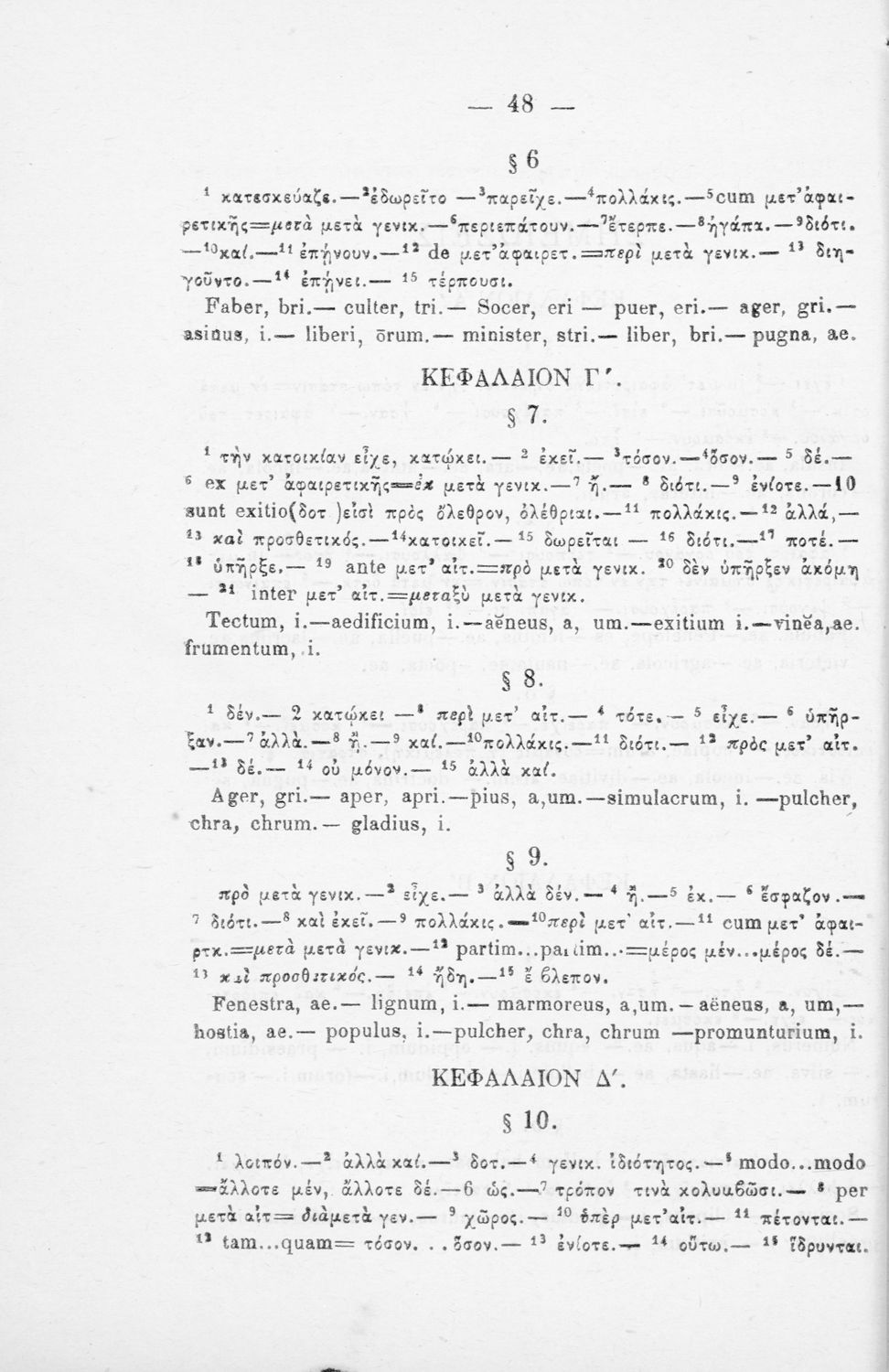 Σχολικό εγχειρίδιο Λατινικών Γ' Ελληνικού Σχολείου που περιλαμβάνει κείμενα για τη διδασκαλία των γραμματικών και συντακτικών φαινομένων, ερμηνευτικά και πραγματολογικά σχόλια και λεξιλόγιο.