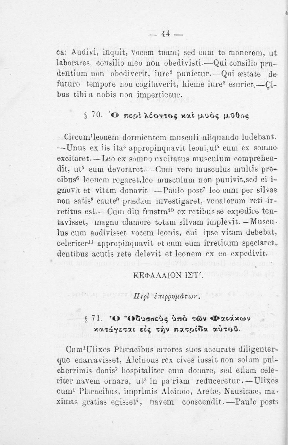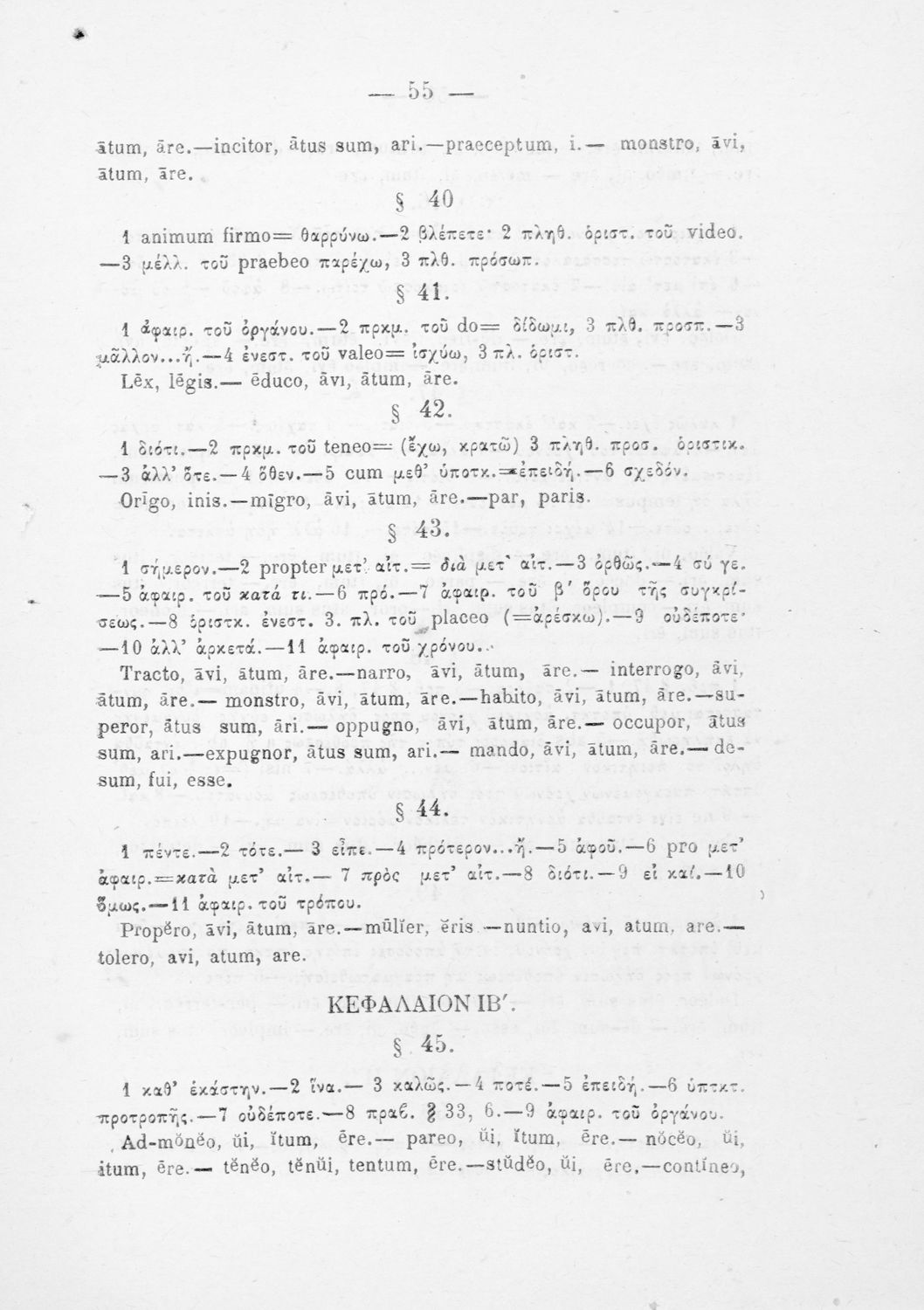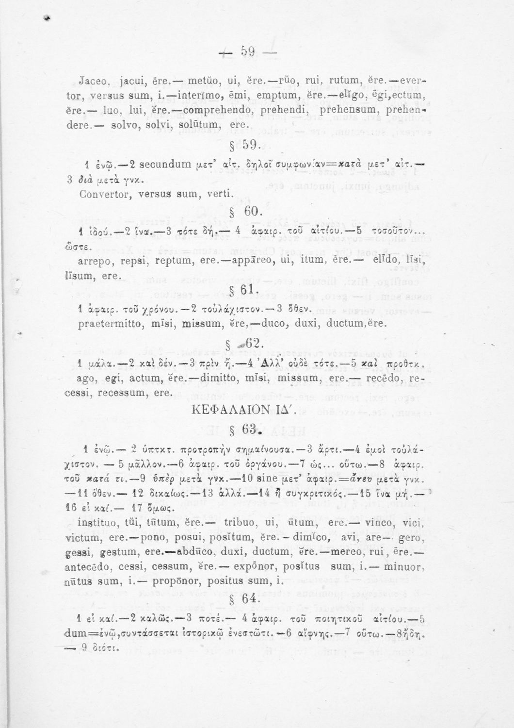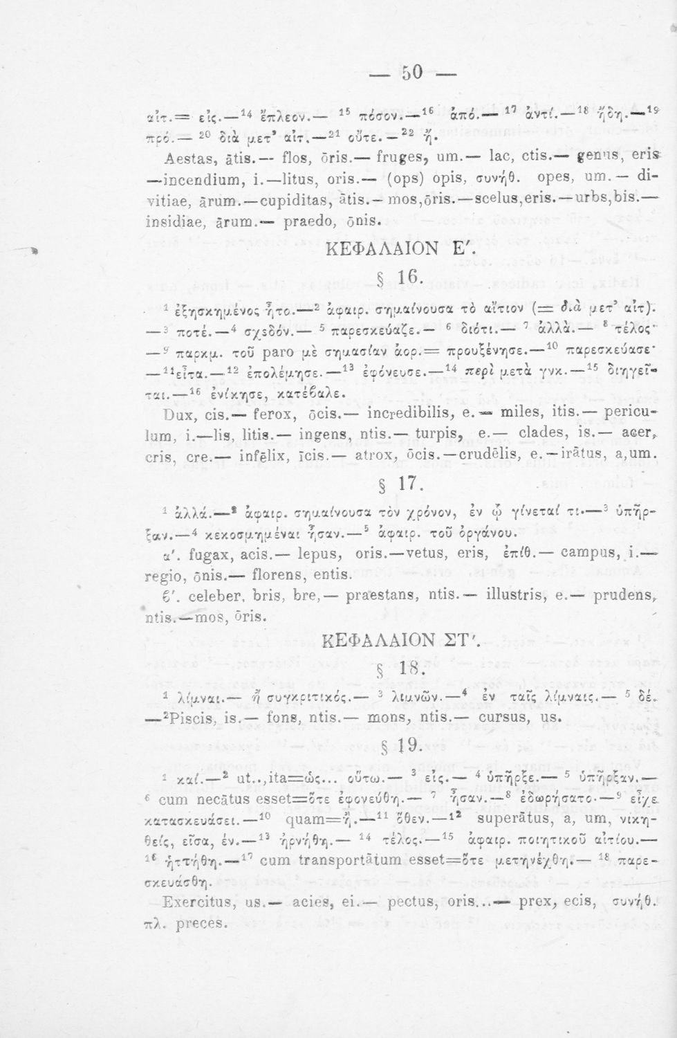 Σχολικό εγχειρίδιο Λατινικών Γ' Ελληνικού Σχολείου που περιλαμβάνει κείμενα για τη διδασκαλία των γραμματικών και συντακτικών φαινομένων, ερμηνευτικά και πραγματολογικά σχόλια και λεξιλόγιο.