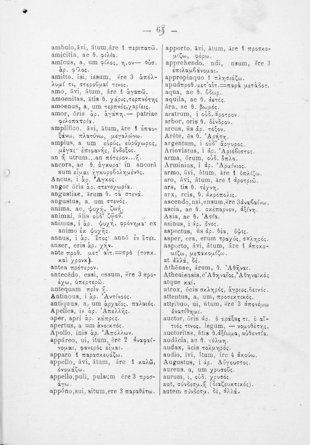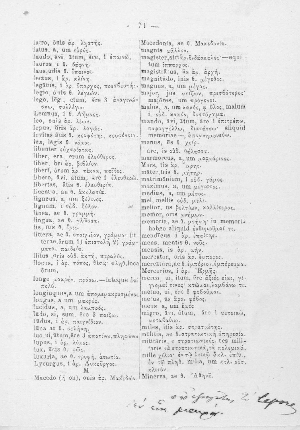 Σχολικό εγχειρίδιο Λατινικών που περιλαμβάνει γραμματική, συντακτικό, κείμενα και λεξιλόγιο.