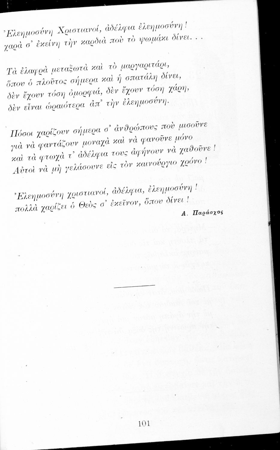 Αναγνωστικό ΣΤ΄ Δημοτικού που περιλαμβάνει ποιήματα και πεζά με θέματα από την οικογενειακή, κοινωνική και θρησκευτική ζωή των Ελλήνων και την ελληνική φύση και ιστορία.