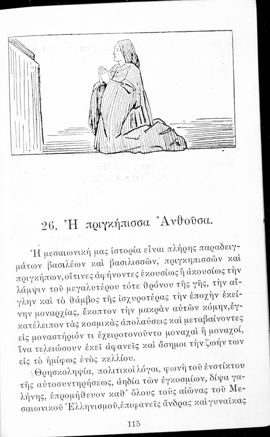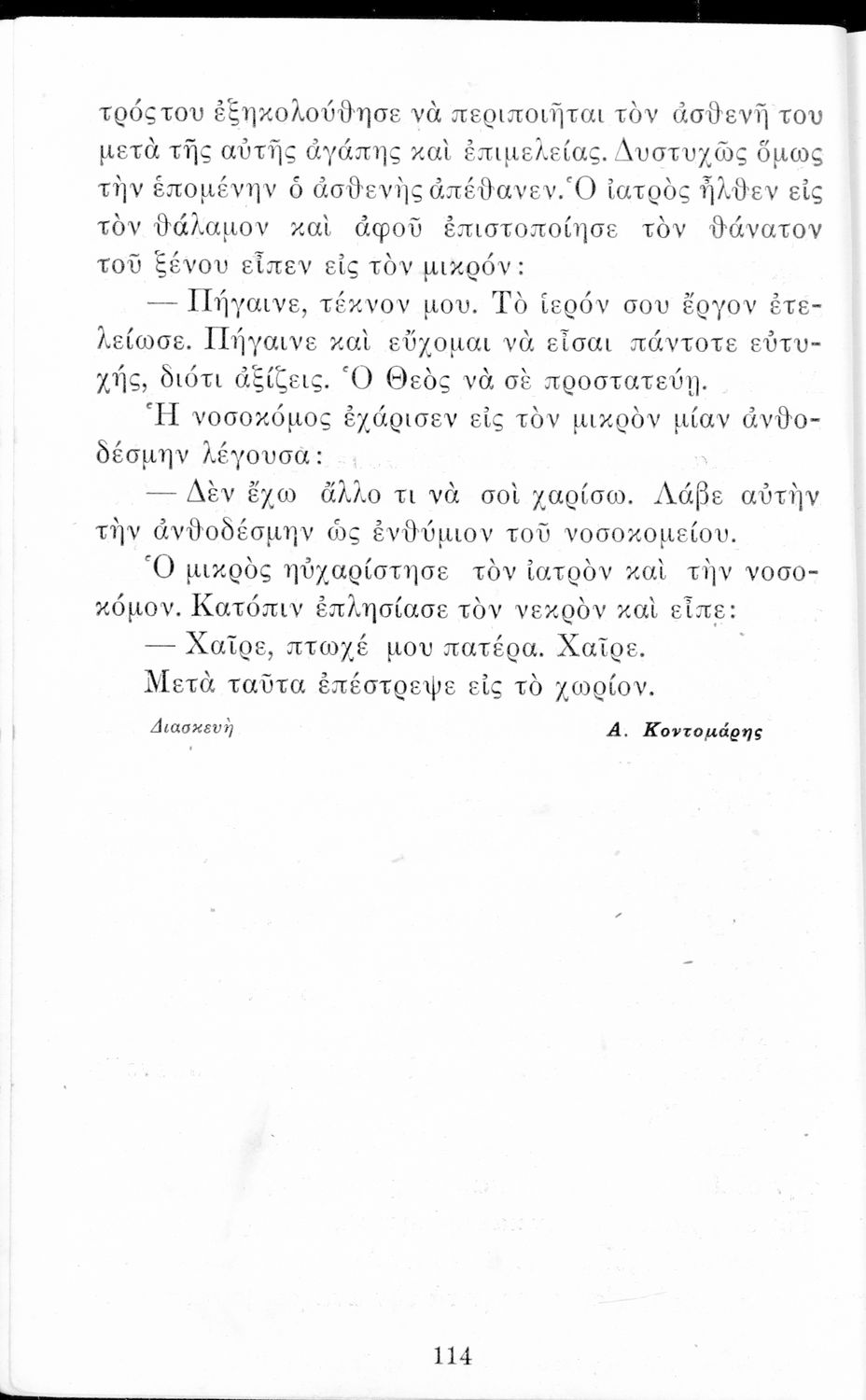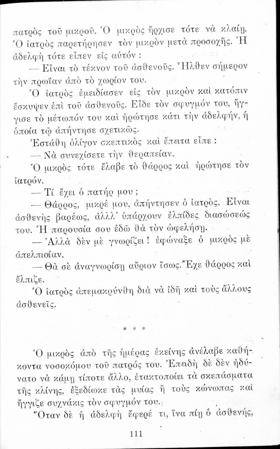 Αναγνωστικό ΣΤ΄ Δημοτικού που περιλαμβάνει πεζά γραμμένα σε καθαρεύουσα και ποιήματα σε δημοτική εμπνευσμένα από την οικογένεια, τη θρησκεία, την πατρίδα, την ελληνική φύση και ύπαιθρο, την αγάπη για τα ζώα, τις καθημερινές ασχολίες και επαγγέλματα και τις ηθικές αρετές.