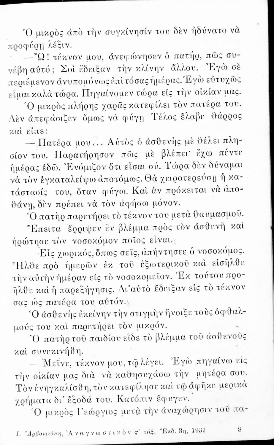Αναγνωστικό ΣΤ΄ Δημοτικού που αποτελείται από πεζά γραμμένα σε καθαρεύουσα και ποιήματα σε δημοτική εμπνευσμένα από την οικογένεια, τη θρησκεία, την μυθολογία και ιστορία, την υγιεινή, την πατρίδα, την ...