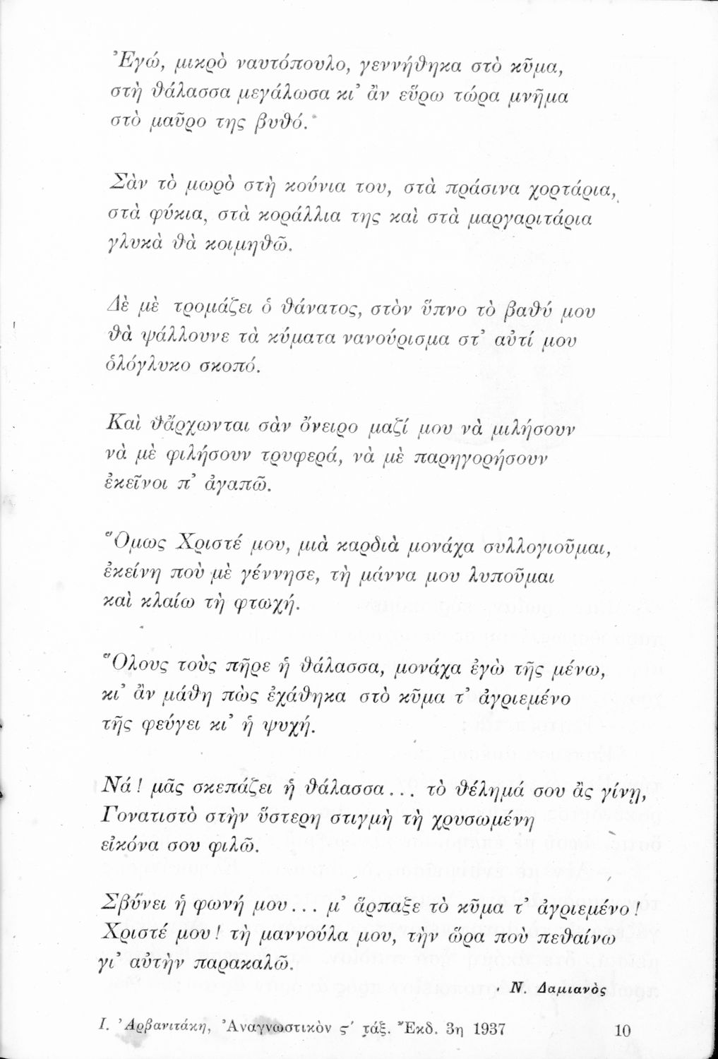 Αναγνωστικό ΣΤ΄ Δημοτικού που περιλαμβάνει πεζά γραμμένα σε καθαρεύουσα και ποιήματα σε δημοτική εμπνευσμένα από την οικογένεια, τη θρησκεία, την πατρίδα, την ελληνική φύση και ύπαιθρο, την αγάπη για τα ζώα, τις καθημερινές ασχολίες και επαγγέλματα και τις ηθικές αρετές.