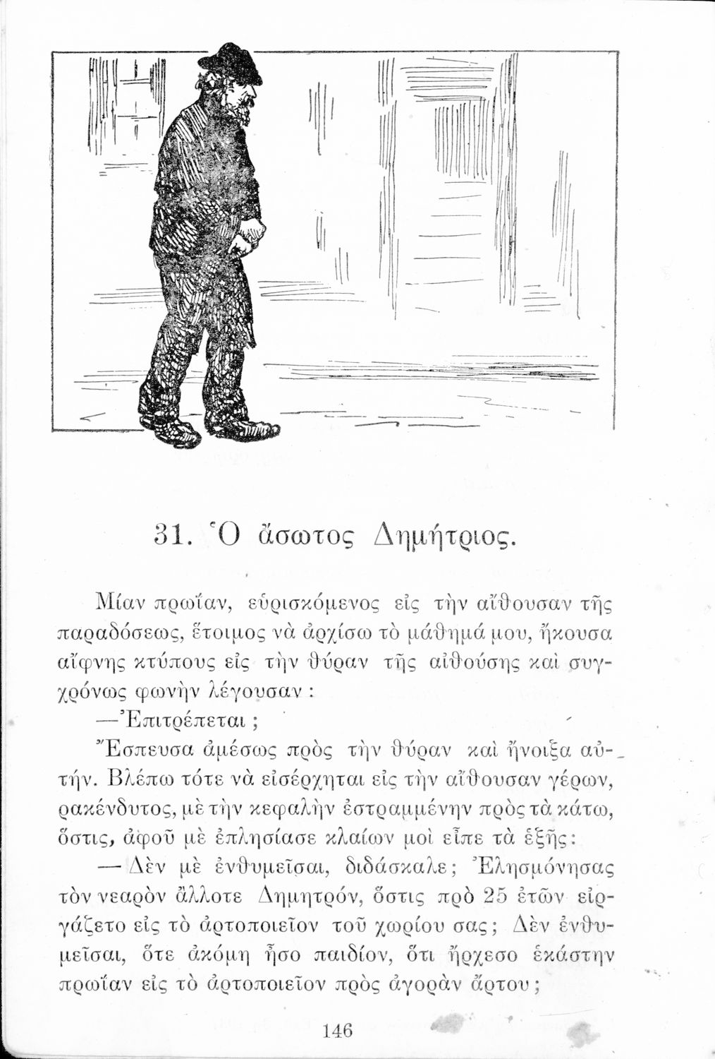 Βαθμίδα εκπαίδευσης: Πρωτοβάθμια Τάξη: ΣΤ' Δημοτικού Μάθημα: Νέα Ελληνικά Γλώσσα: Καθαρεύουσα Παρουσίαση περιεχομένου: Αναγνωστικό ΣΤ΄ Δημοτικού που περιλαμβάνει πεζά γραμμένα σε καθαρεύουσα και ποιήματα σε δημοτική εμπνευσμένα από την οικογένεια, τη θρησκεία, την πατρίδα, την ελληνική φύση και ύπαιθρο, την αγάπη για τα ζώα, τις καθημερινές ασχολίες και επαγγέλματα και τις ηθικές αρετές. |