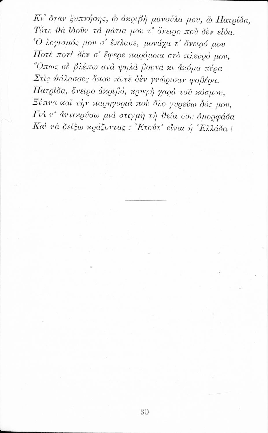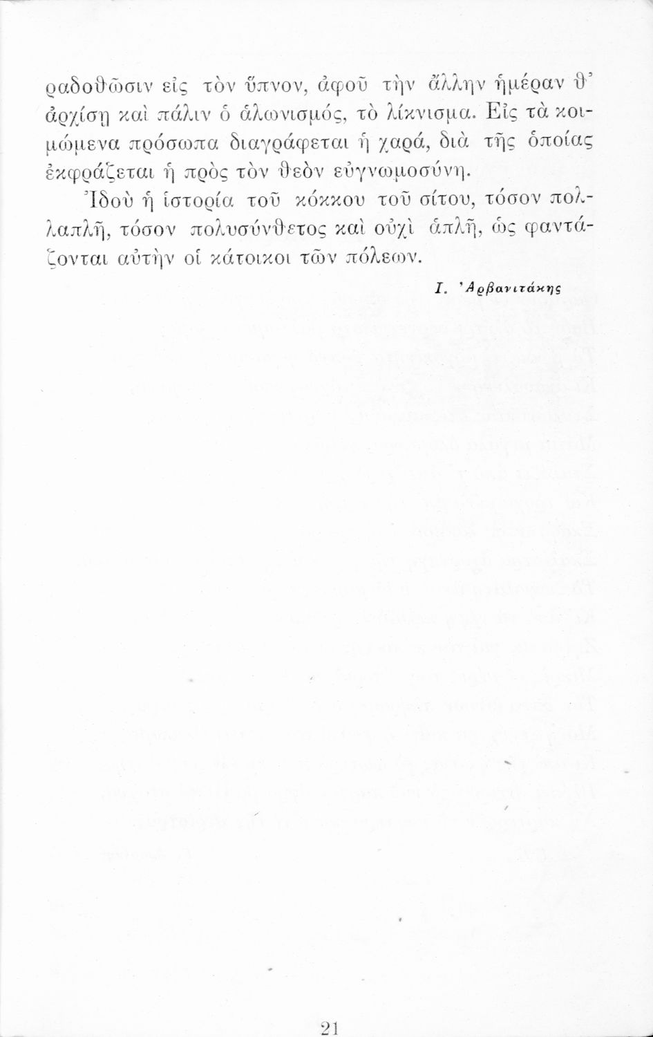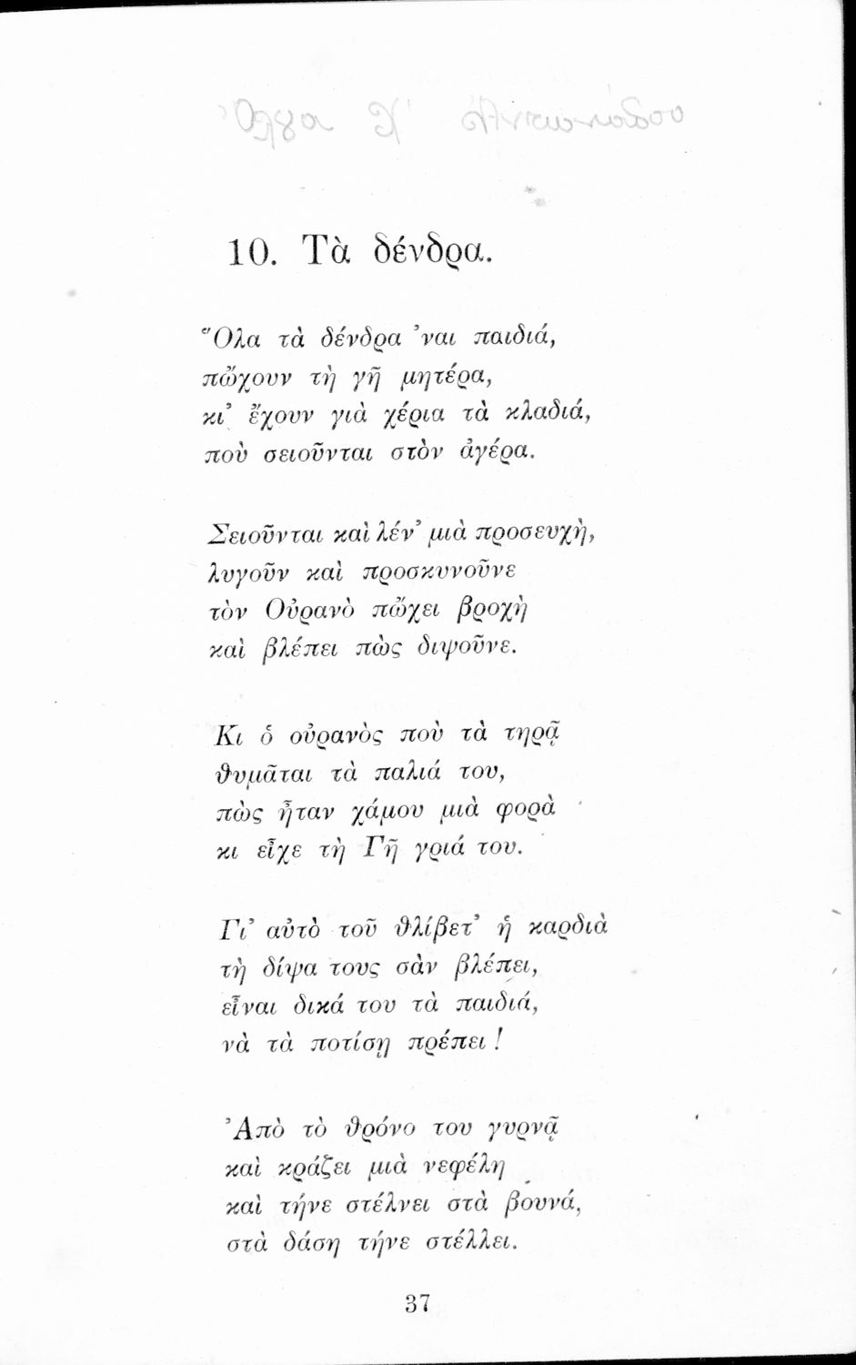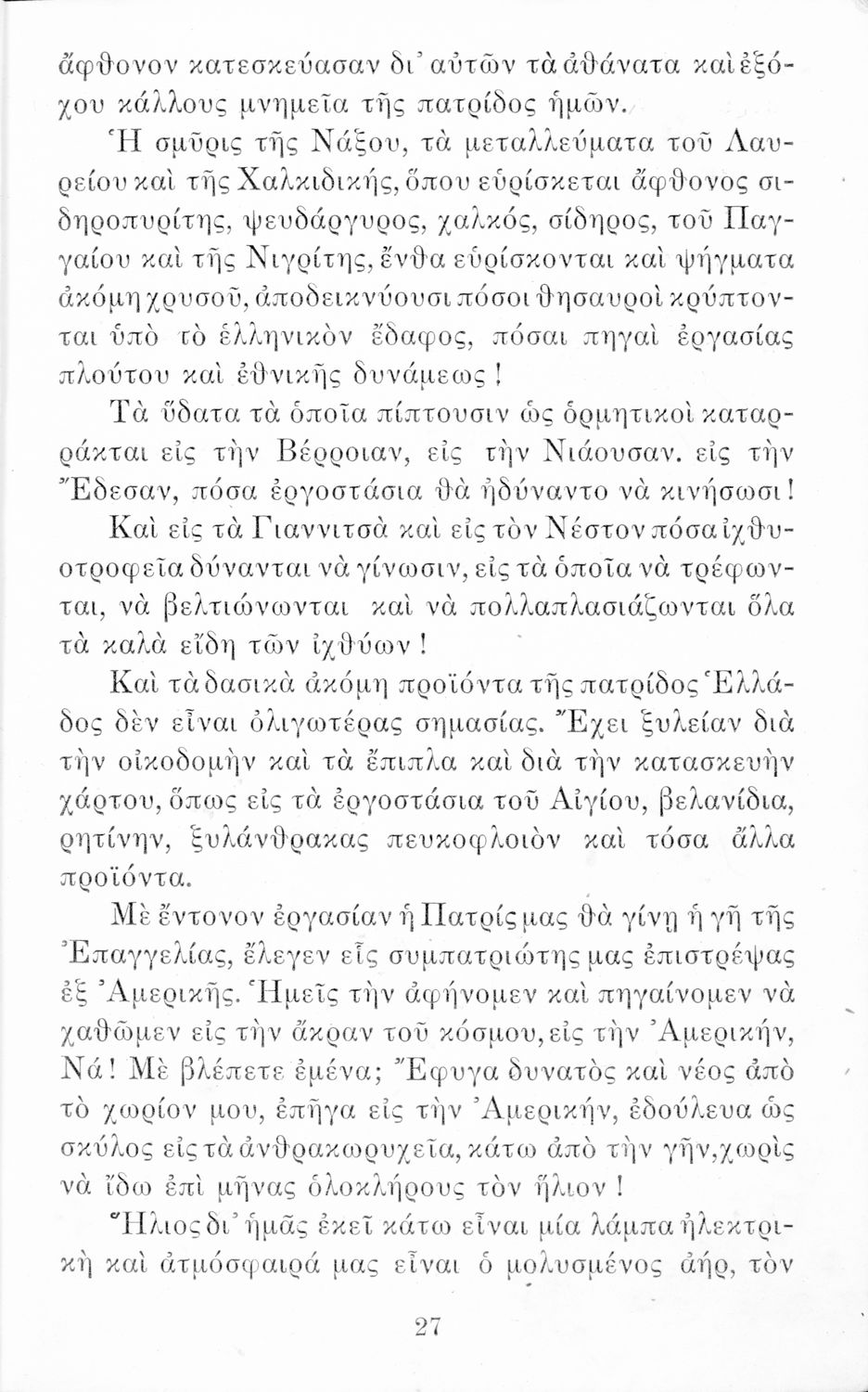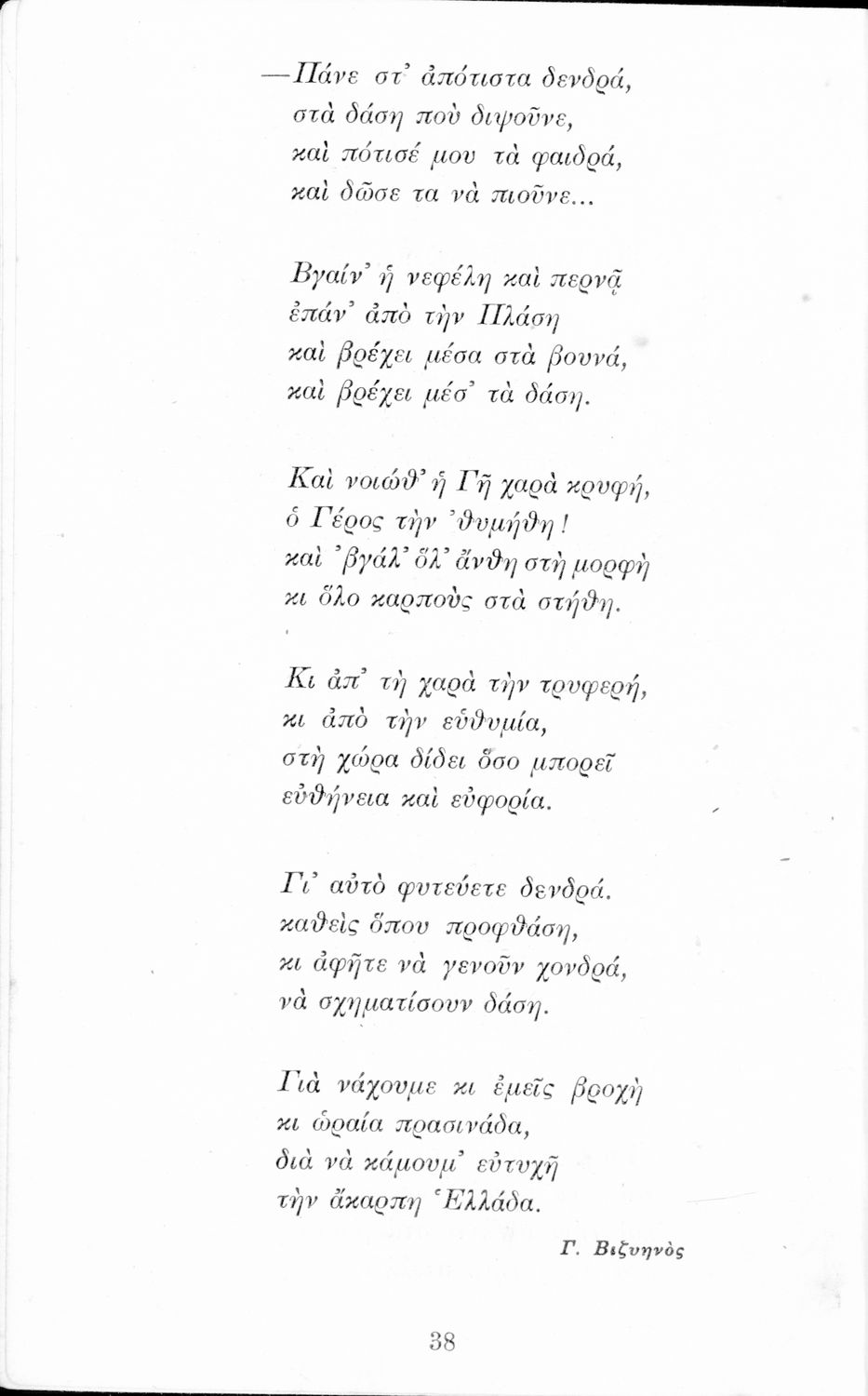 Αναγνωστικό ΣΤ΄ Δημοτικού που περιλαμβάνει πεζά γραμμένα σε καθαρεύουσα και ποιήματα σε δημοτική εμπνευσμένα από την οικογένεια, τη θρησκεία, την πατρίδα, την ελληνική φύση και ύπαιθρο, την αγάπη για τα ζώα, τις καθημερινές ασχολίες και επαγγέλματα και τις ηθικές αρετές.
